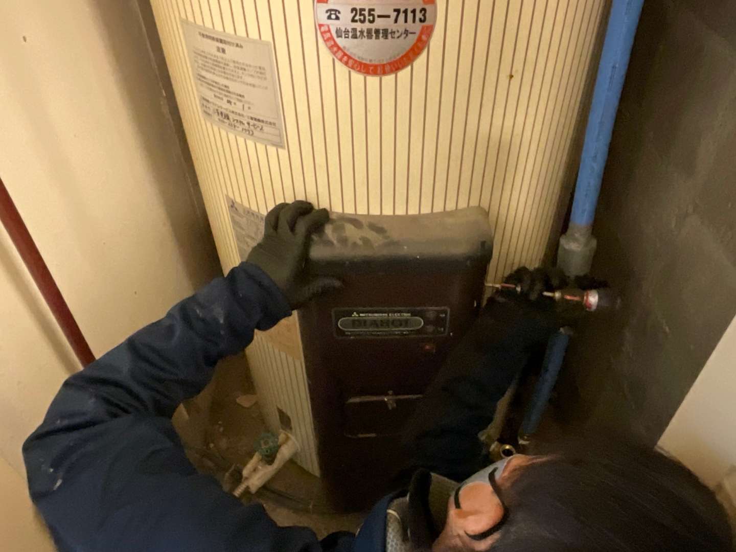 本日の作業は、マンションテナント温水器交換工事です。