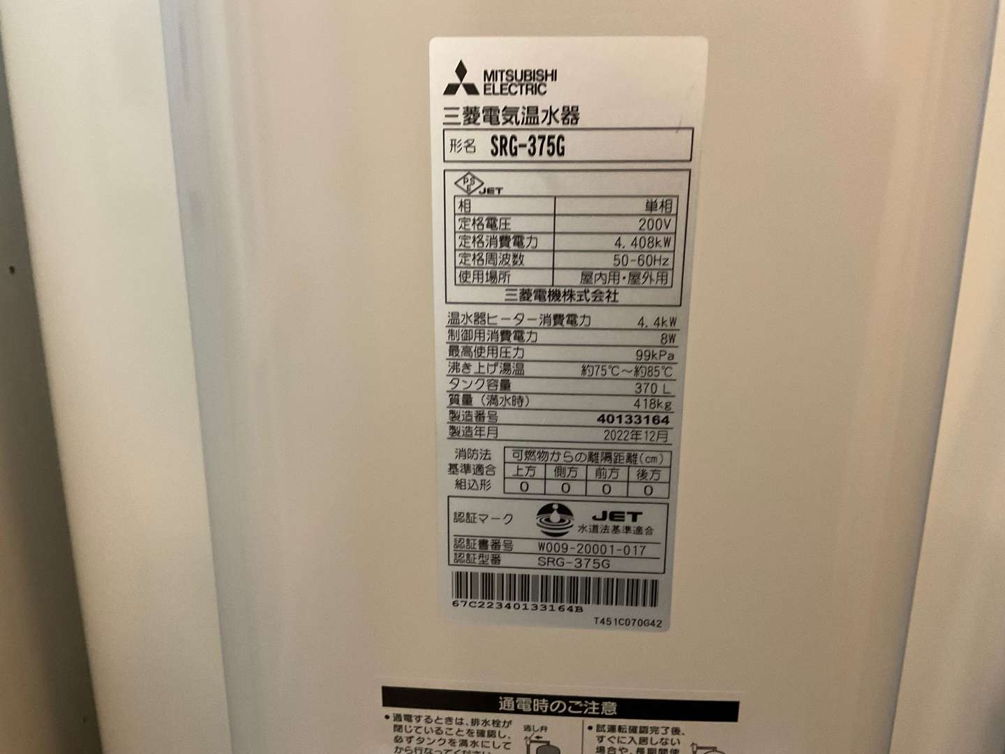 交換前の温水器