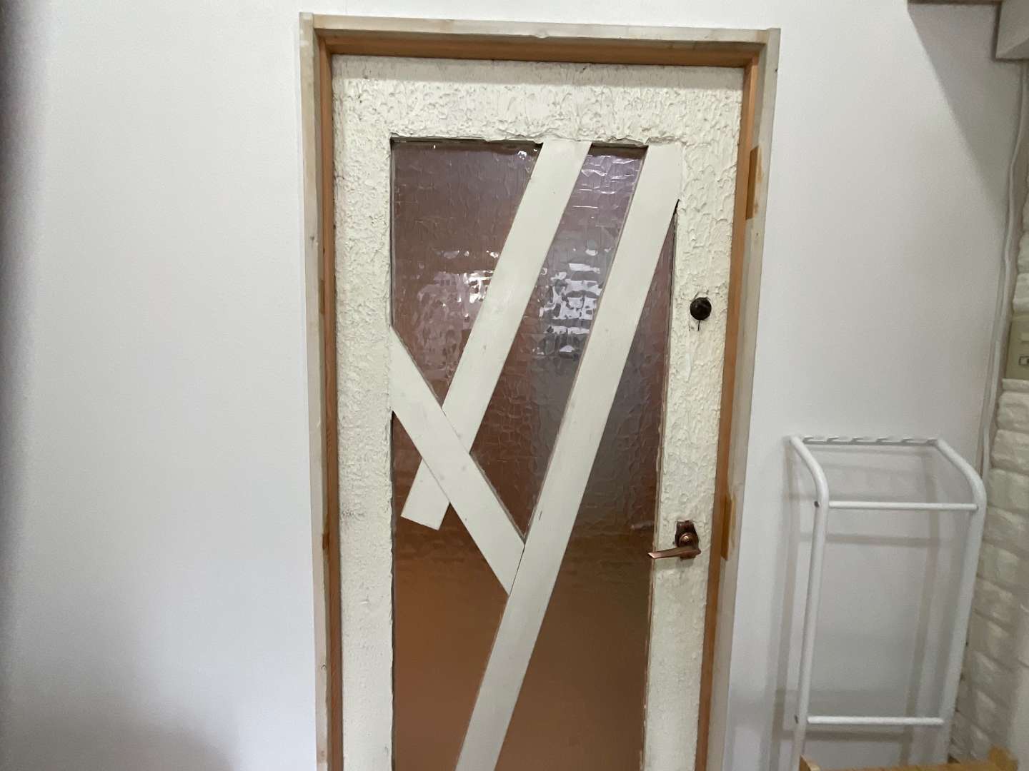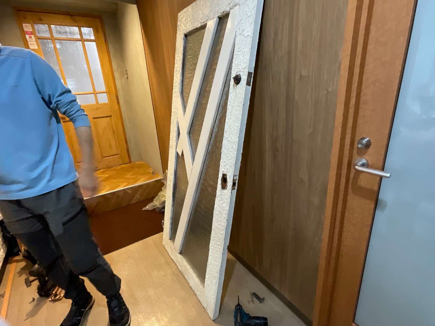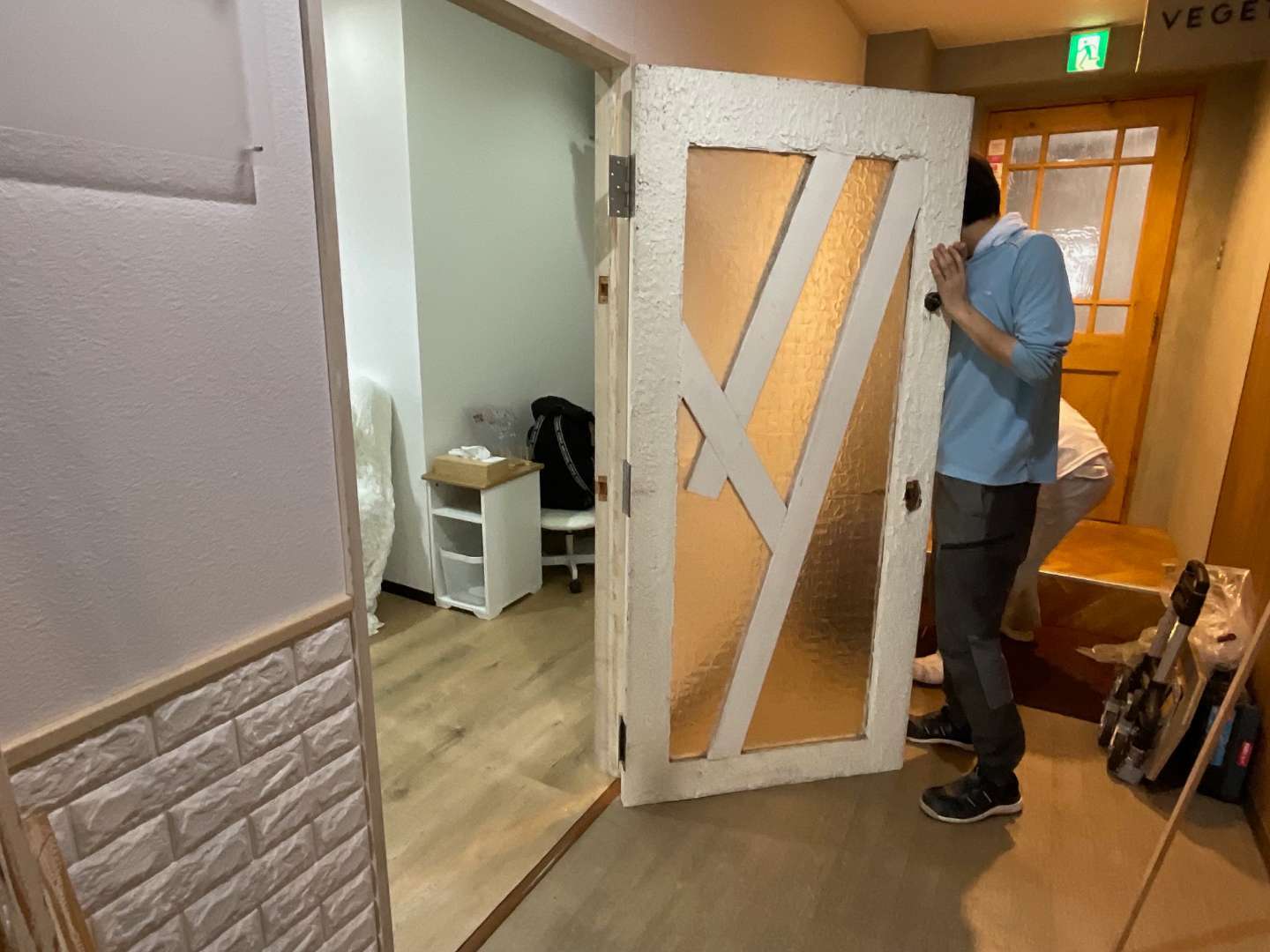 既存ドア撤去・戸当たり取り外し作業