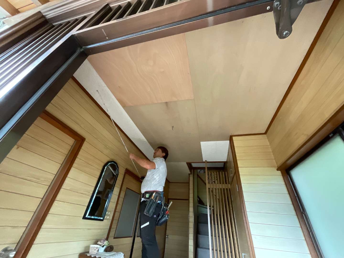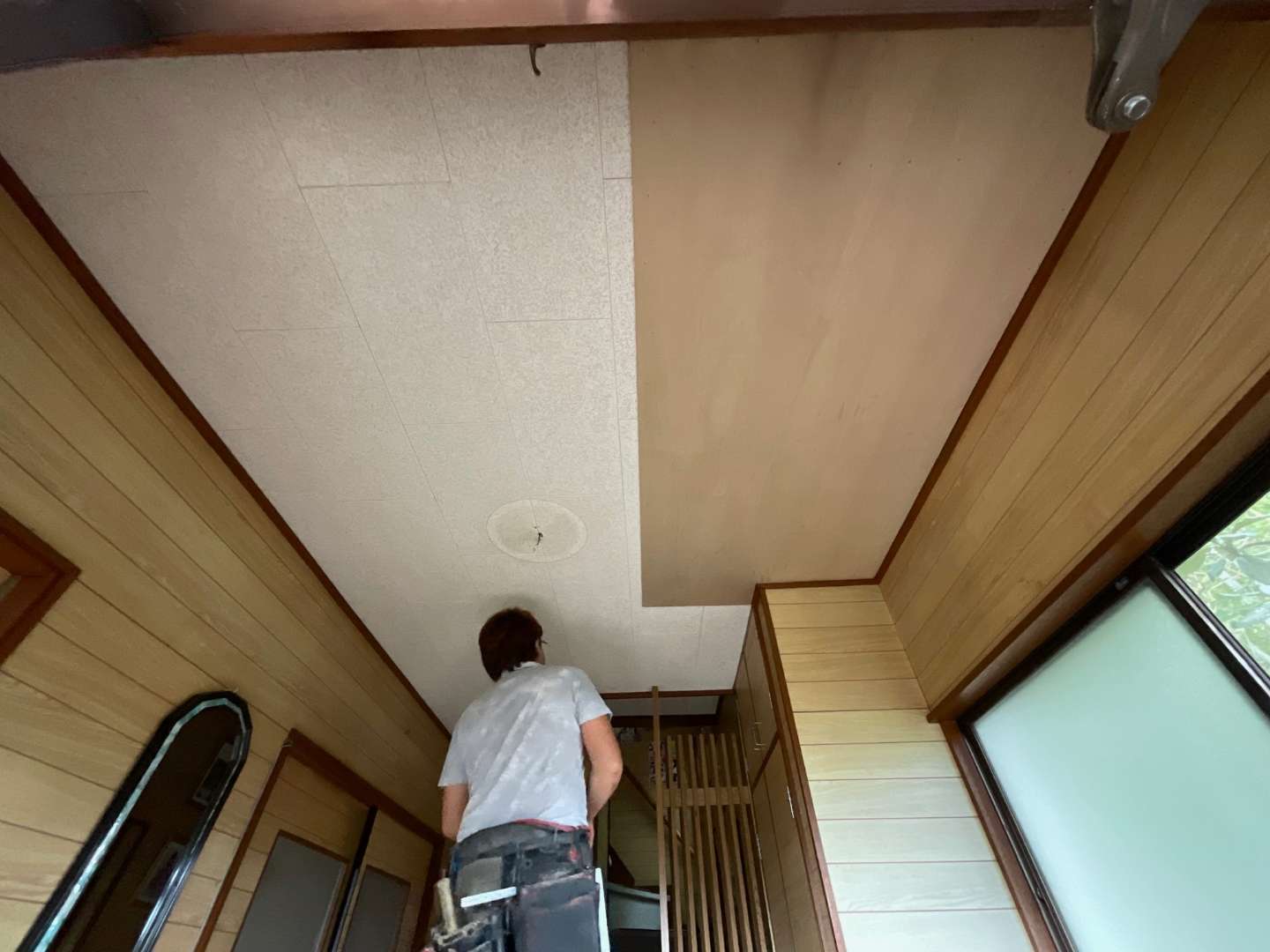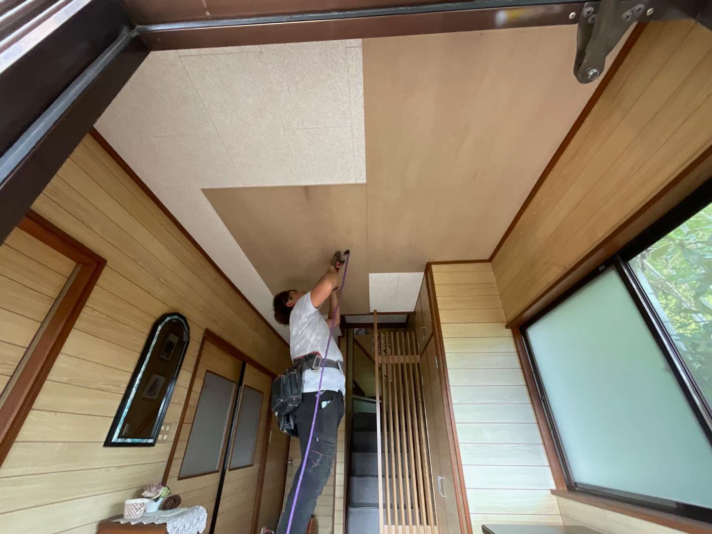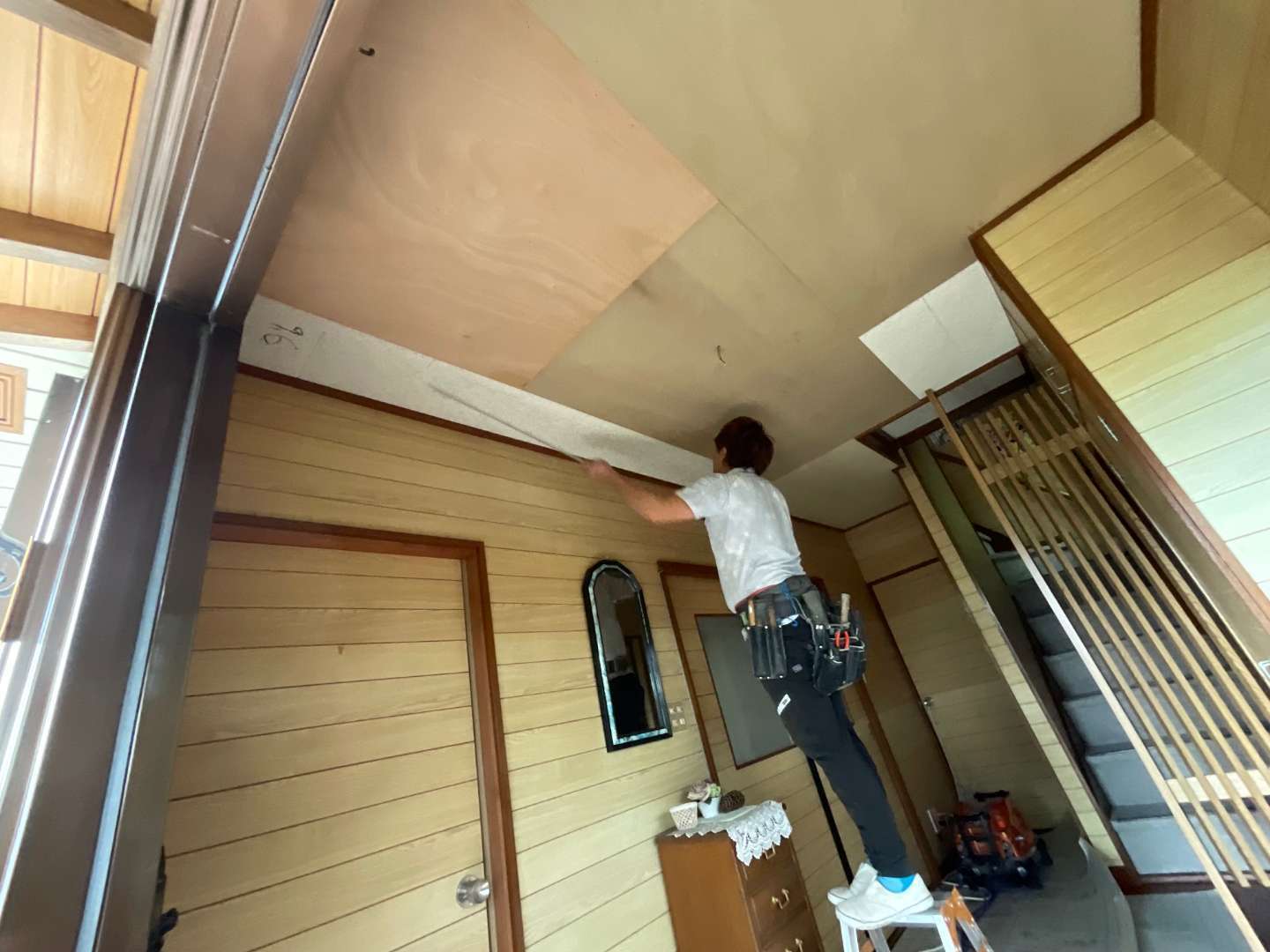 本日から、玄関天井貼り替え作業です。