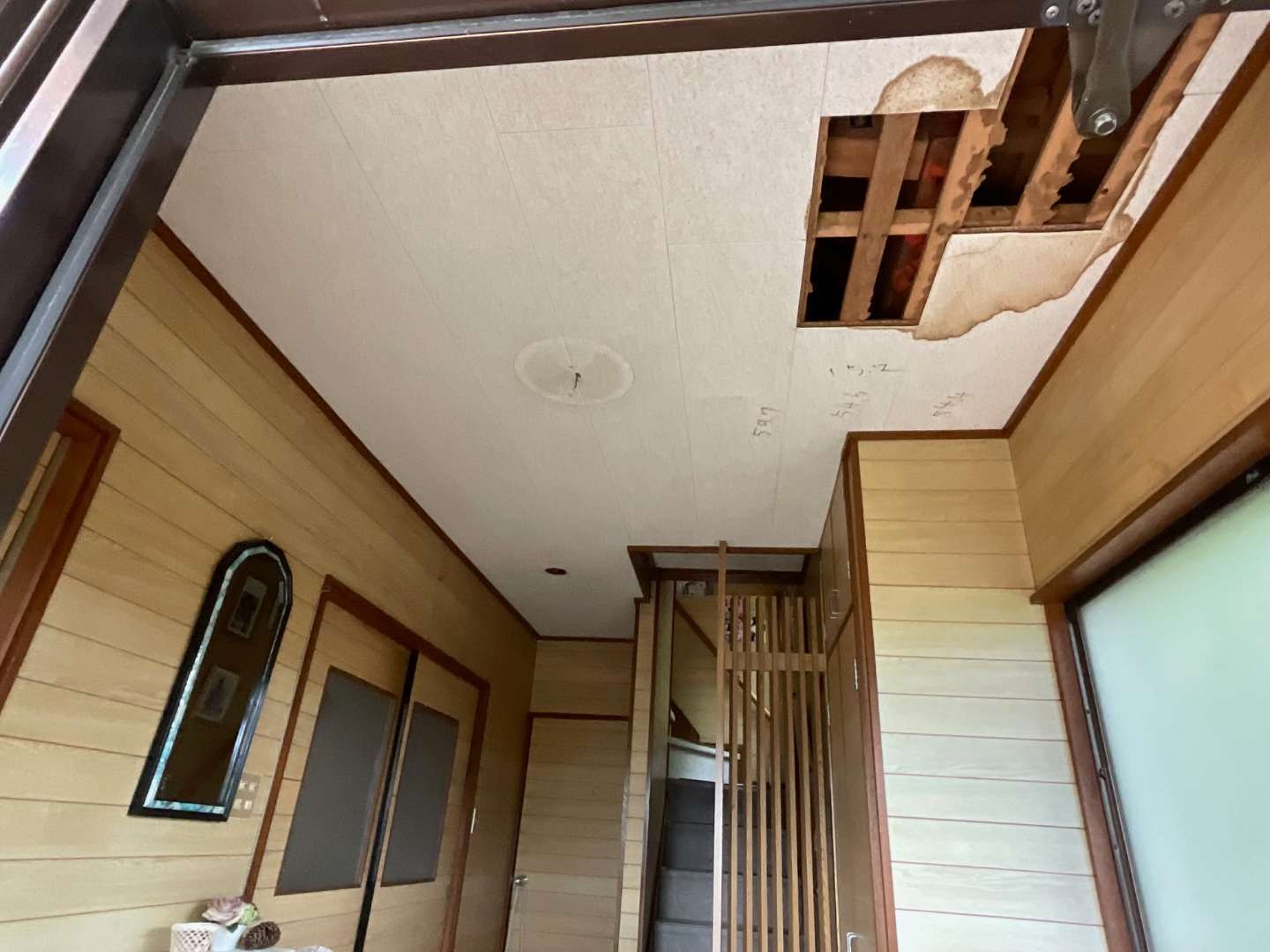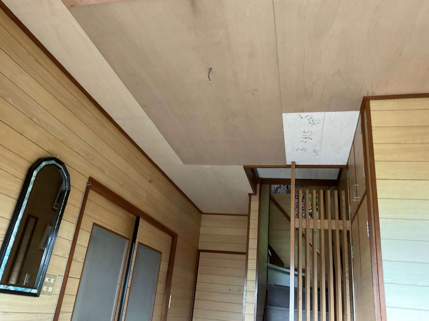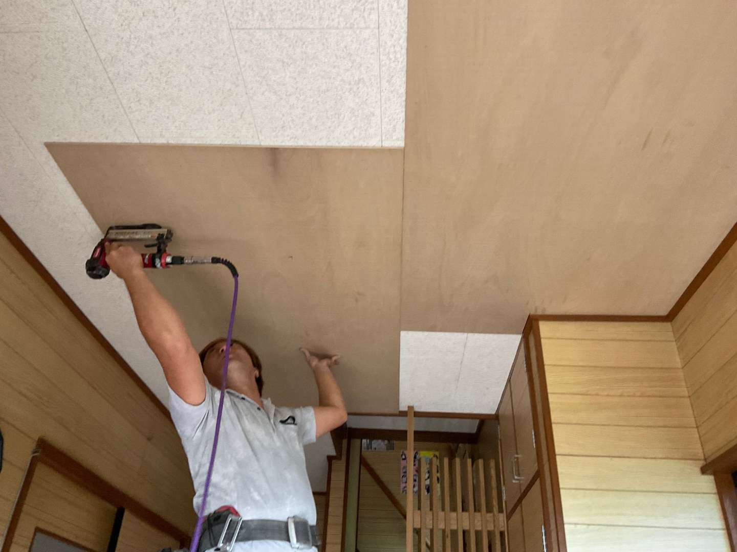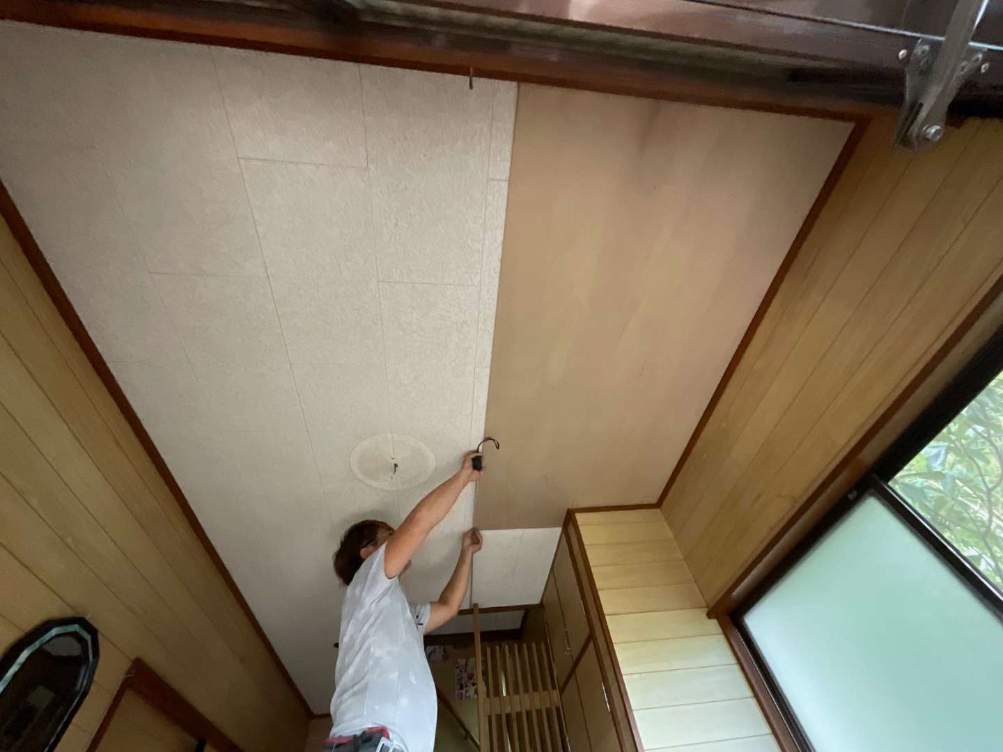 本日から、玄関天井貼り替え作業です。
