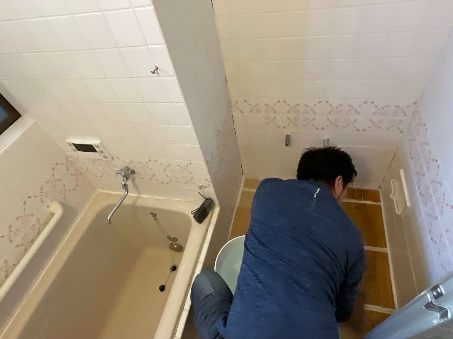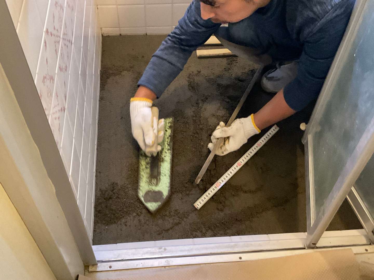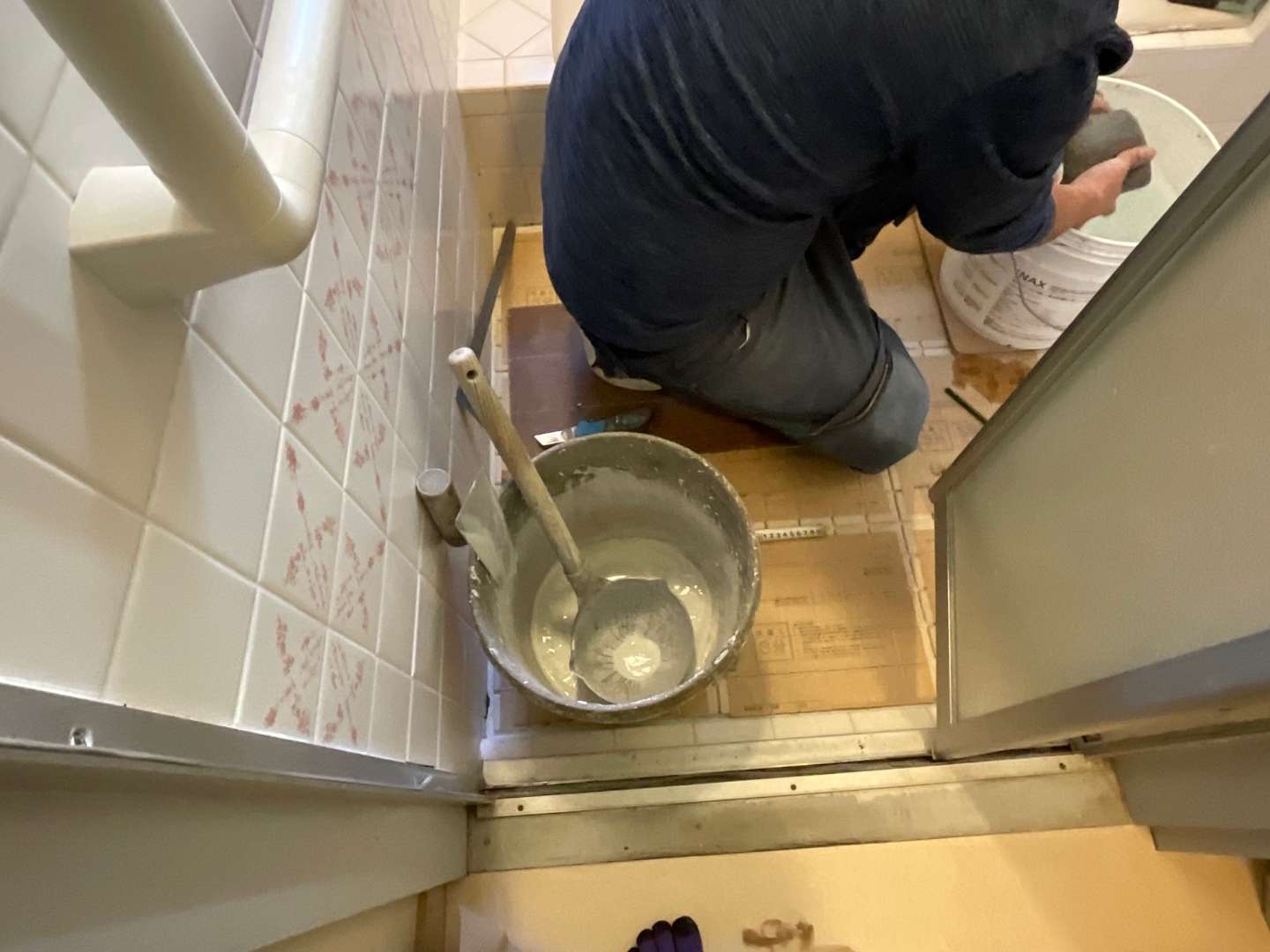 内容は、下地調整・タイル貼り・目地詰めです。