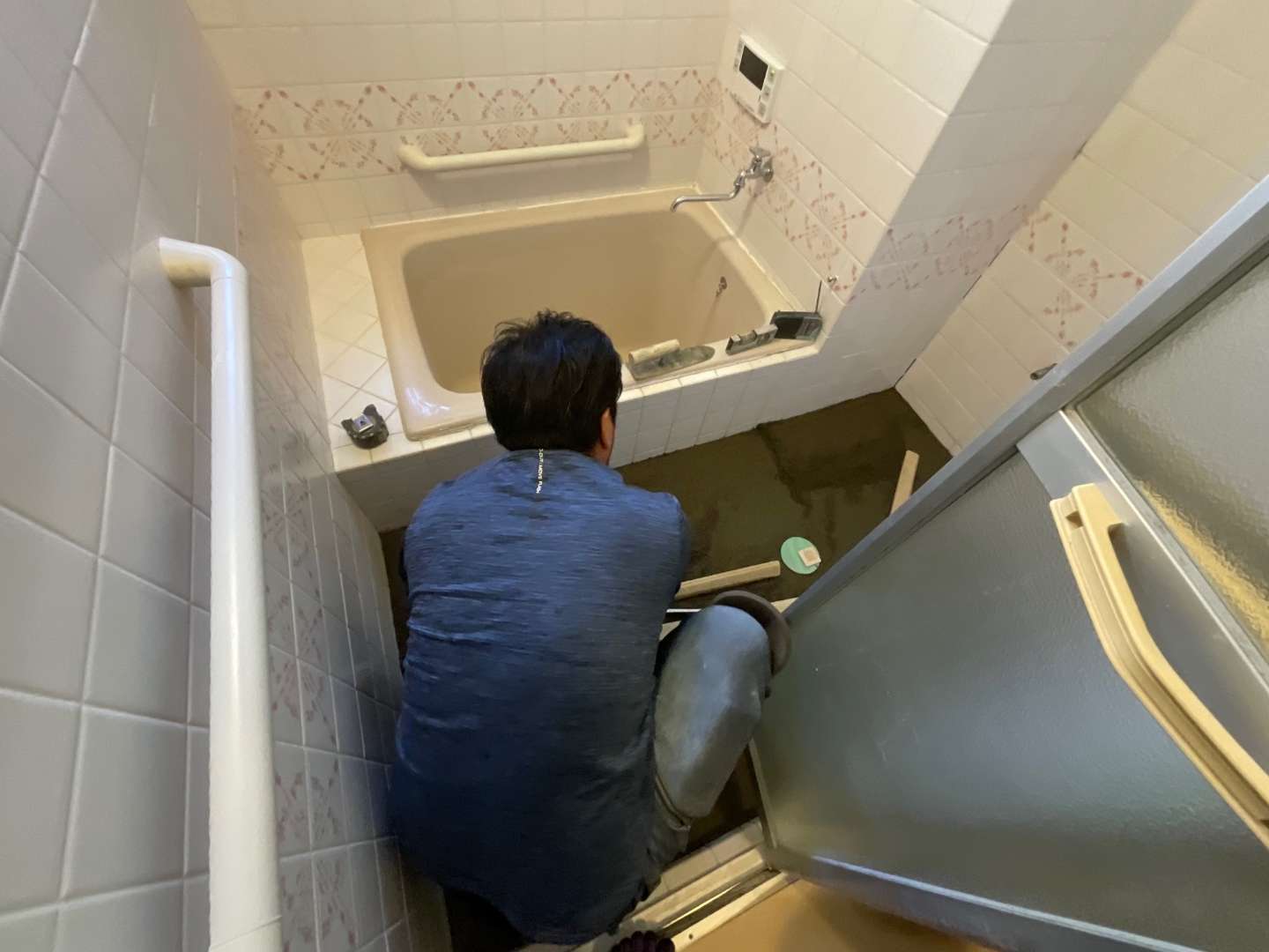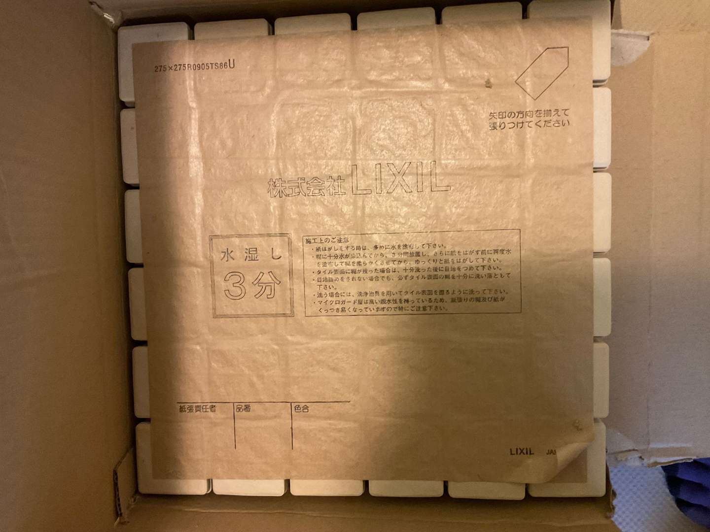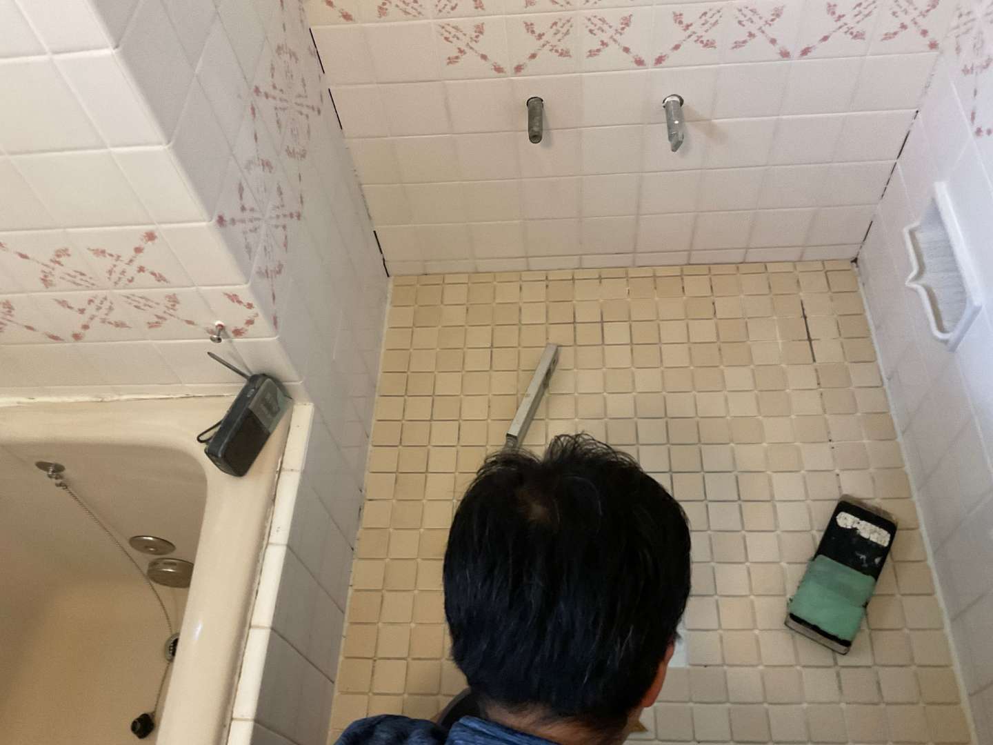 内容は、下地調整・タイル貼り・目地詰めです。
