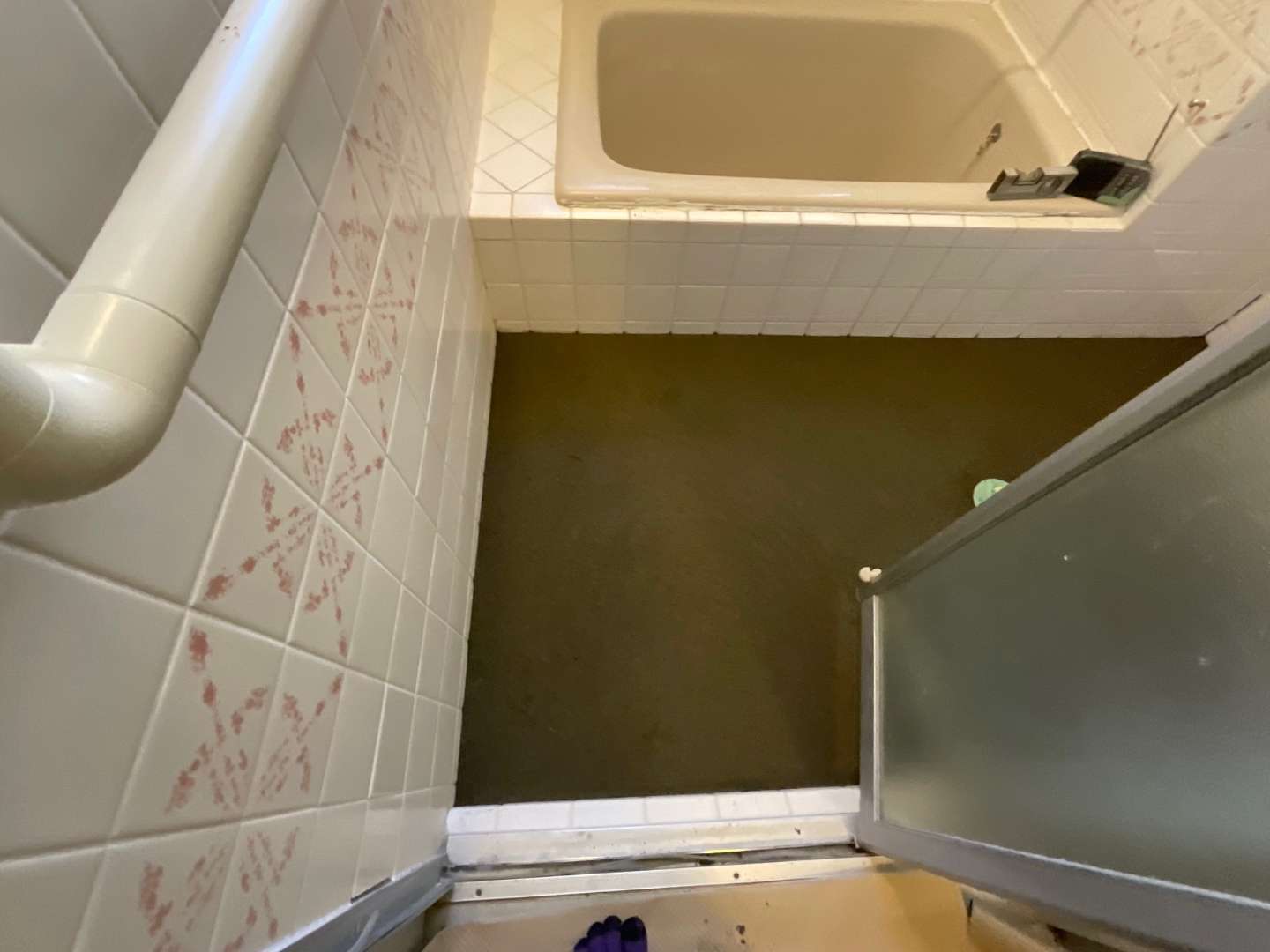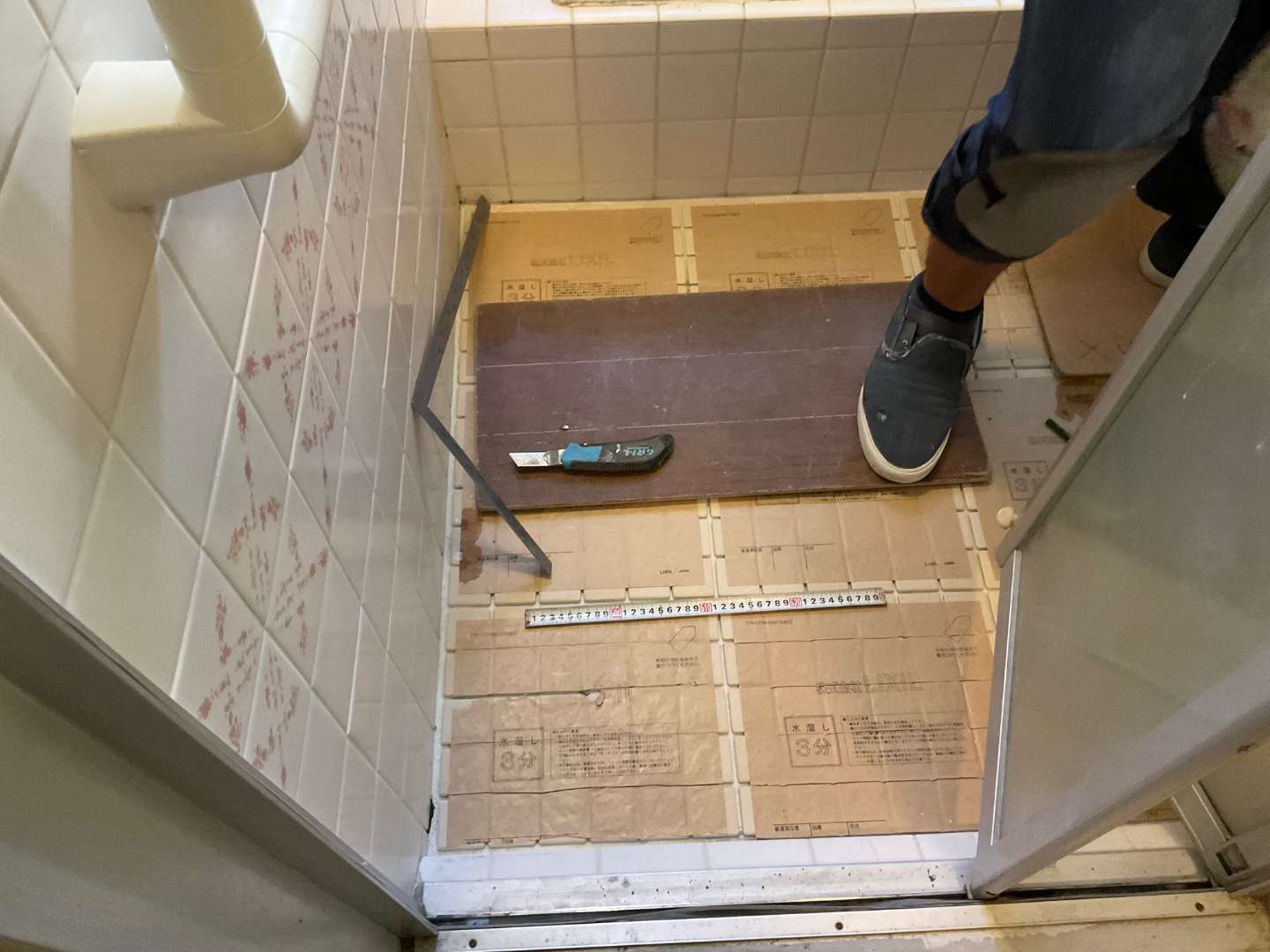 本日の作業は、床タイル貼りです。