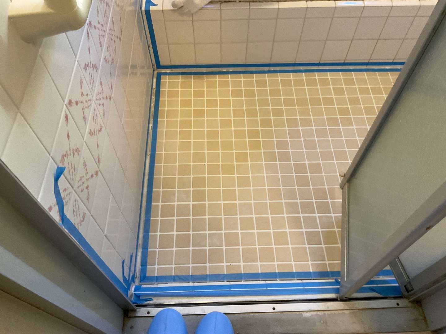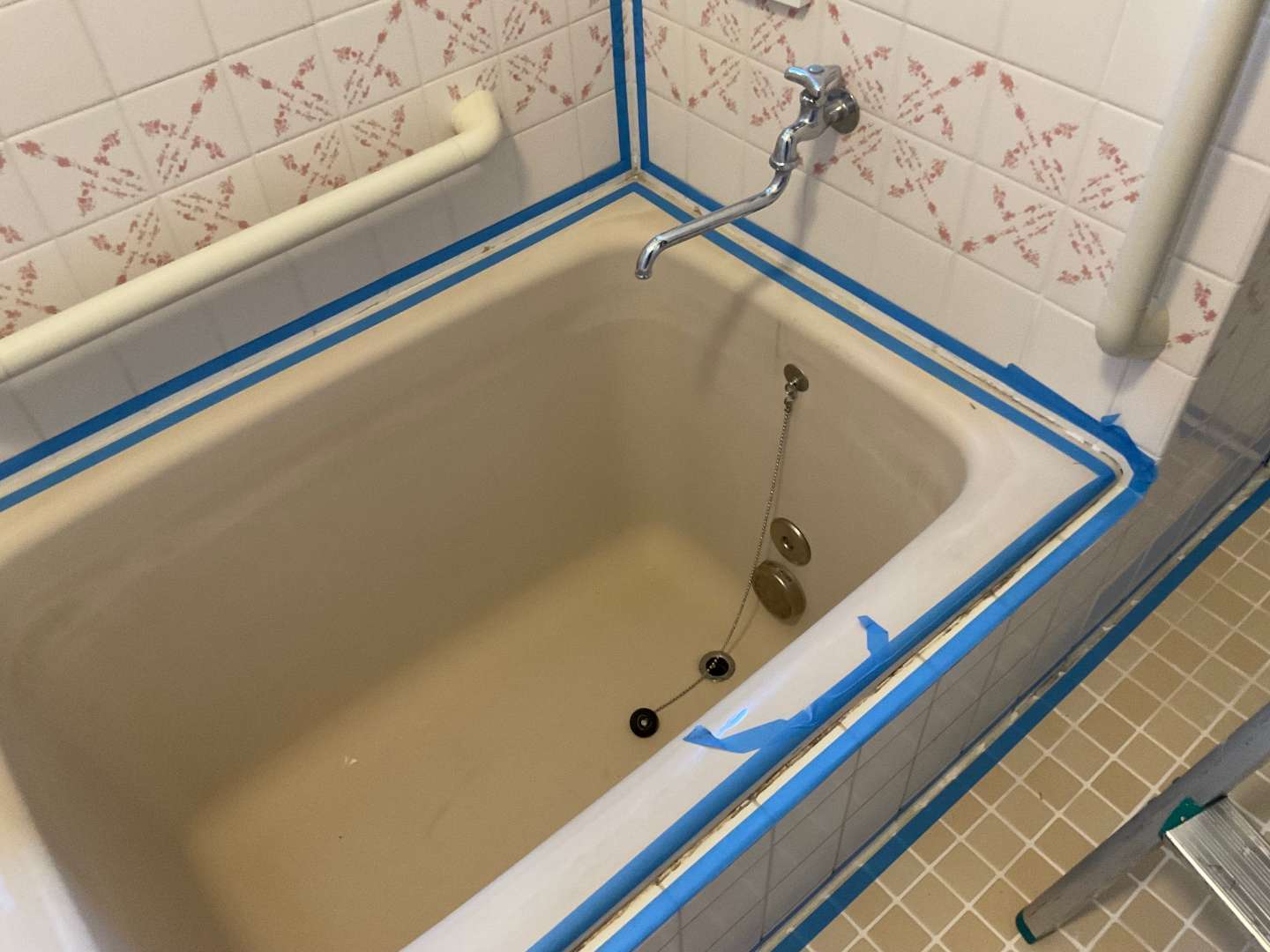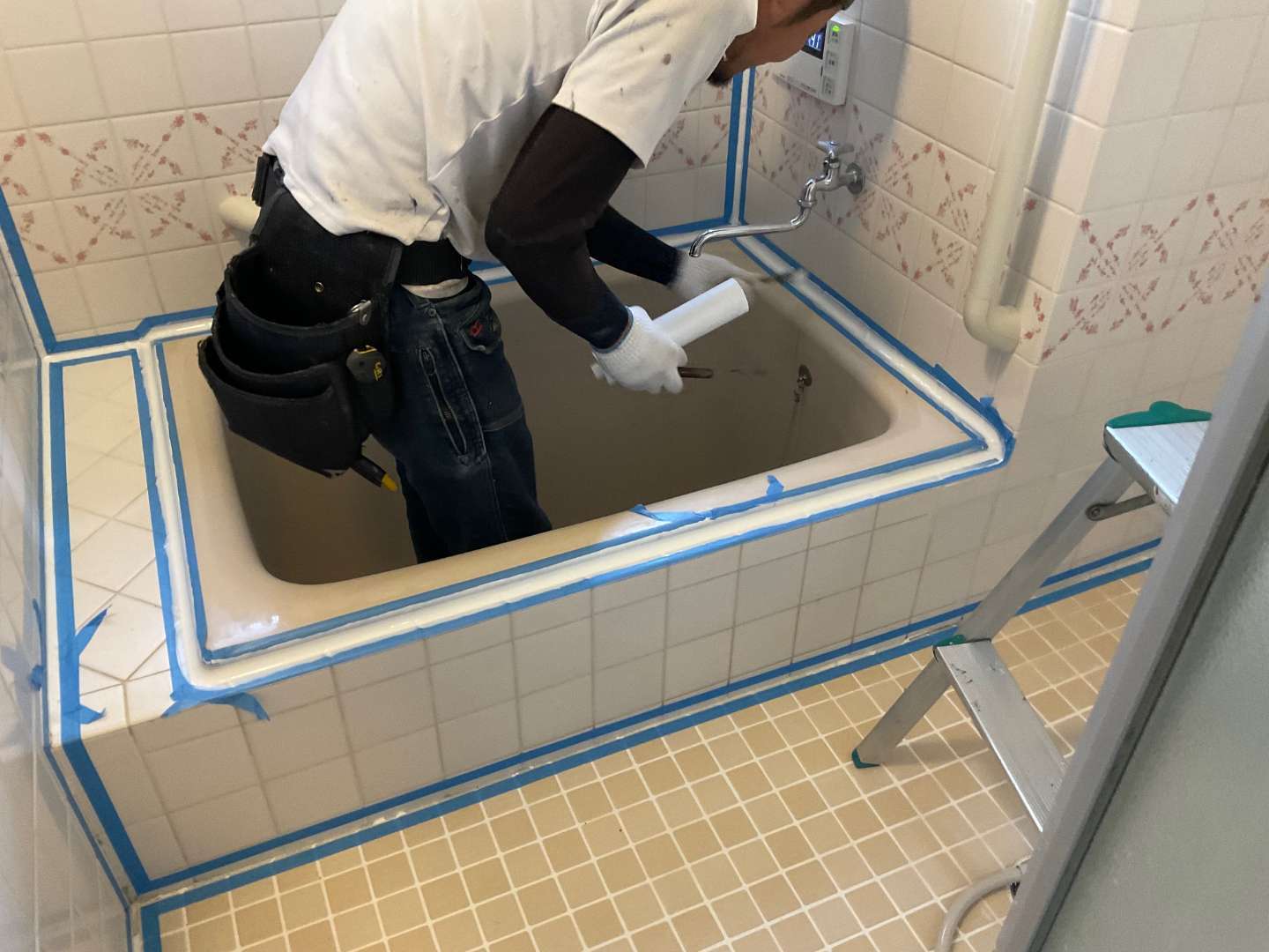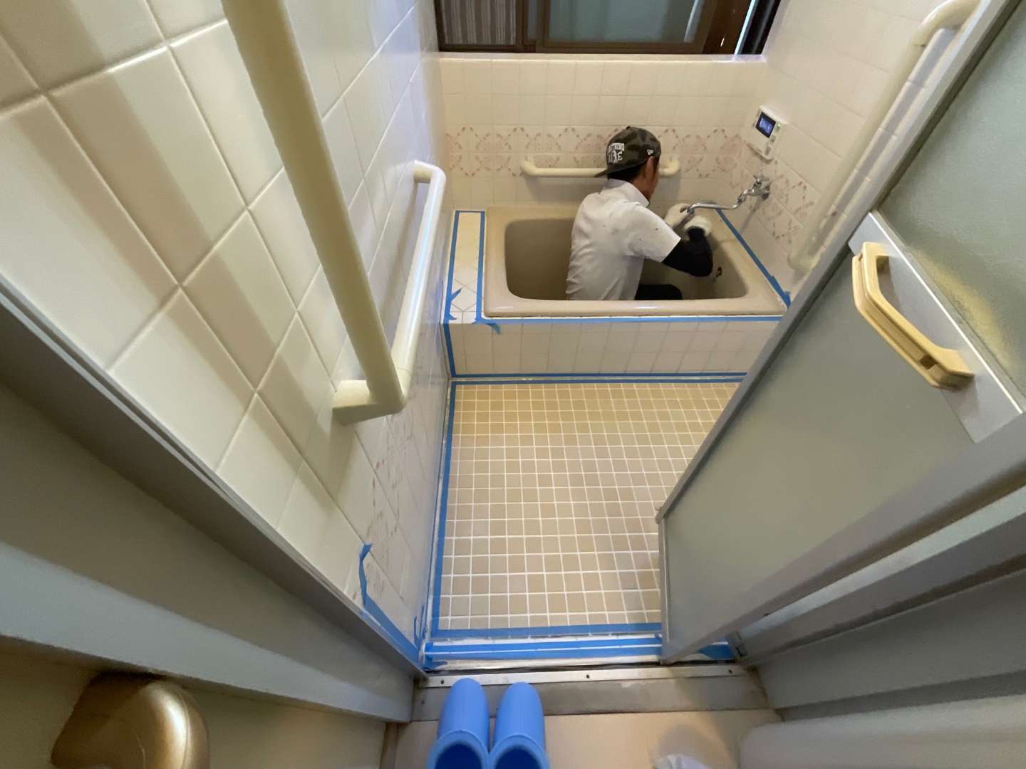 本日は、浴室タイル壁・床部分シーリング作業です
