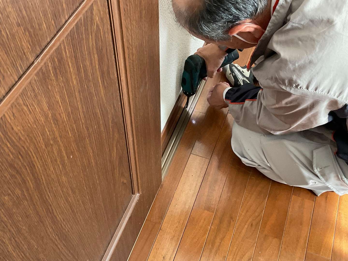 本日の作業は、リビング入口引き戸レール・戸車交換です。
