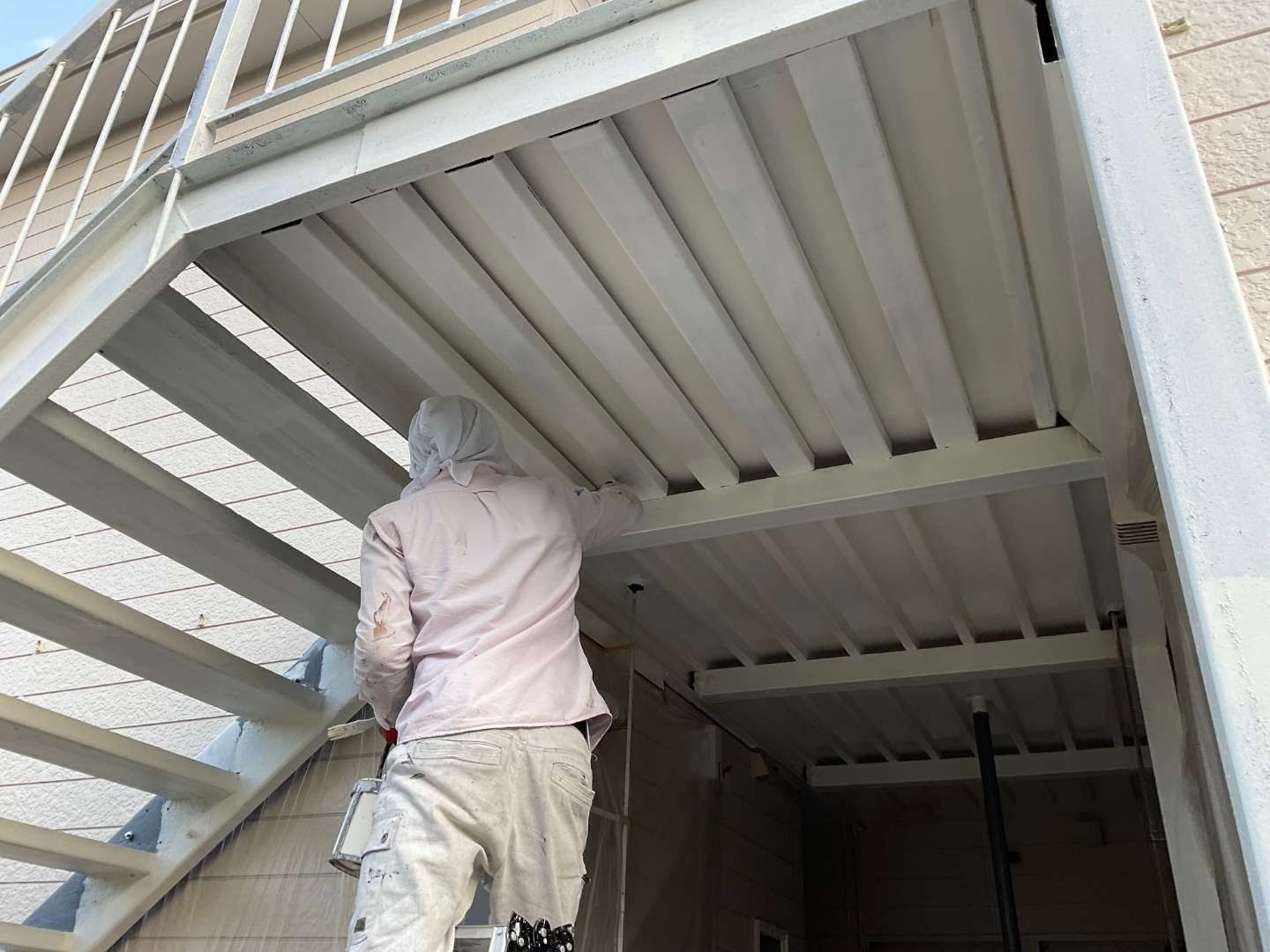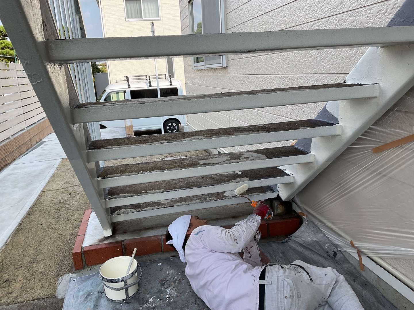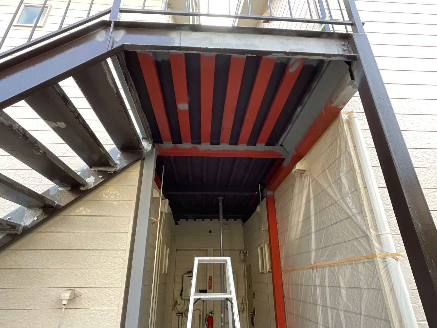 本日の作業は、階段・共用通路塗装作業です。