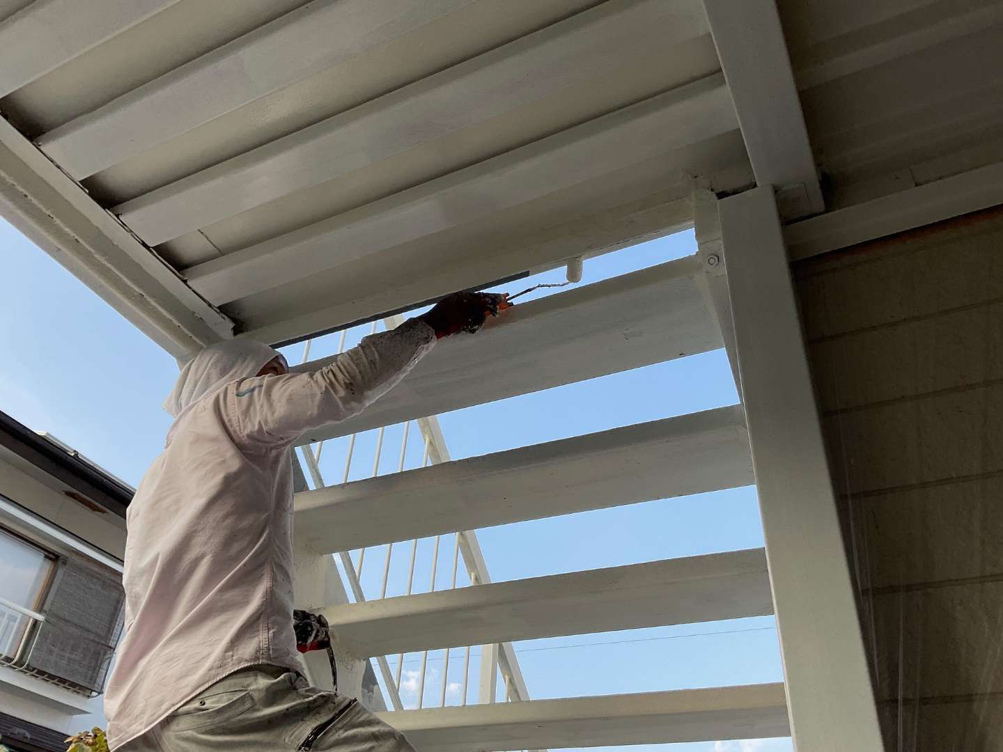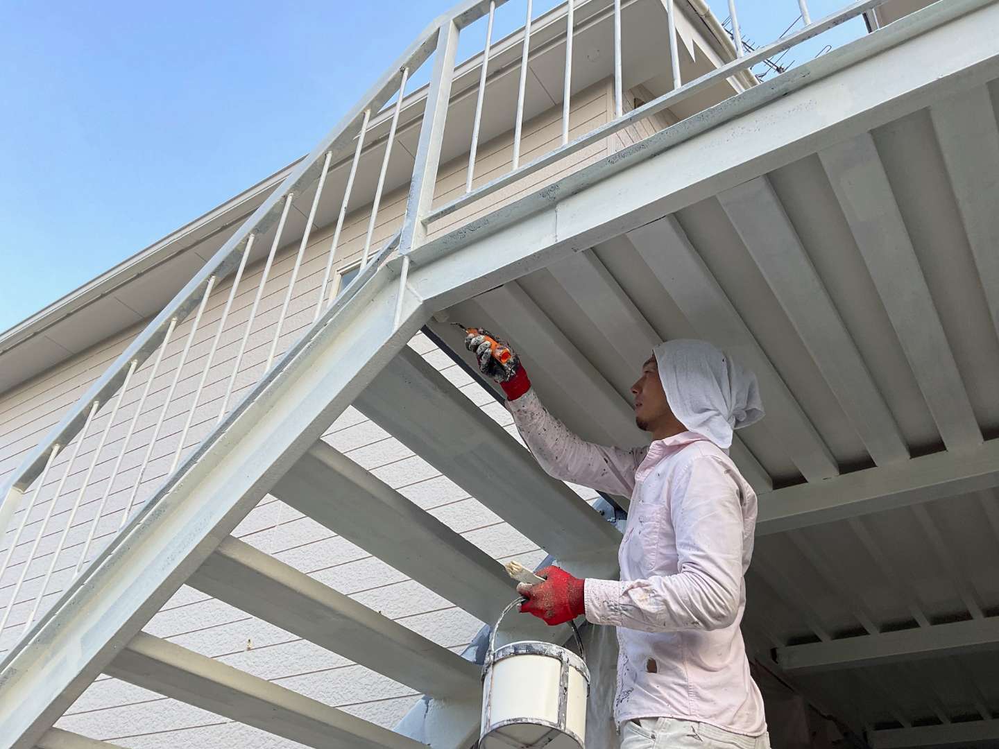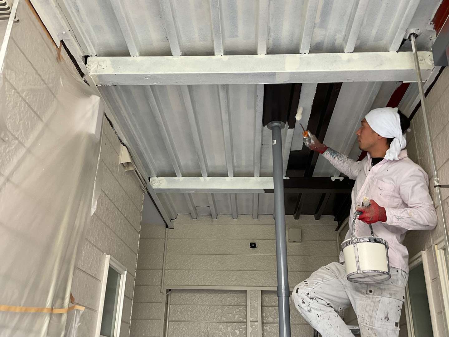 本日の作業は、階段・共用通路塗装作業です。