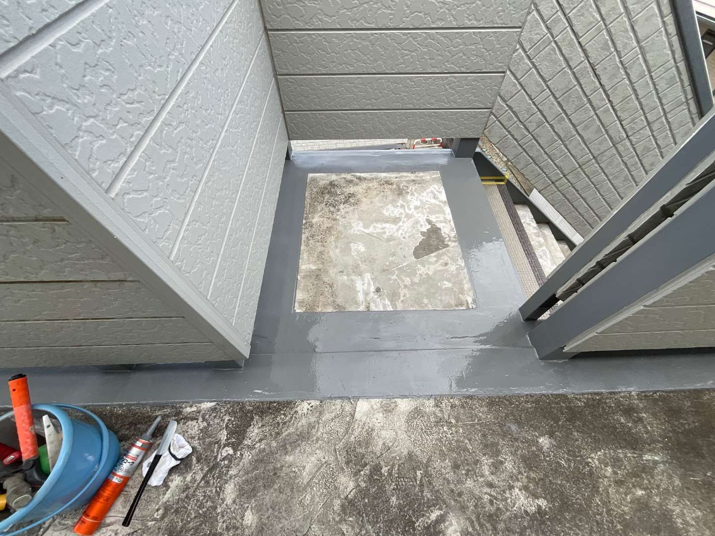 踊り場ウレタン防水作業