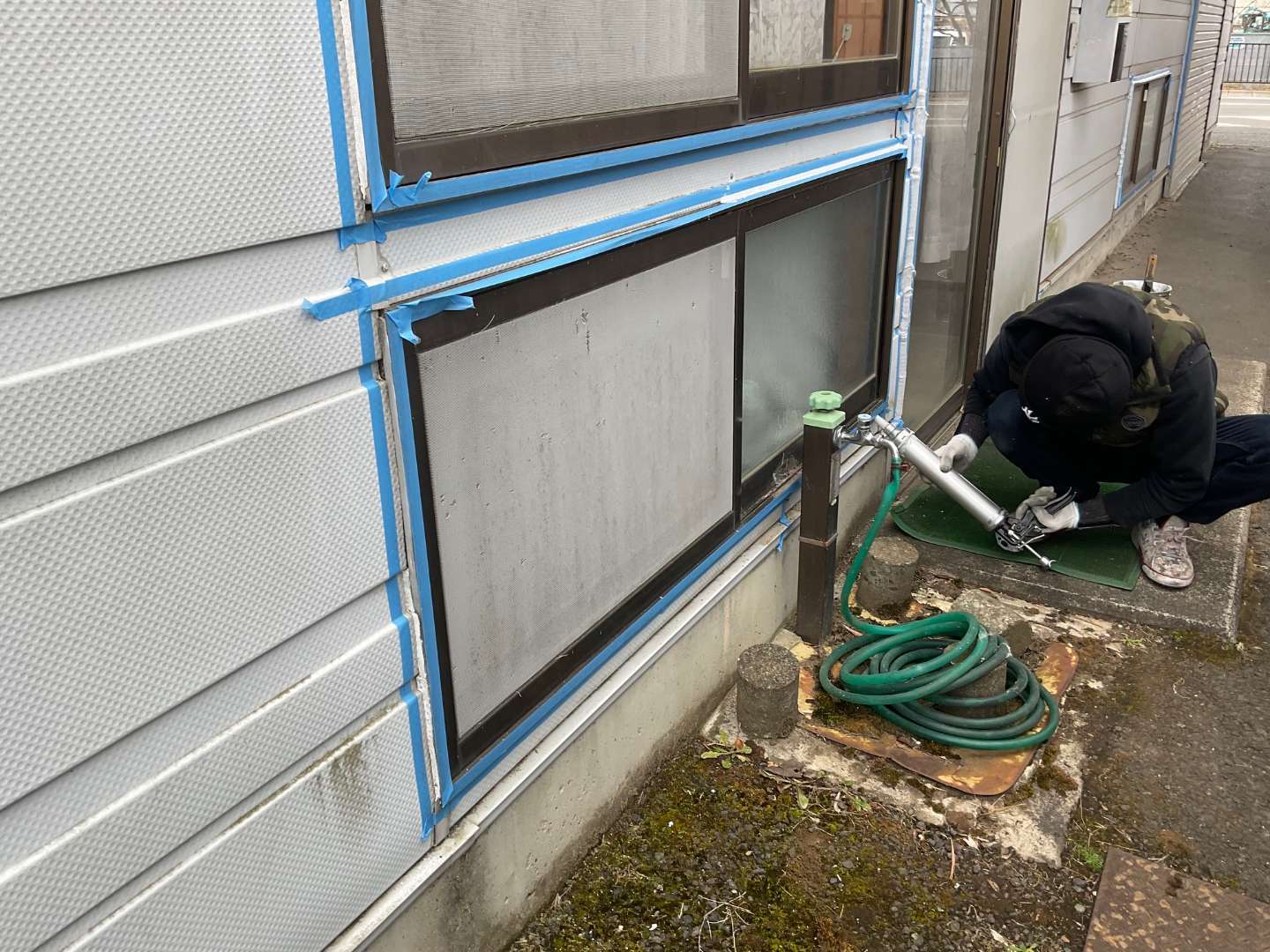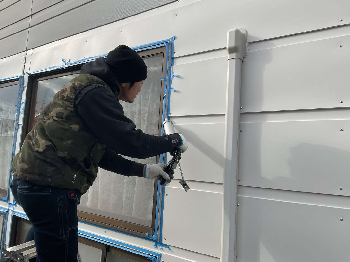 本日は、外壁サッシ廻りシーリング打ち作業です。