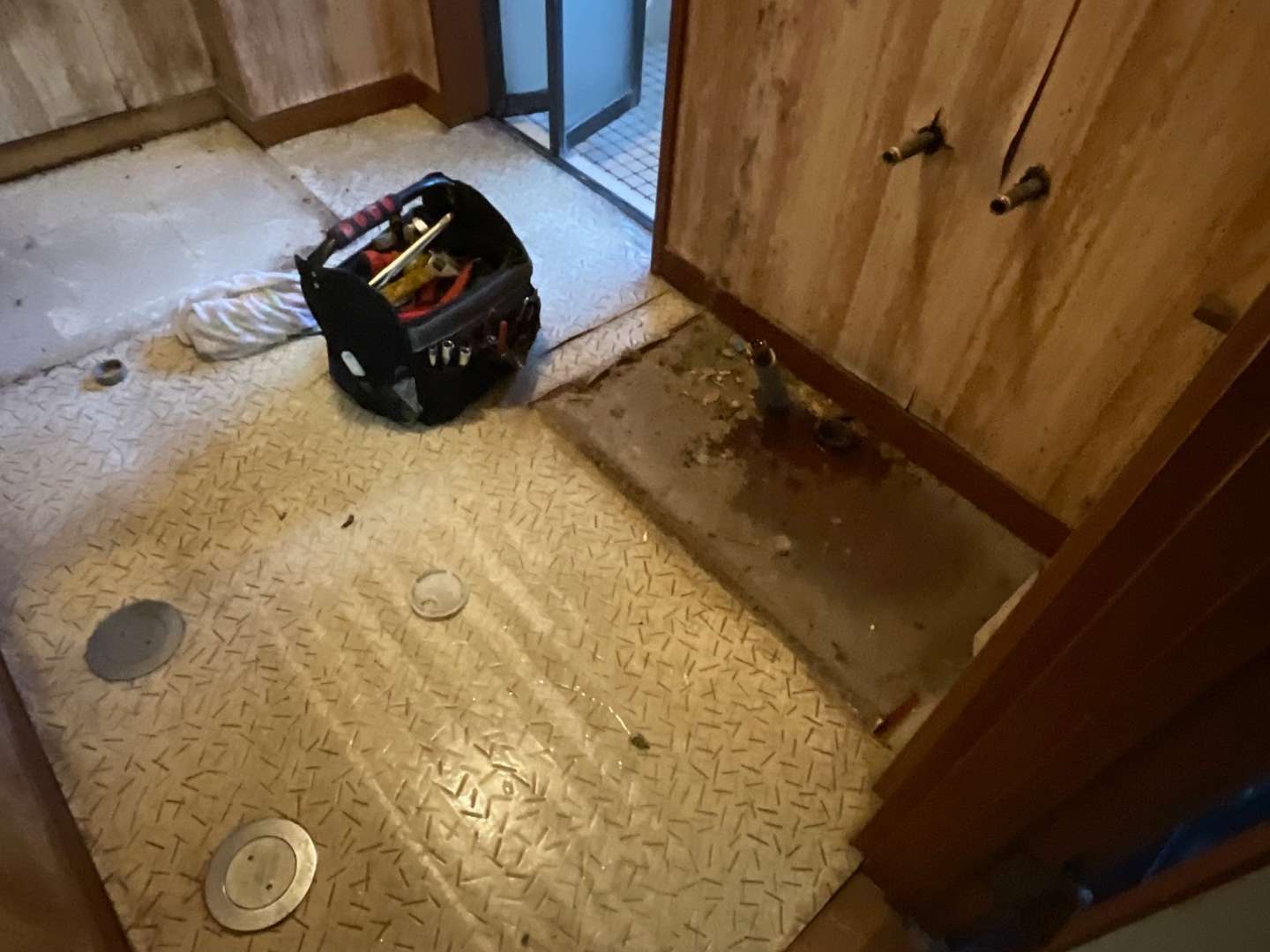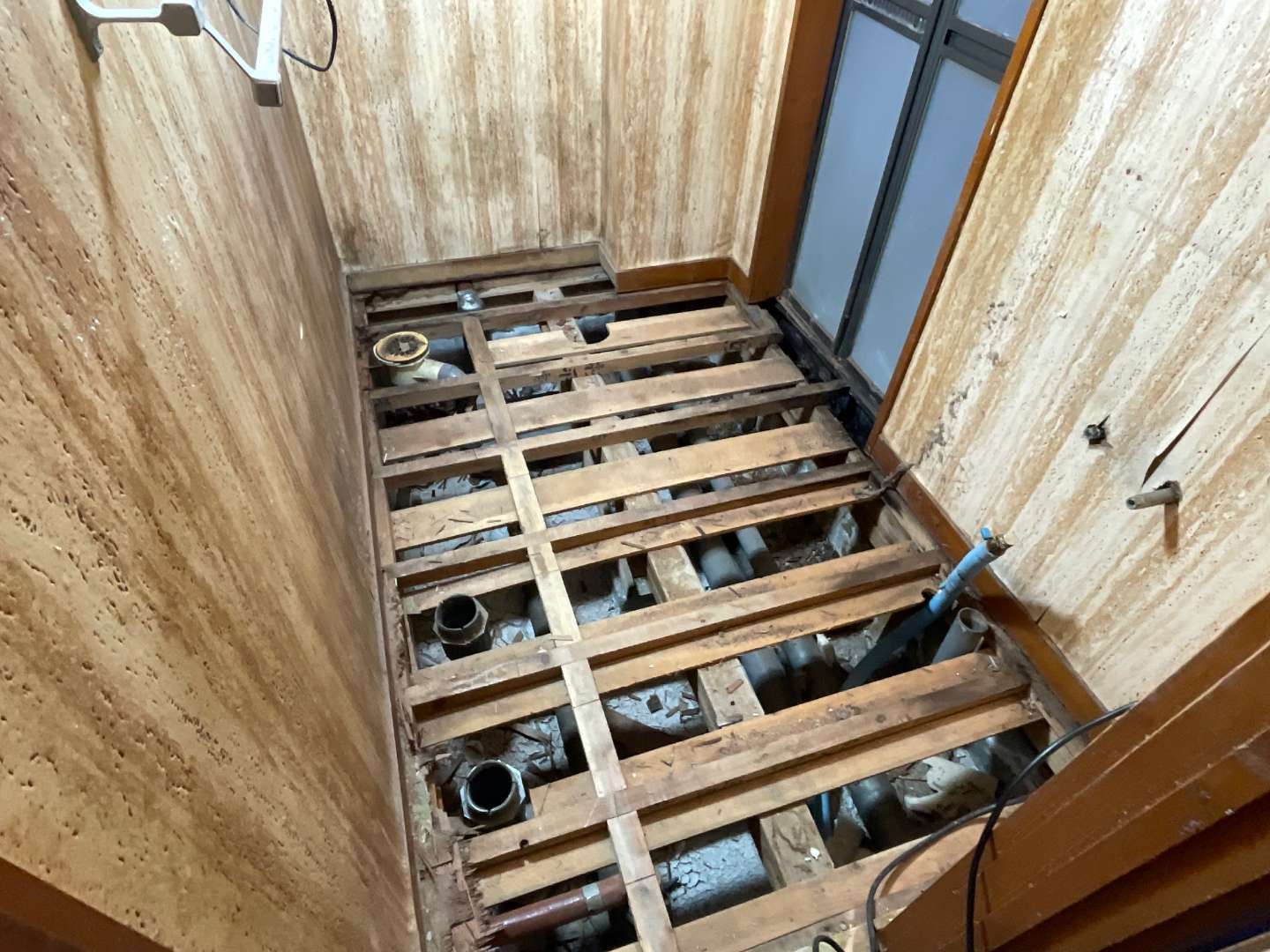 #洗面化粧台撤去・配管移設作業