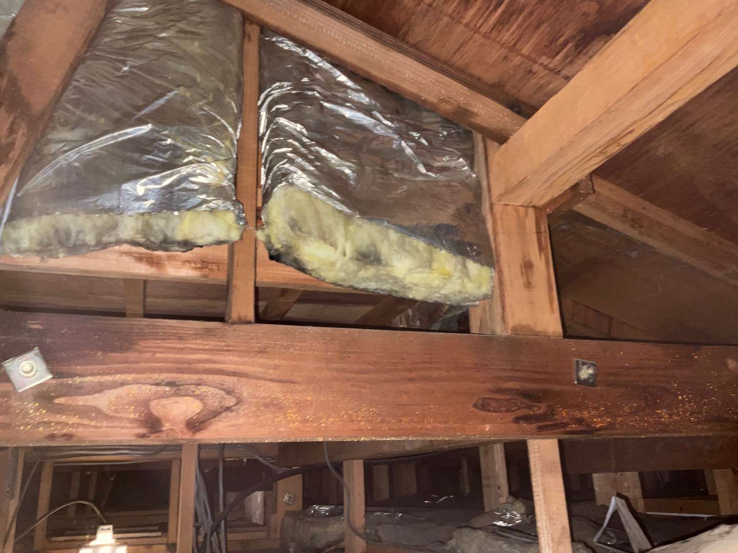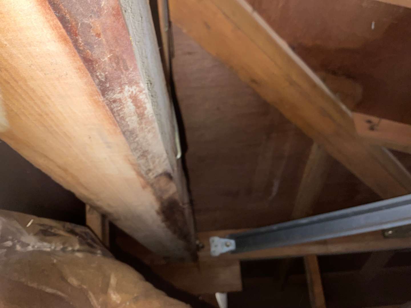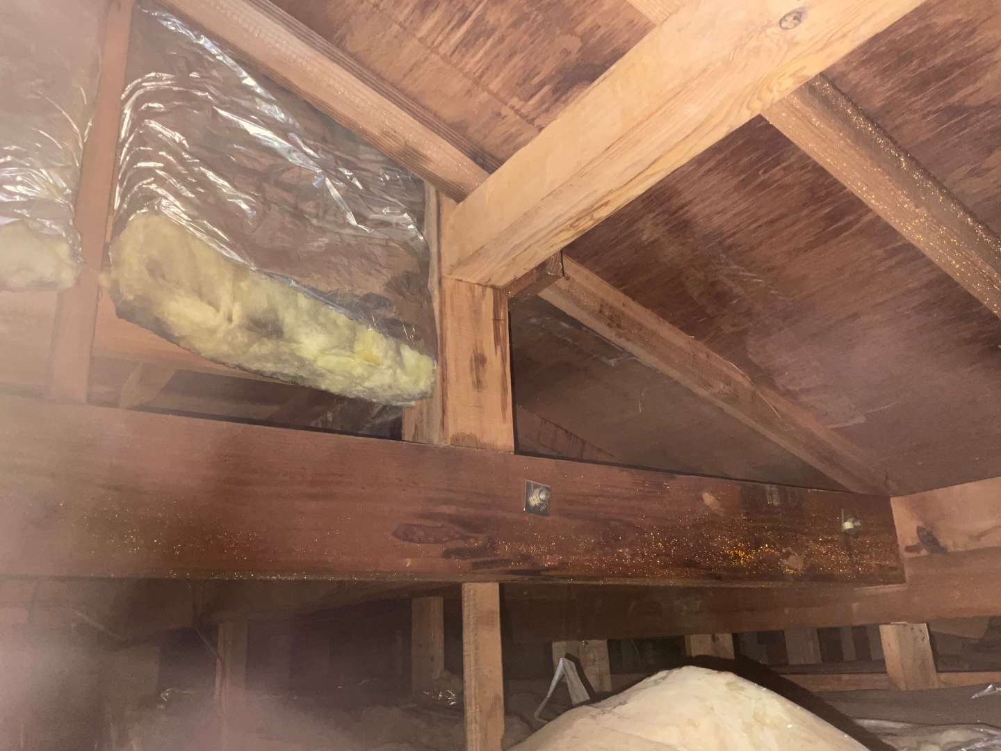 屋根裏確認しましたら、2階から雨漏れしてるようです。