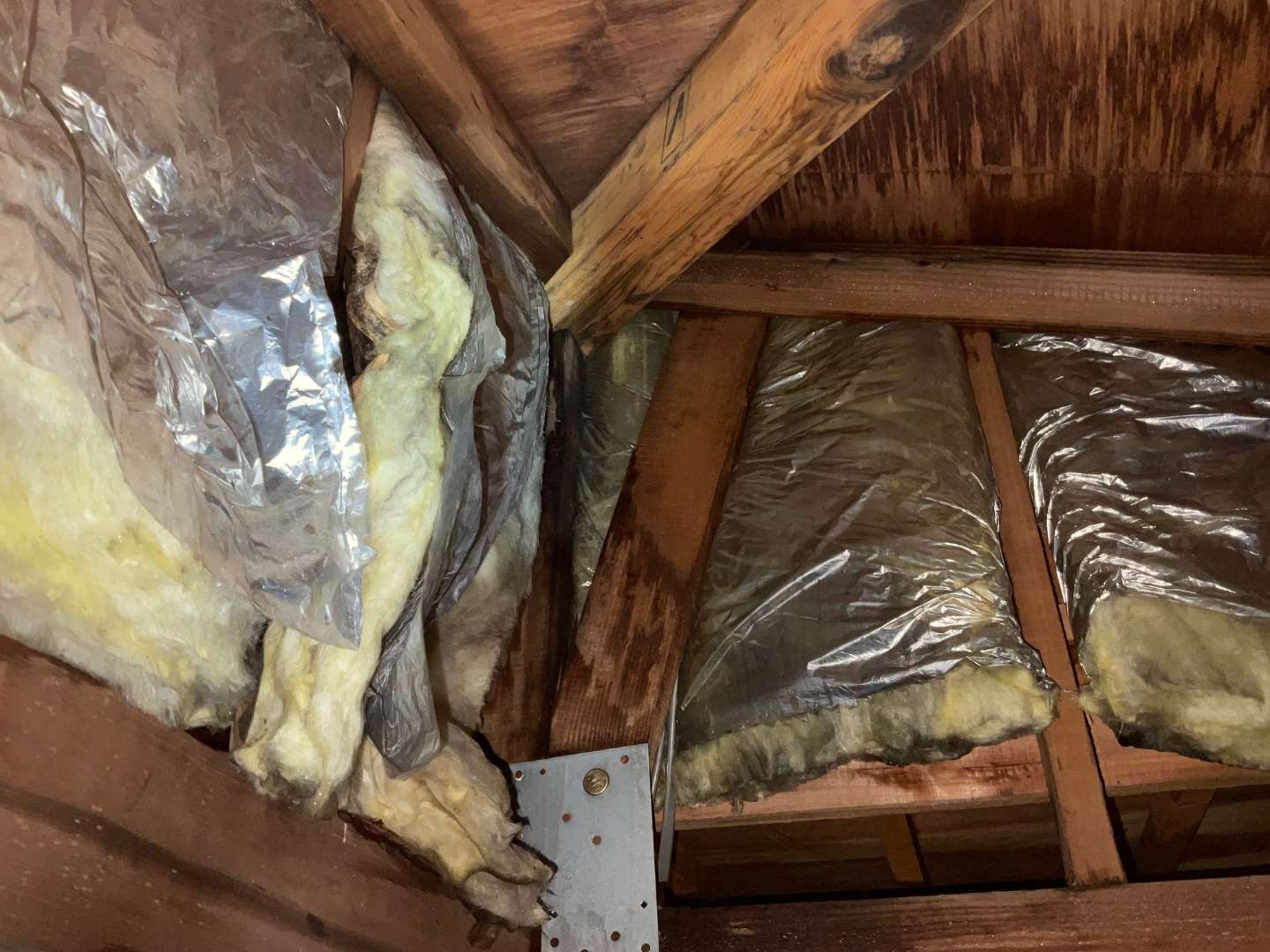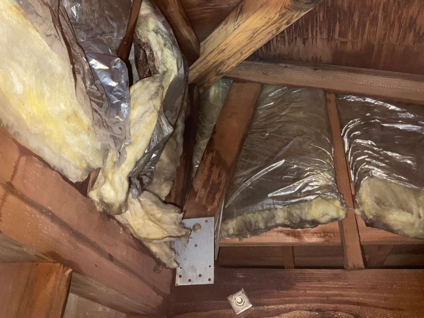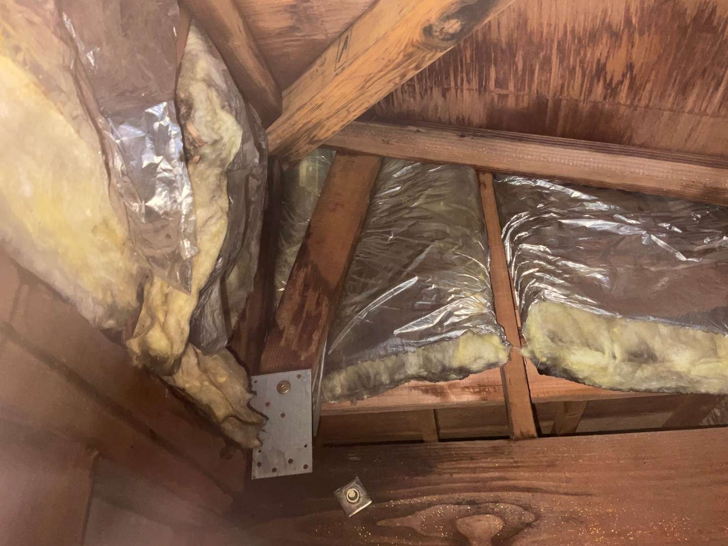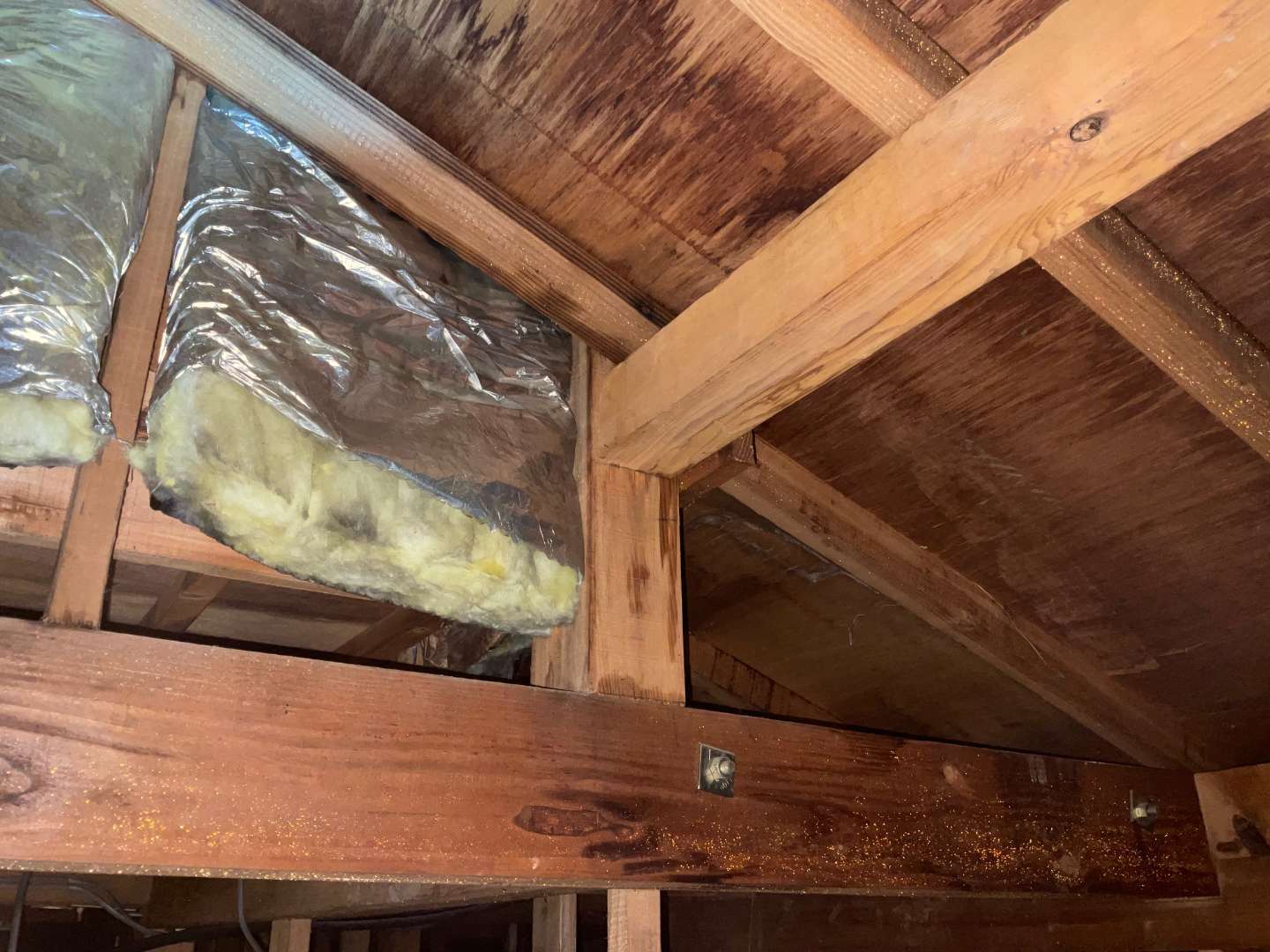 屋根裏確認しましたら、2階から雨漏れしてるようです。