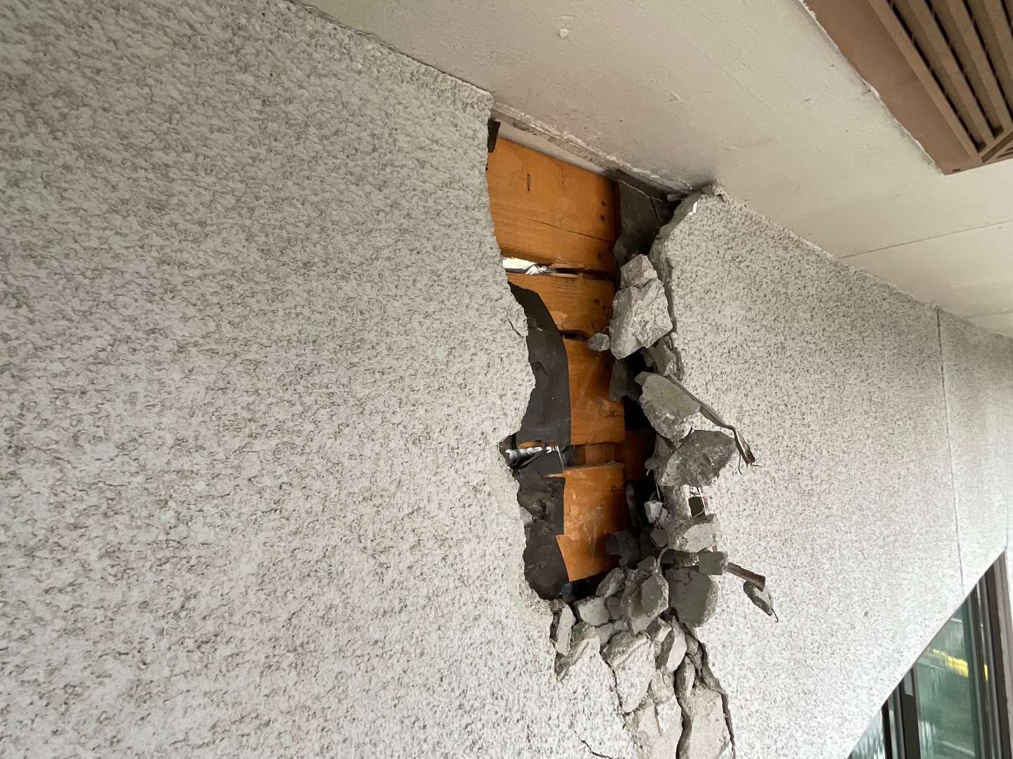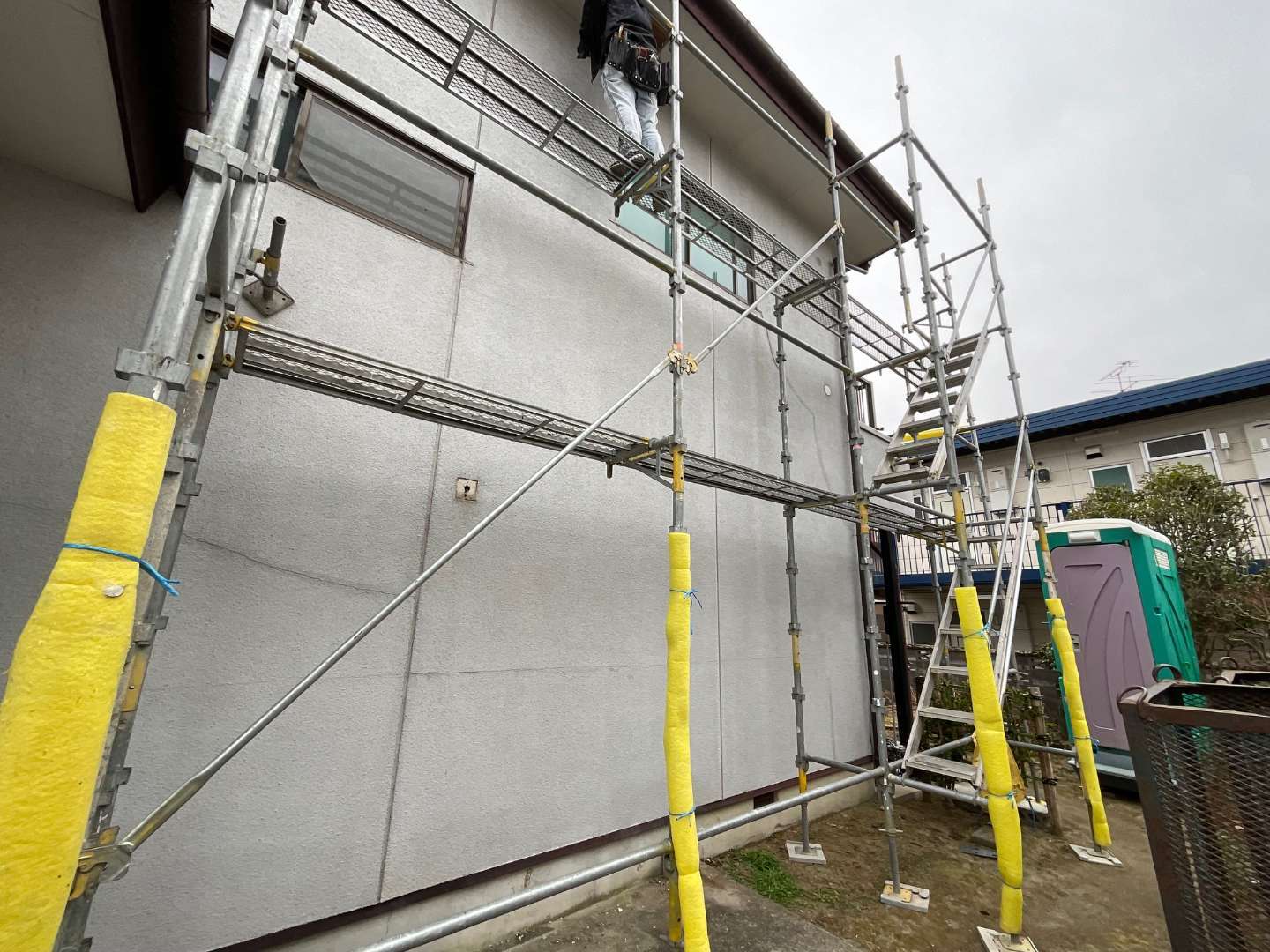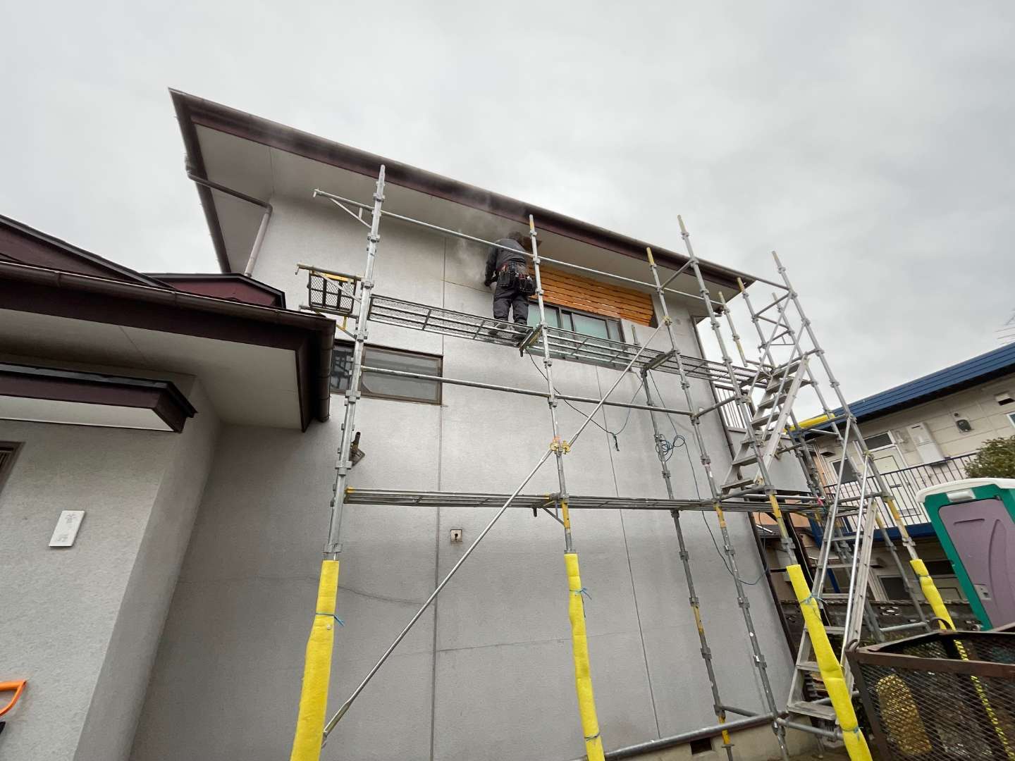 本日の作業は、既存モルタル外壁解体作業です。