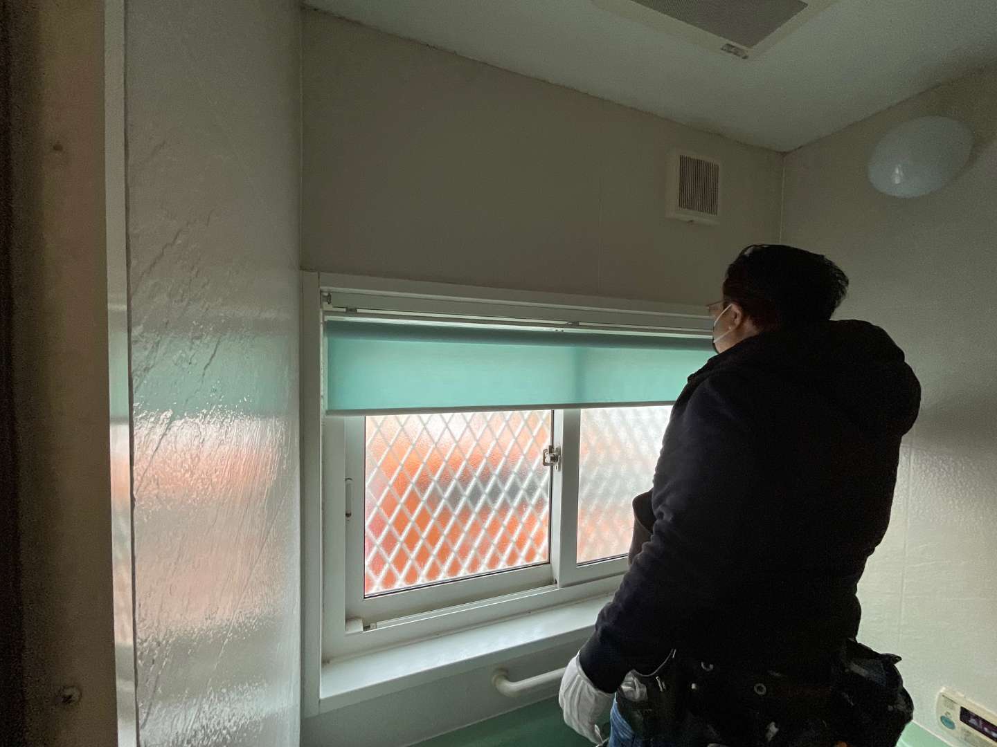 本日は、浴室窓ブラインド~ロールスクリーンに交換取り付け作業です。