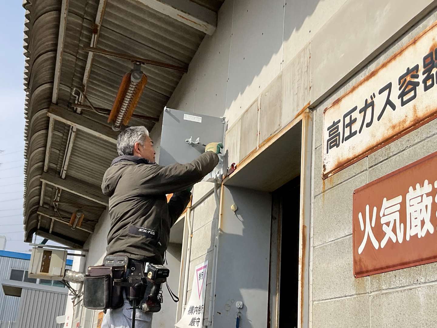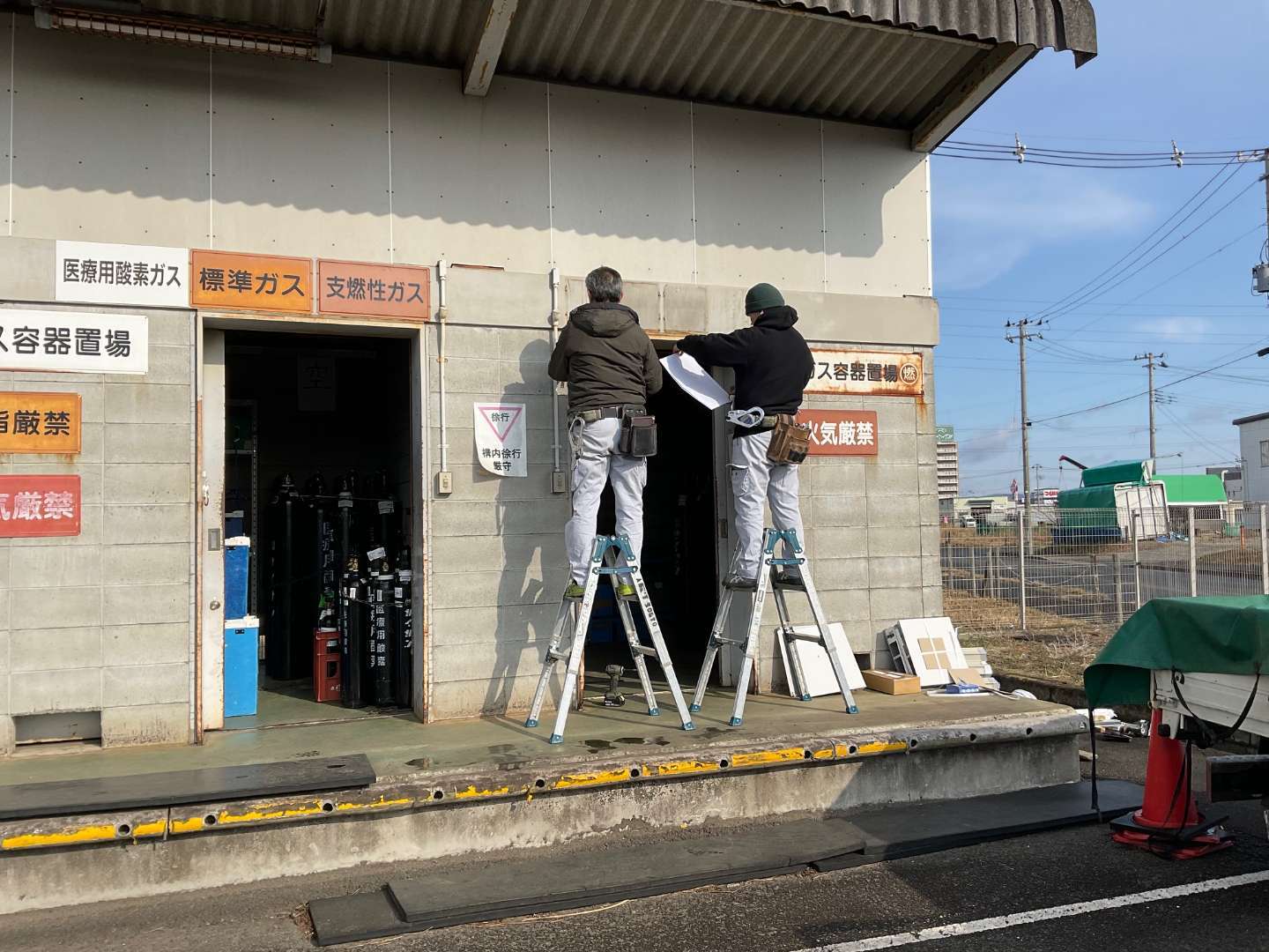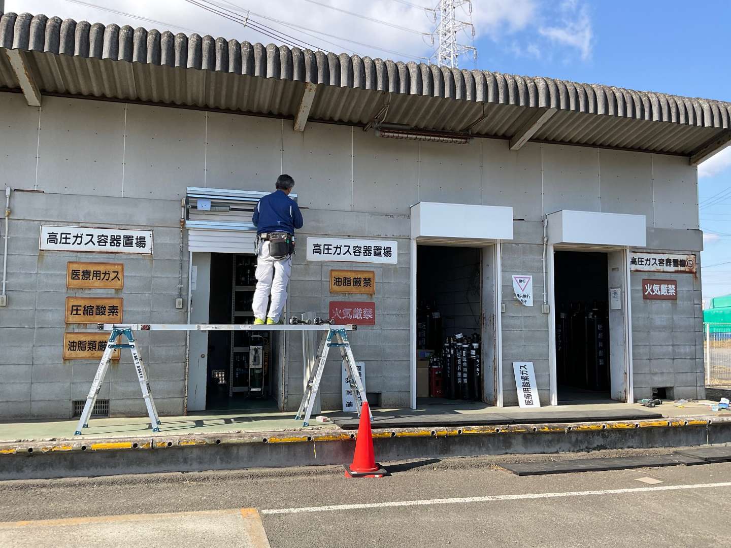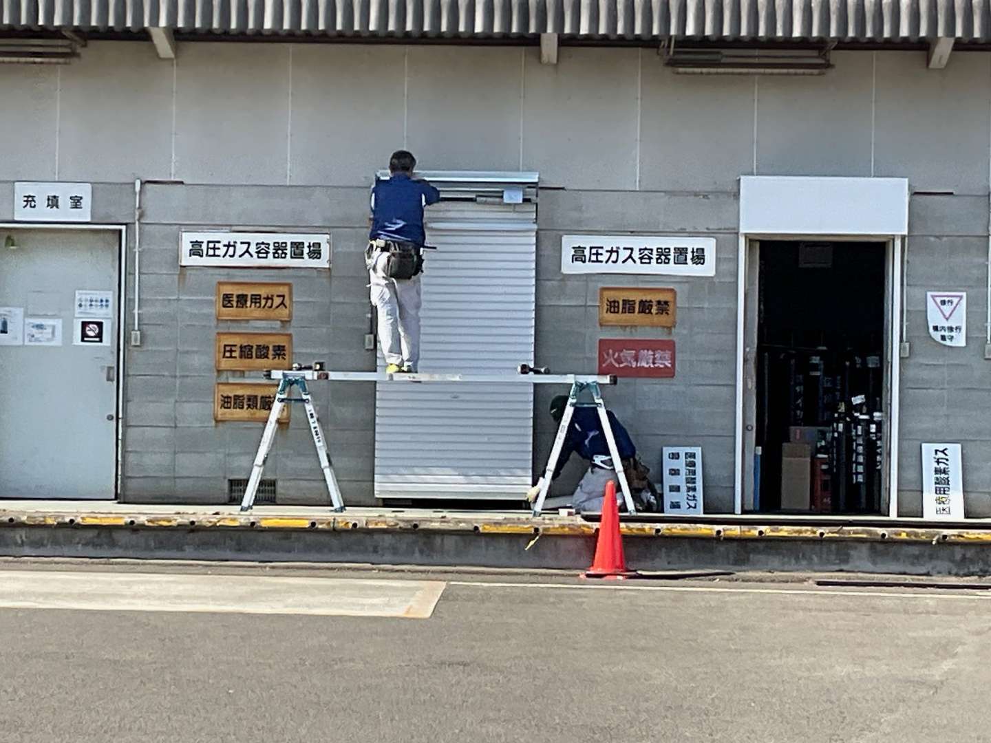 本日は、会社の資材置き場入口 3カ所引き戸~シャッターに