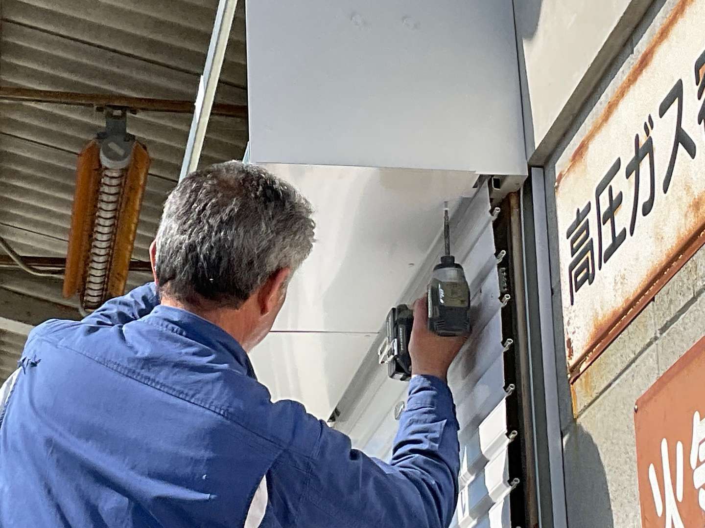 シャッター取付開始