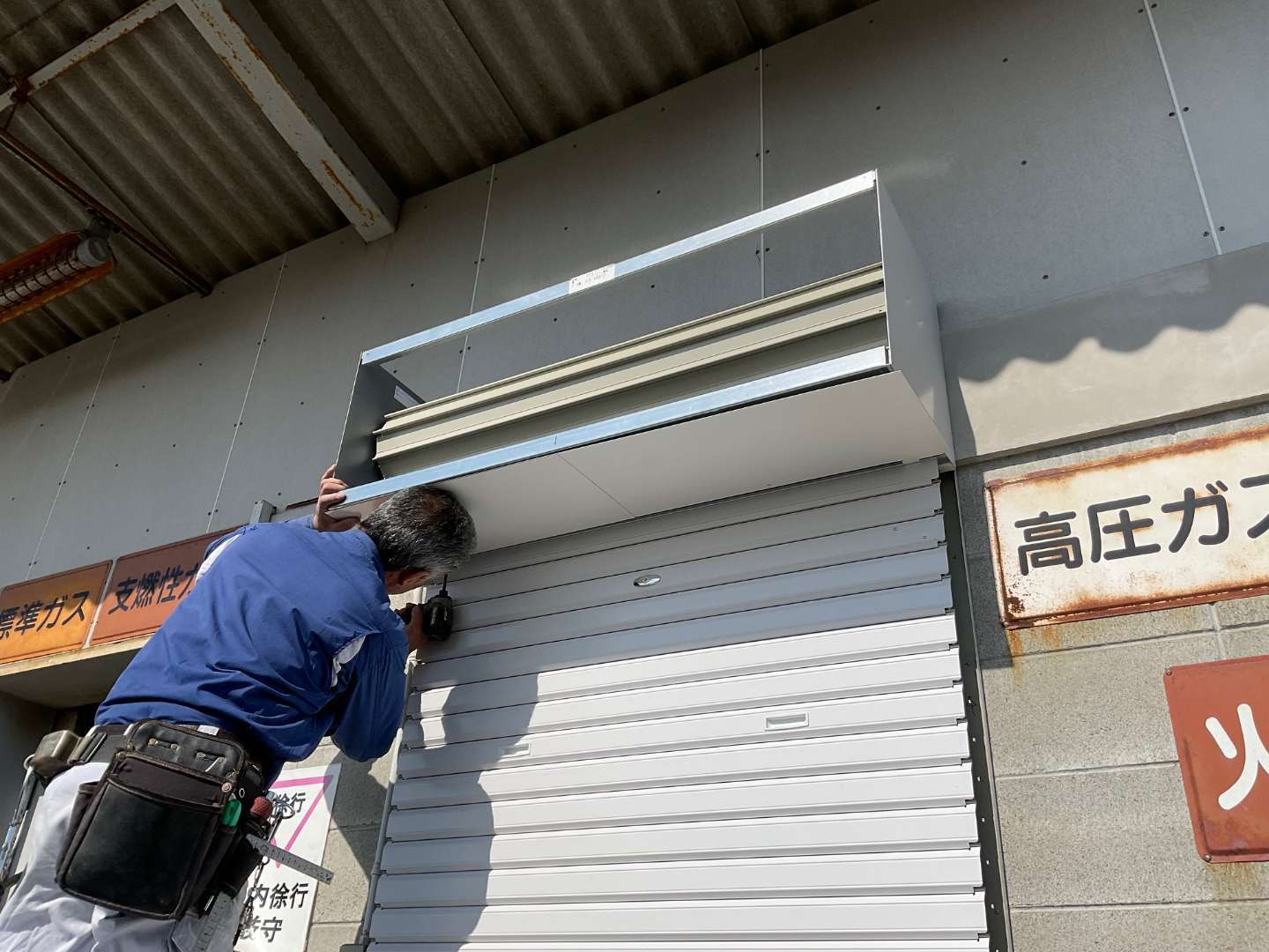 シャッターBOX取り付け作業