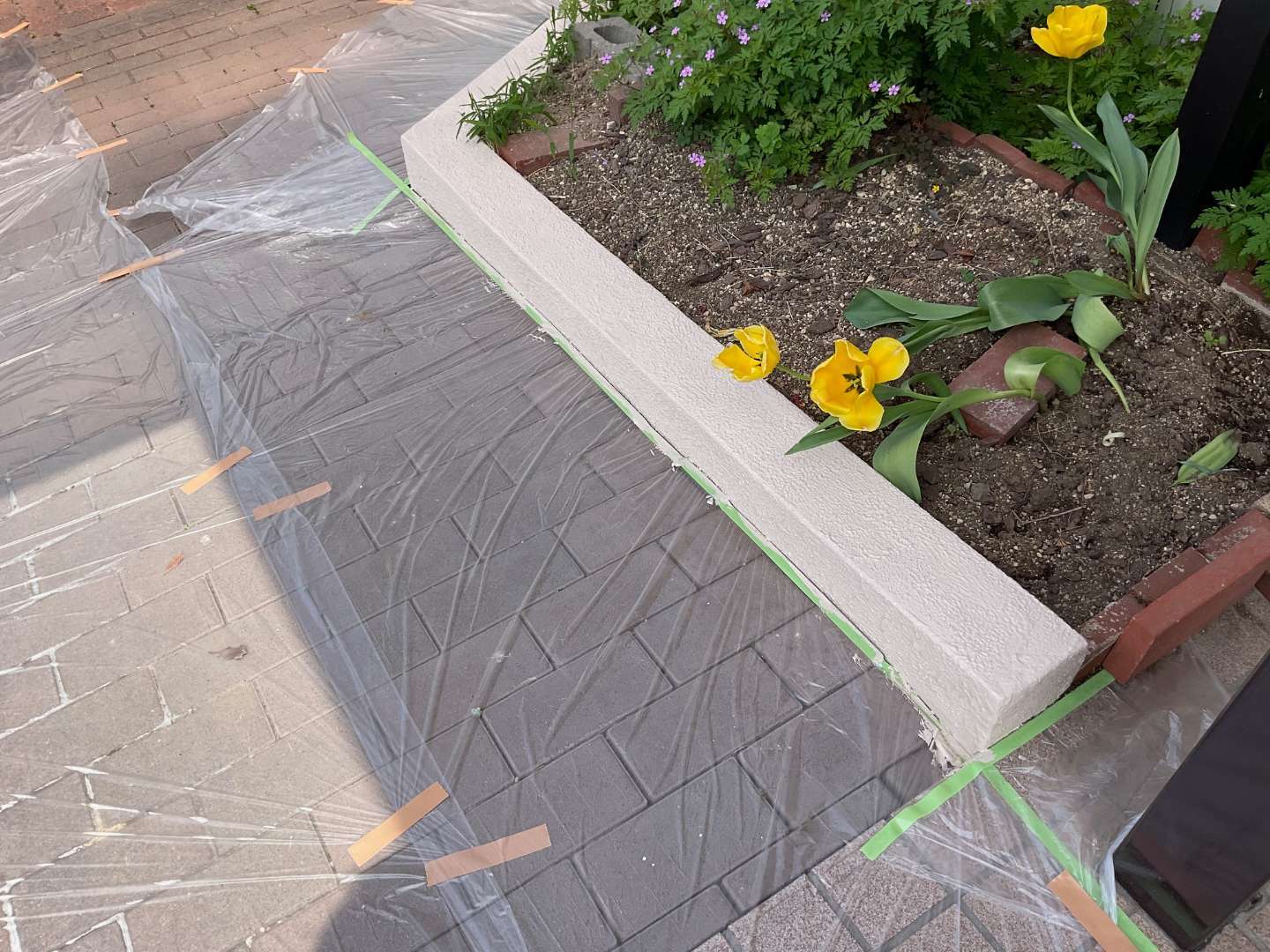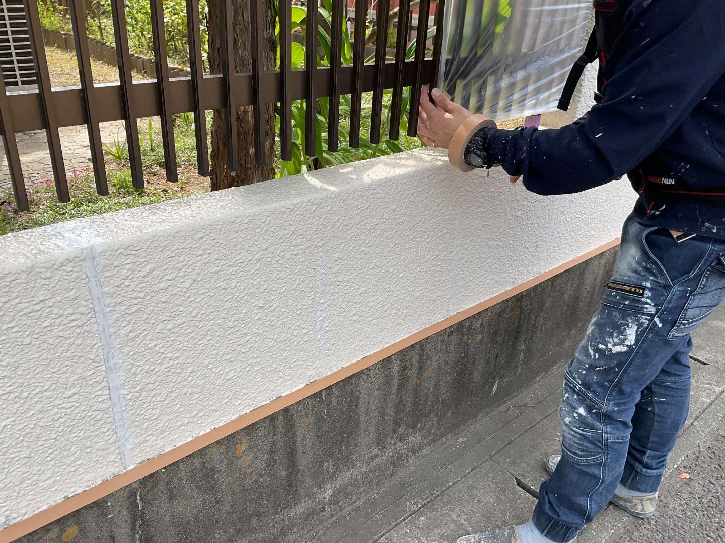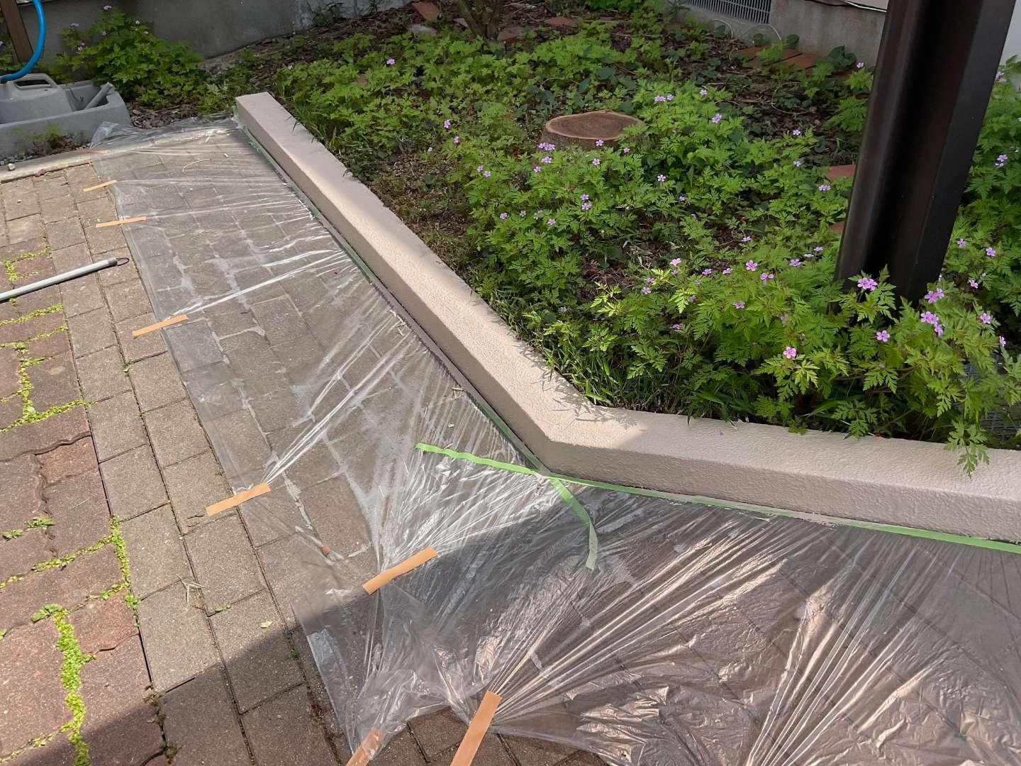 本日は、コンクリート塀の塗り替え作業です。