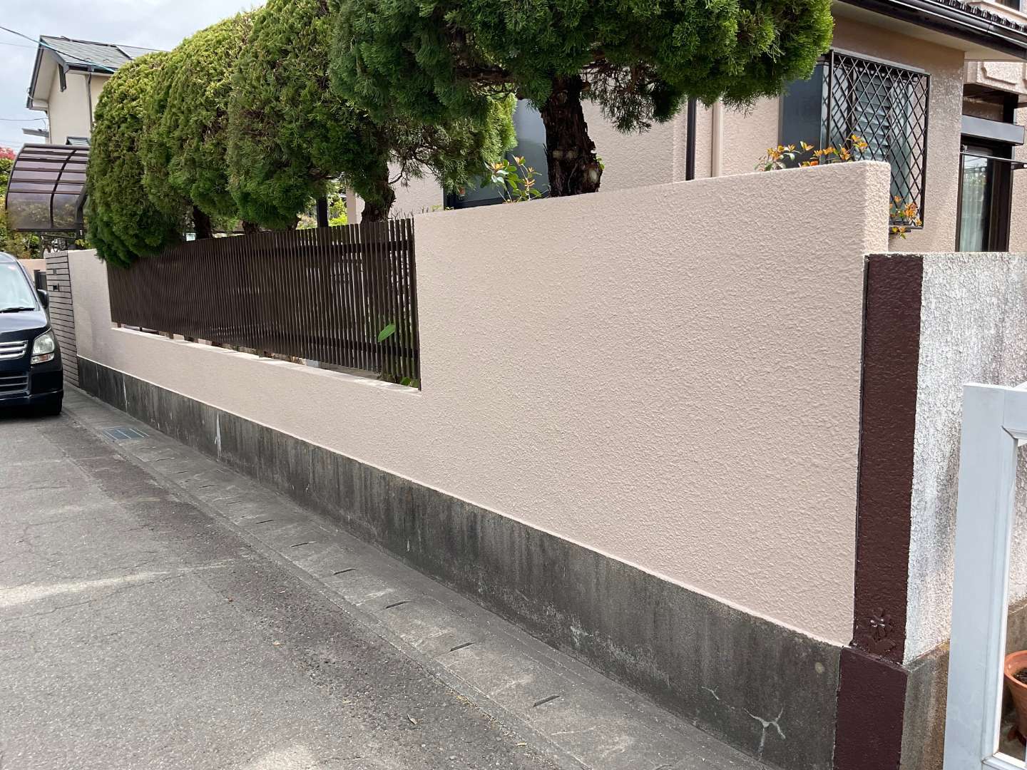 塀塗り替え工事完了です。
