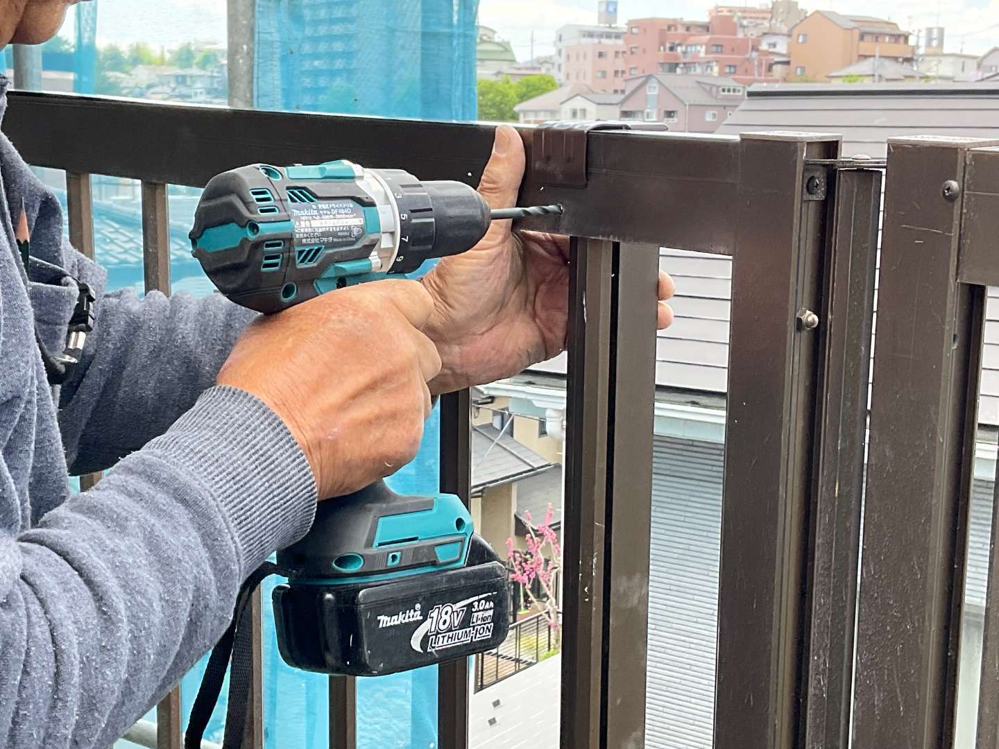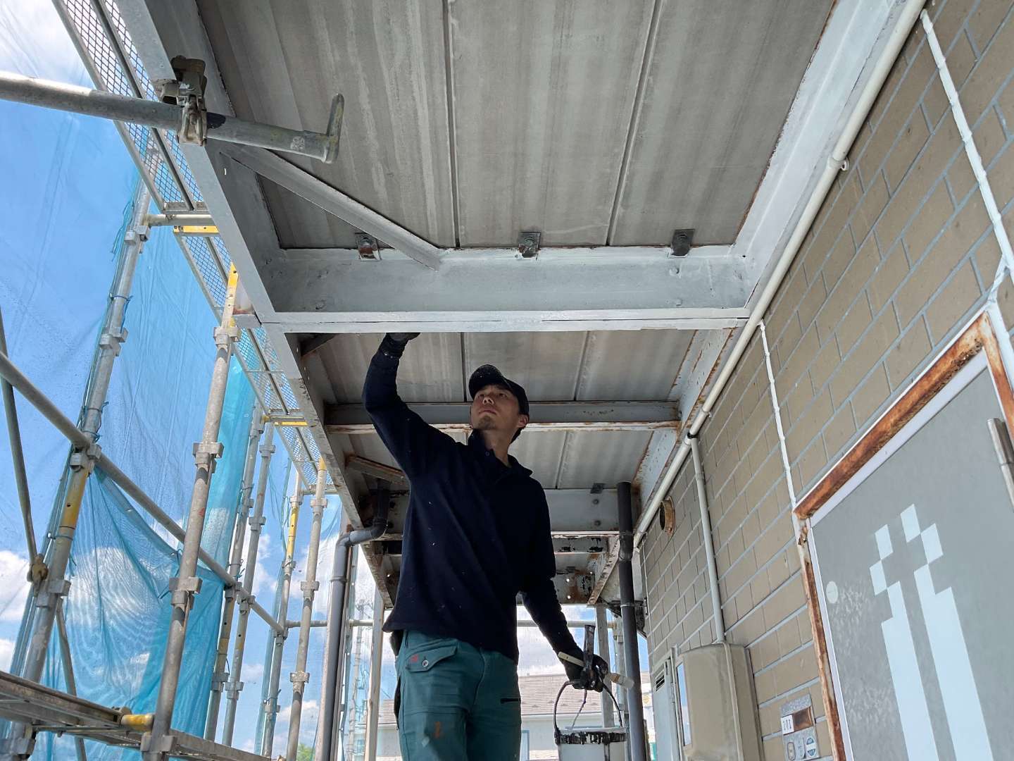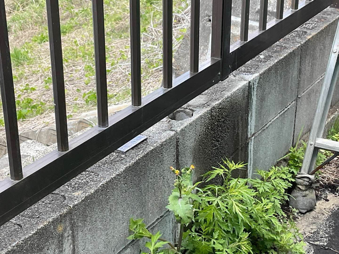 本日の作業は、既存フェンス補強・コンクリート亀裂箇所補修・鉄部錆止め塗装です。