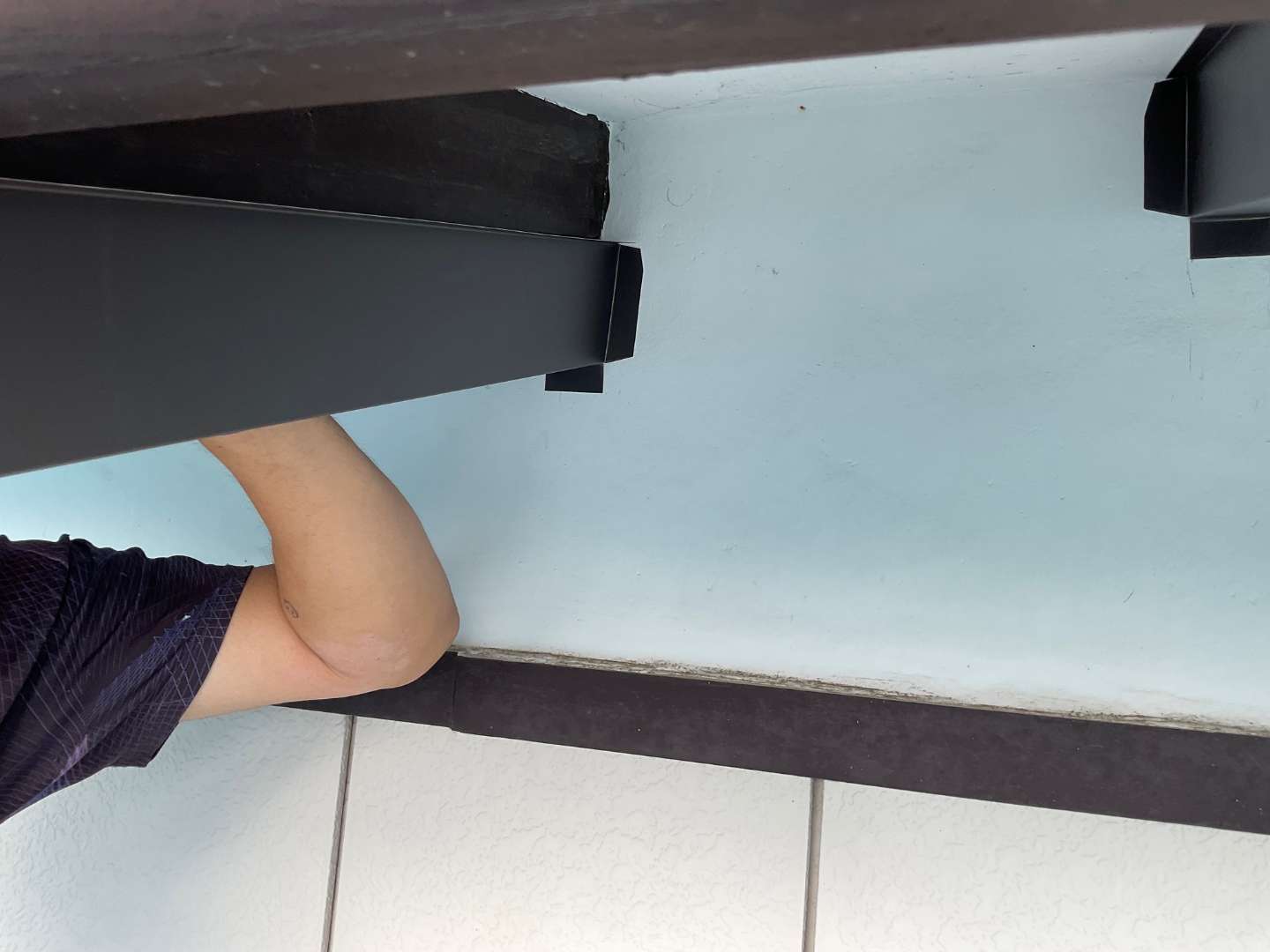 既存木部に板金材貼り作業