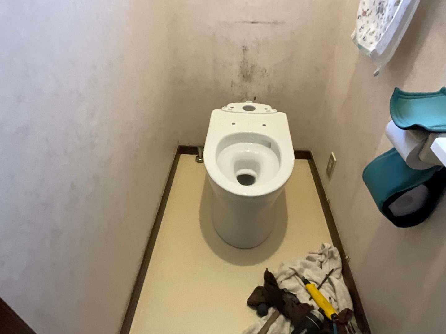 本日は、戸建てトイレ器具交換・床貼り換え作業です。