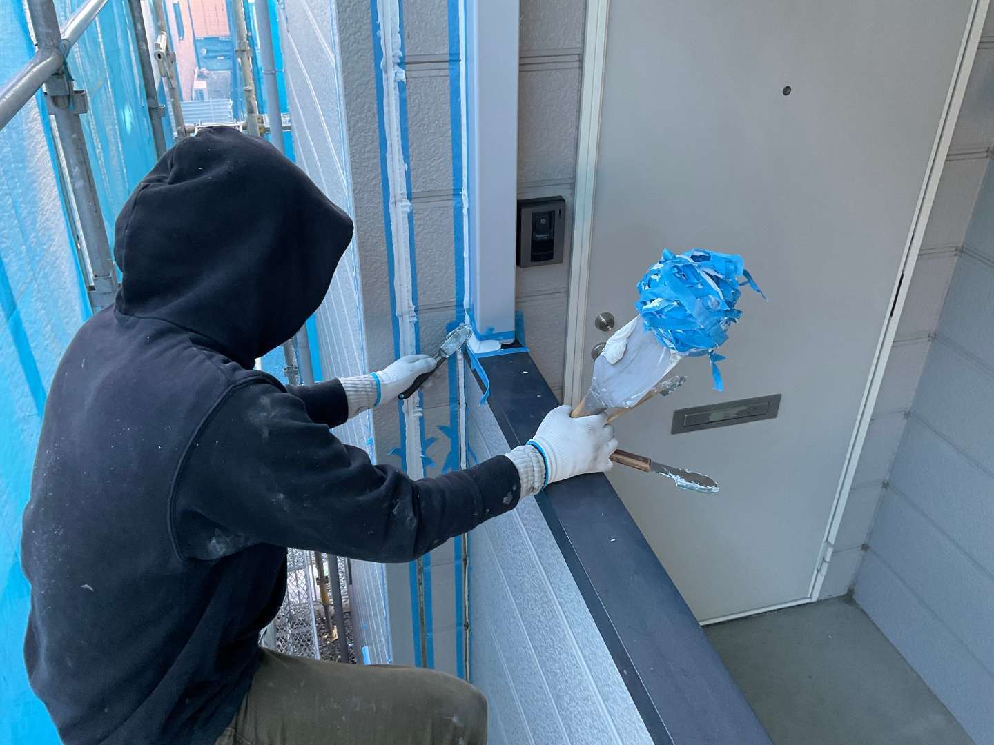 シーリング打ち箇所マスキングテープ貼り