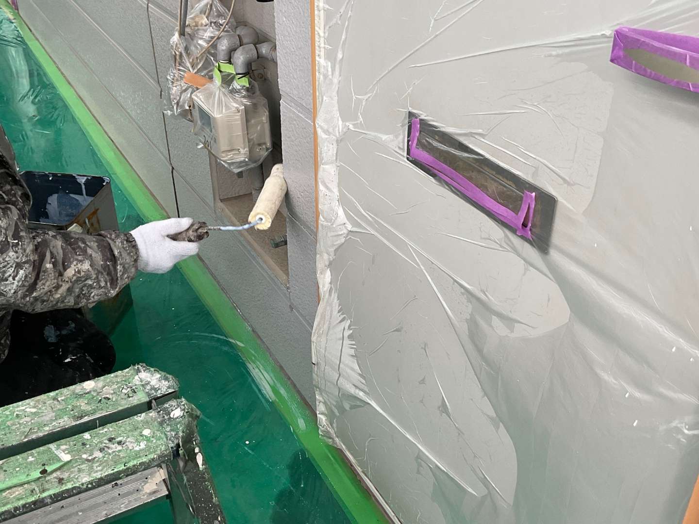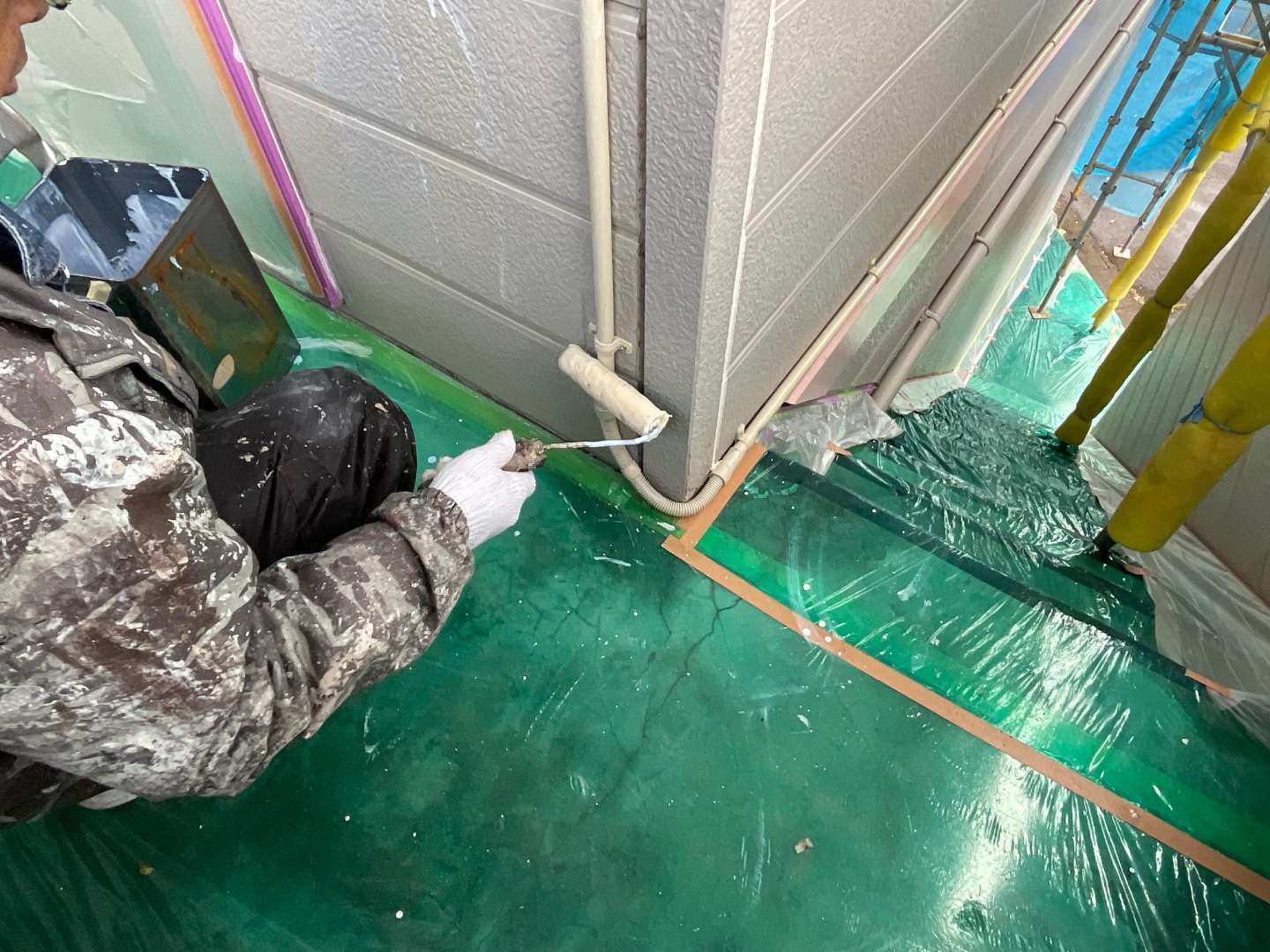 アパート養生作業