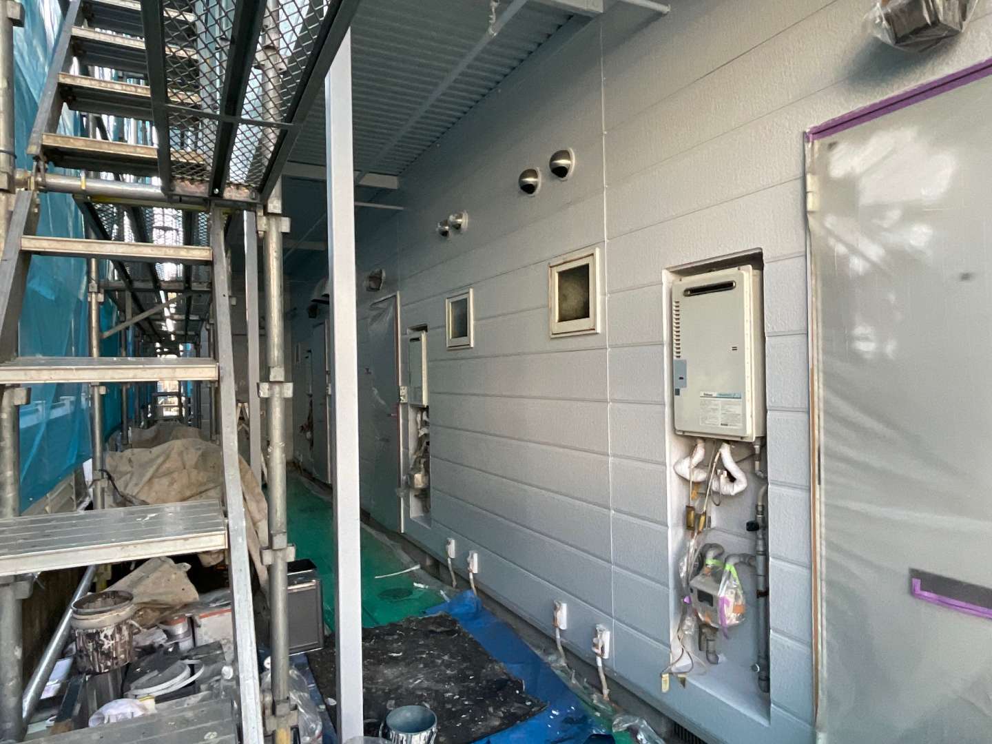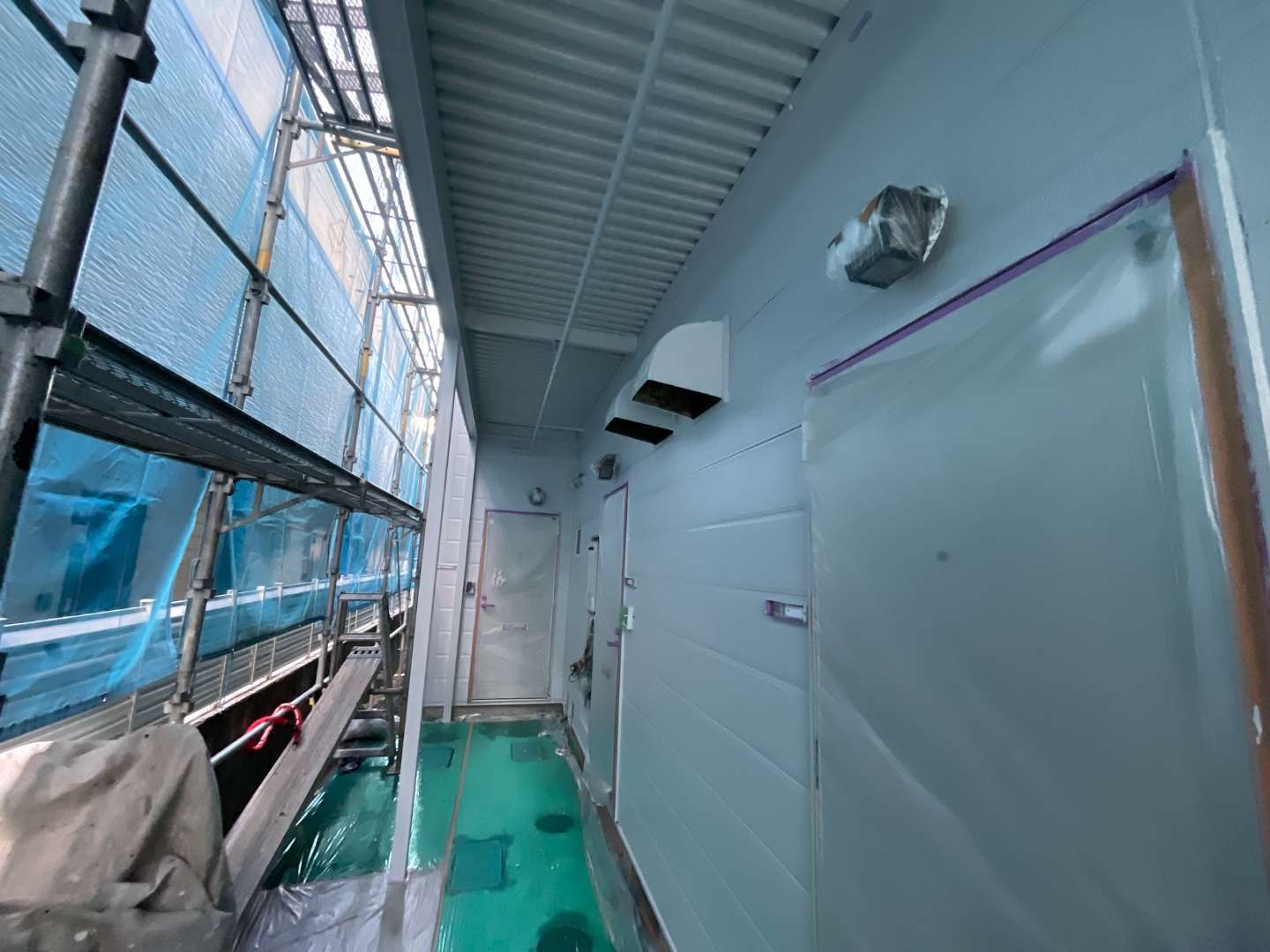 本日は、塗装・養生剥がし・バルコニー防水作業です。