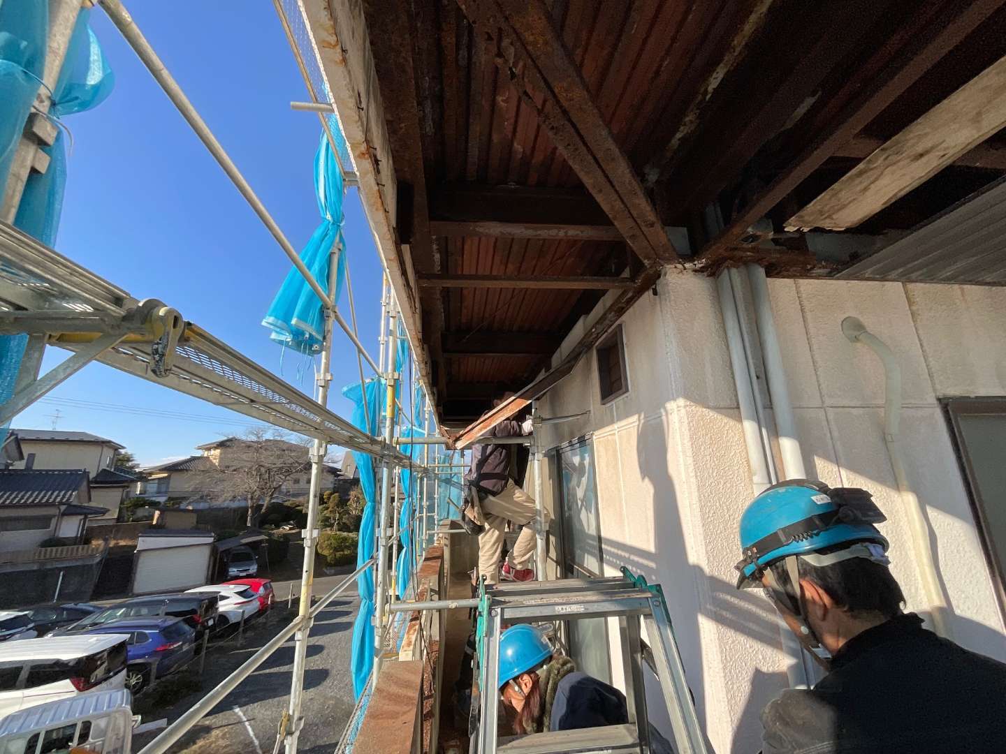 既存軒天材解体作業