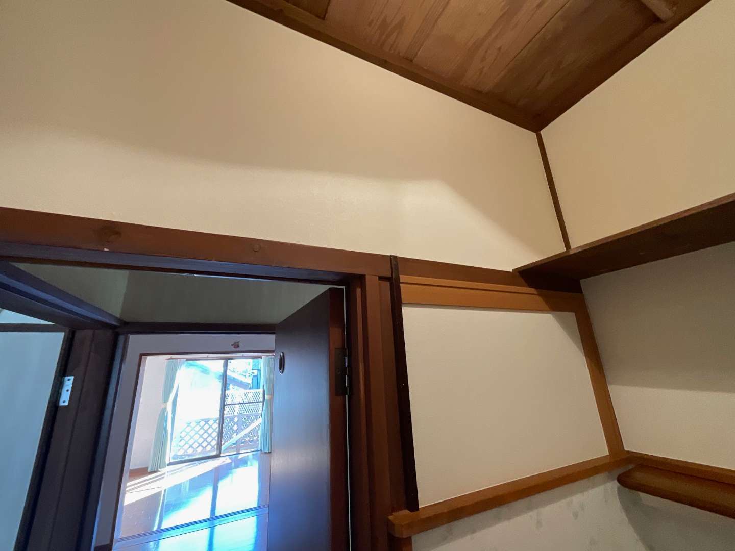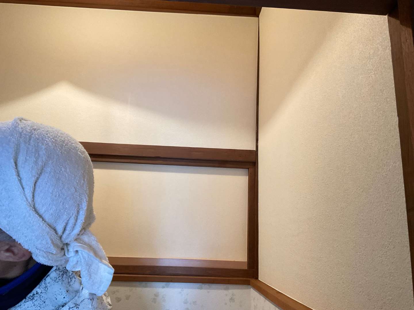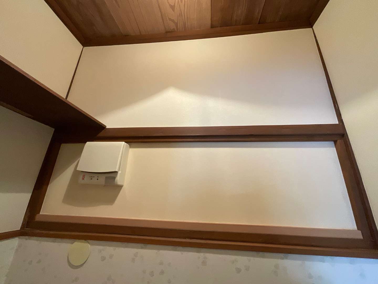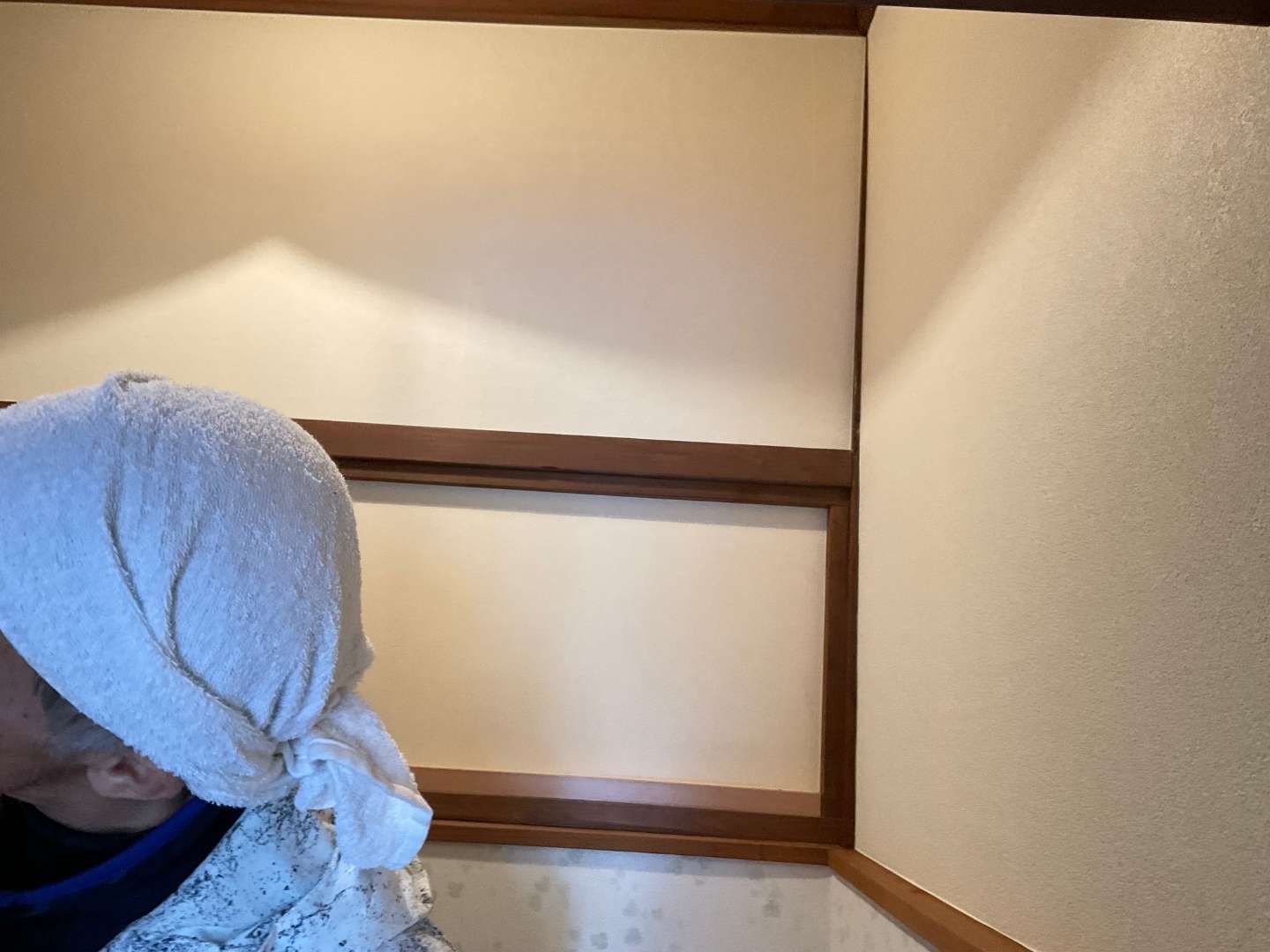 本日は、トイレ壁・洋室天井クロス材貼り作業です。