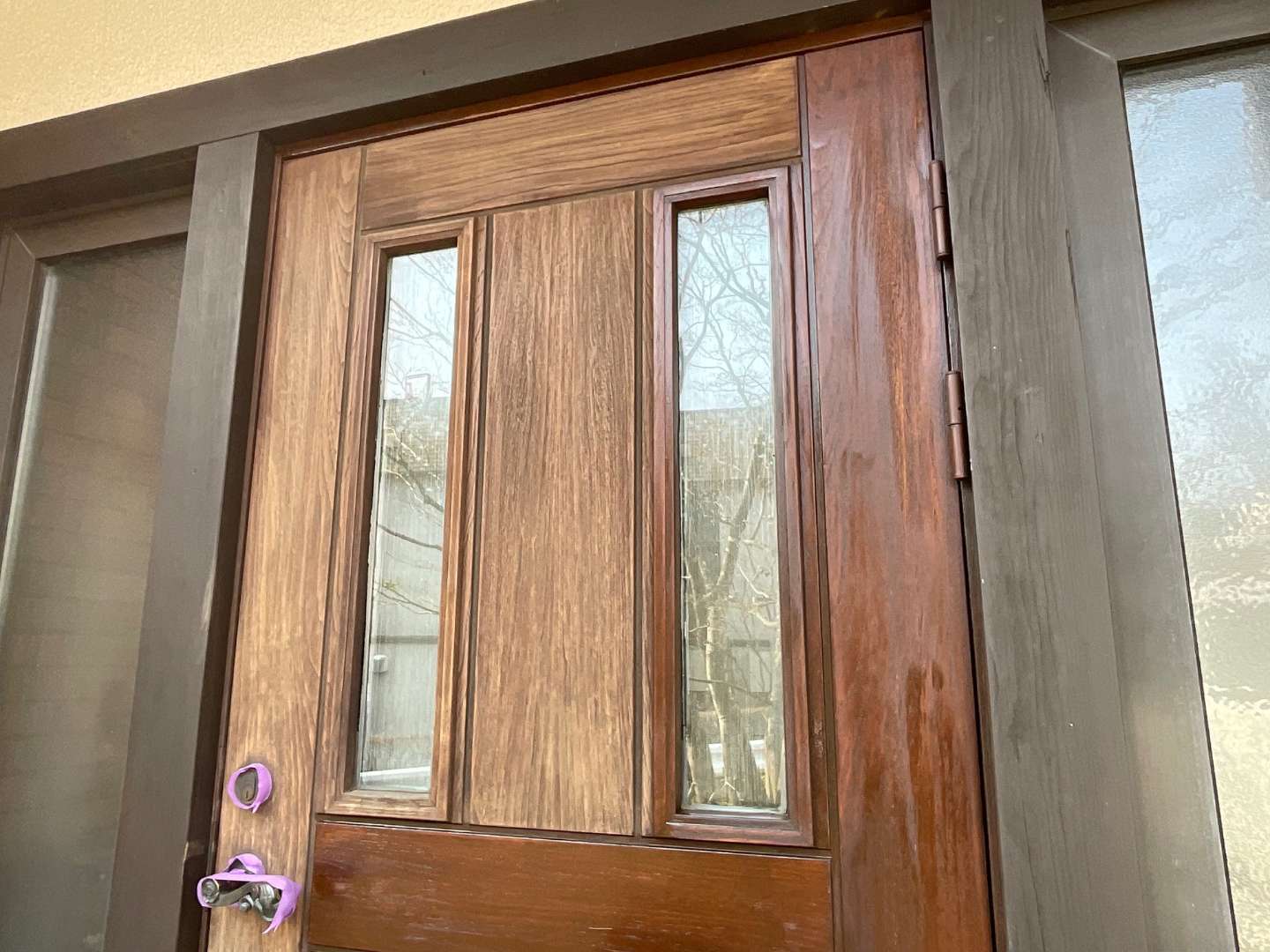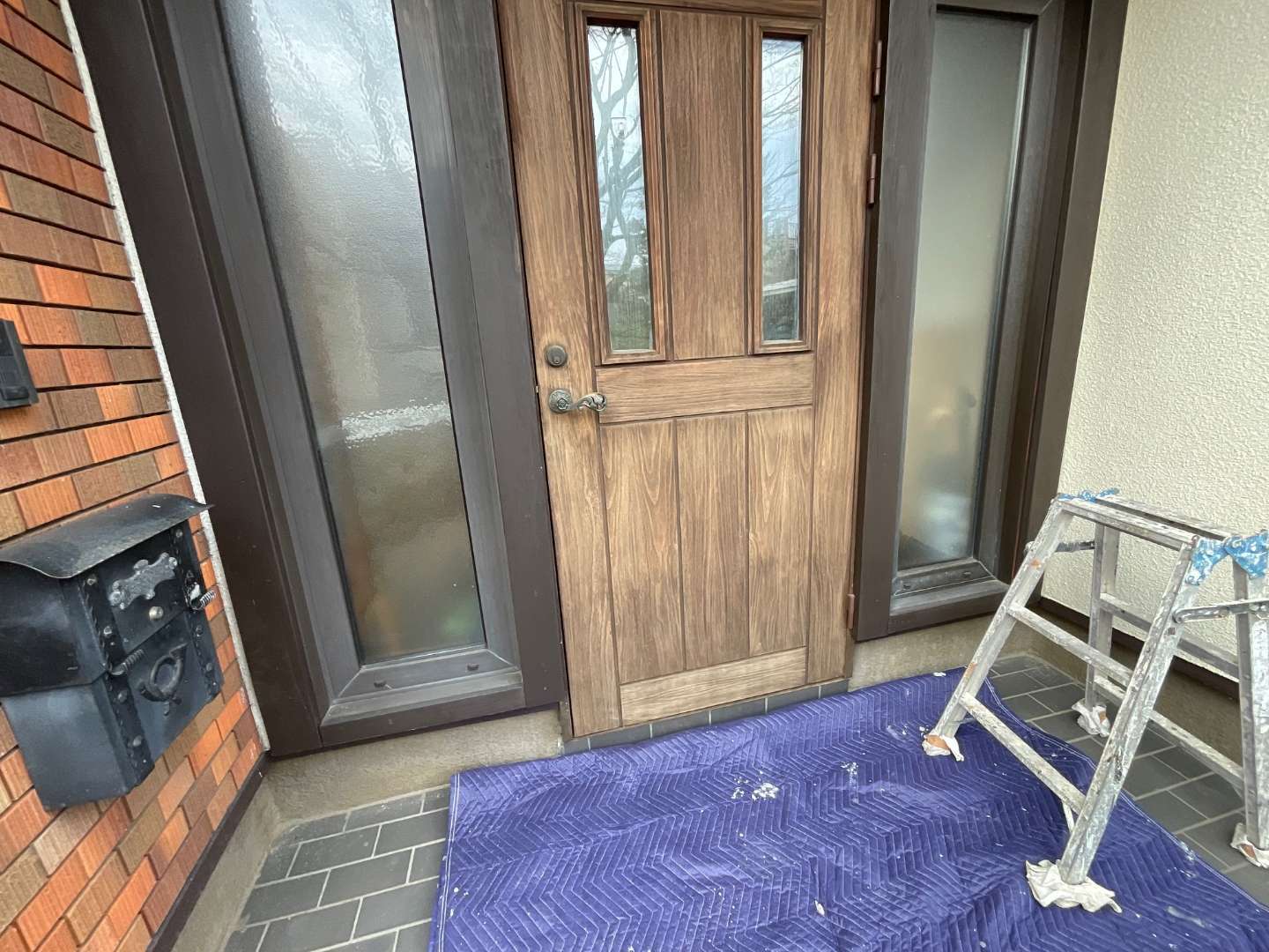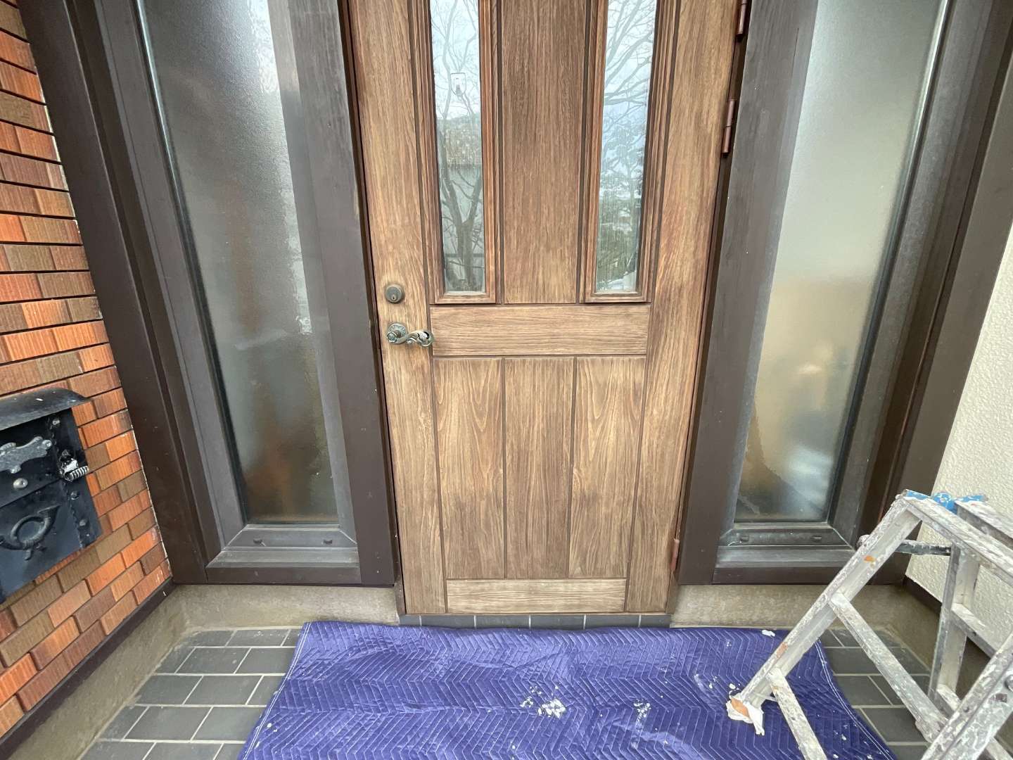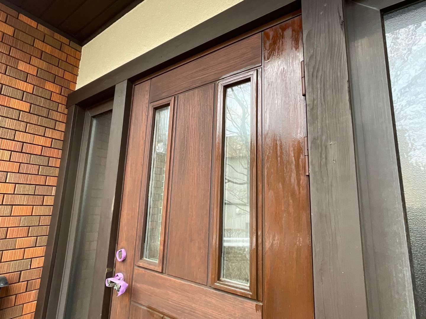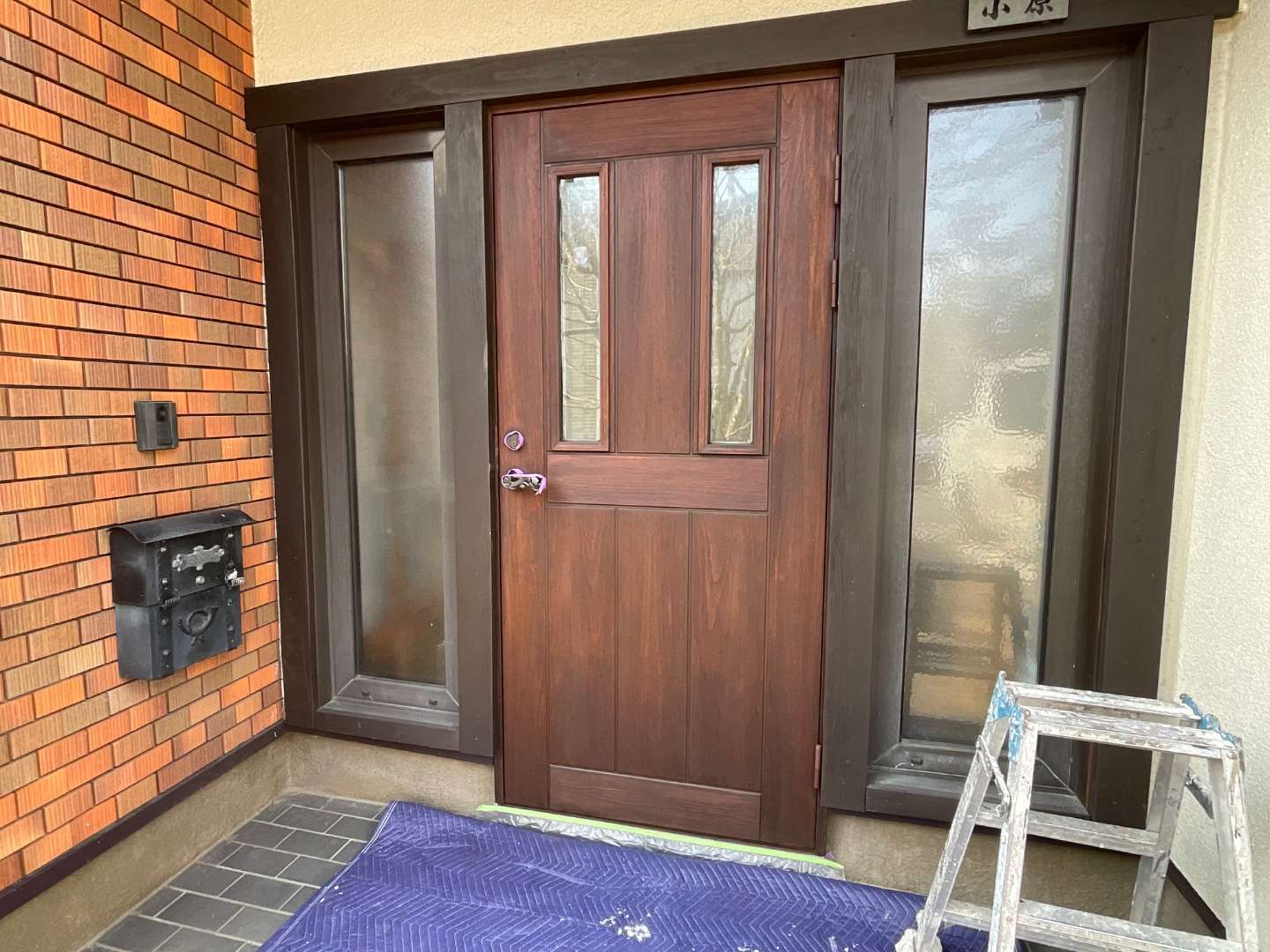 玄関ドア塗装作業完了です。
