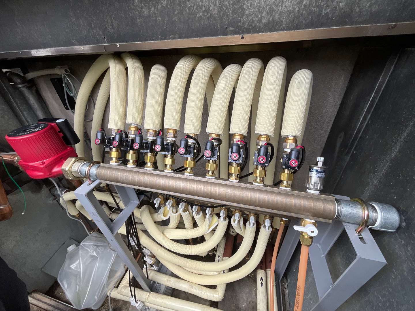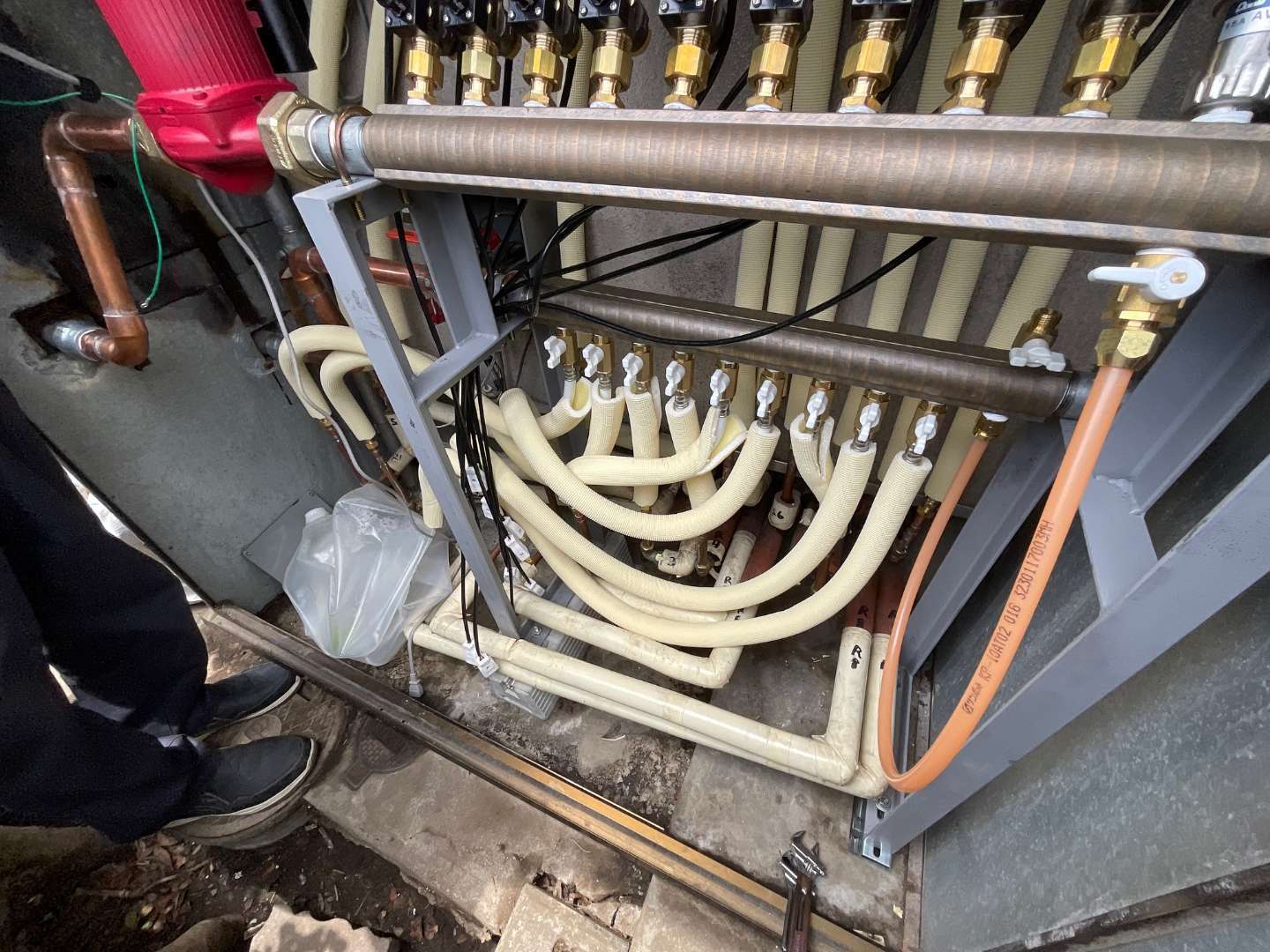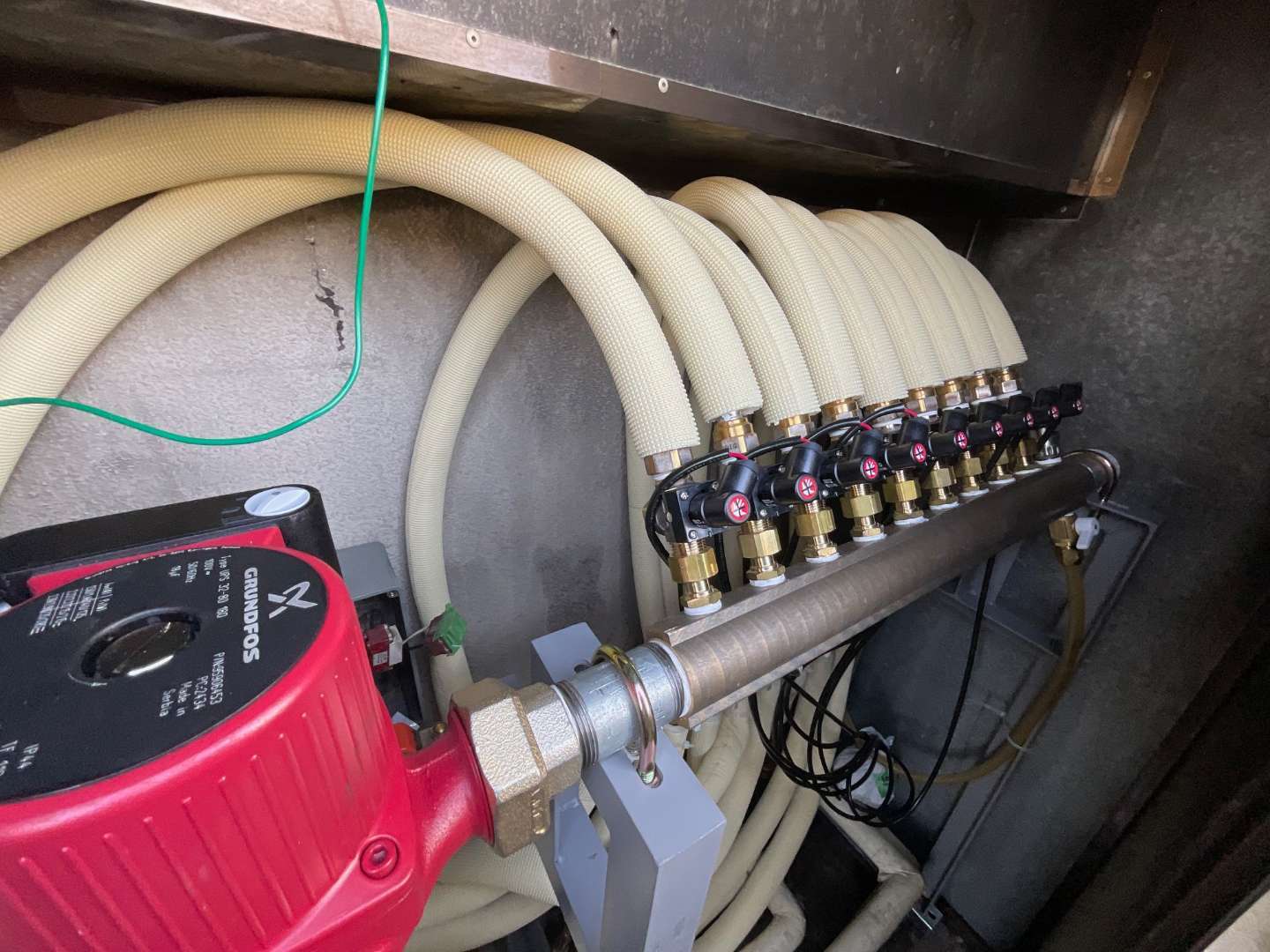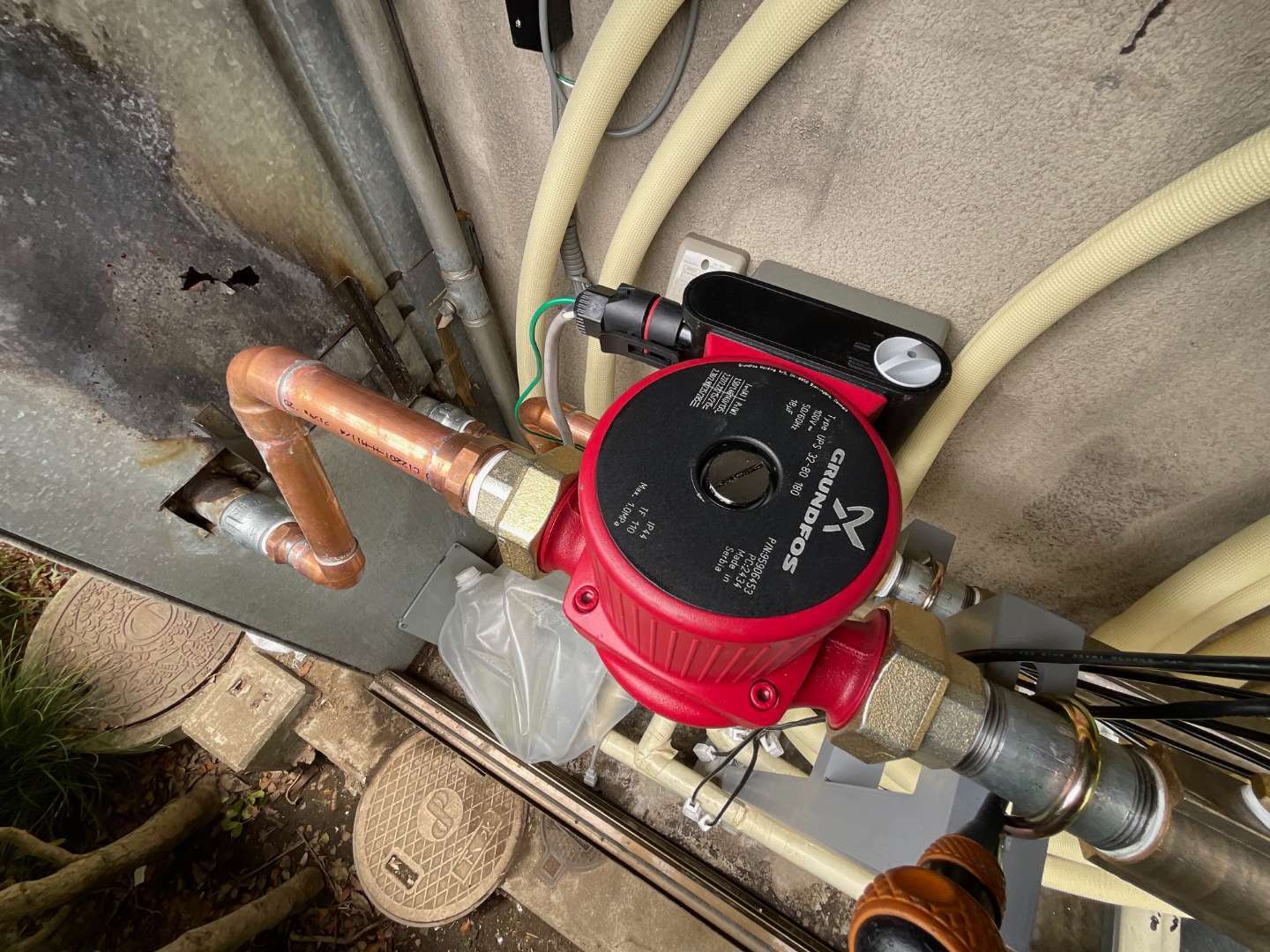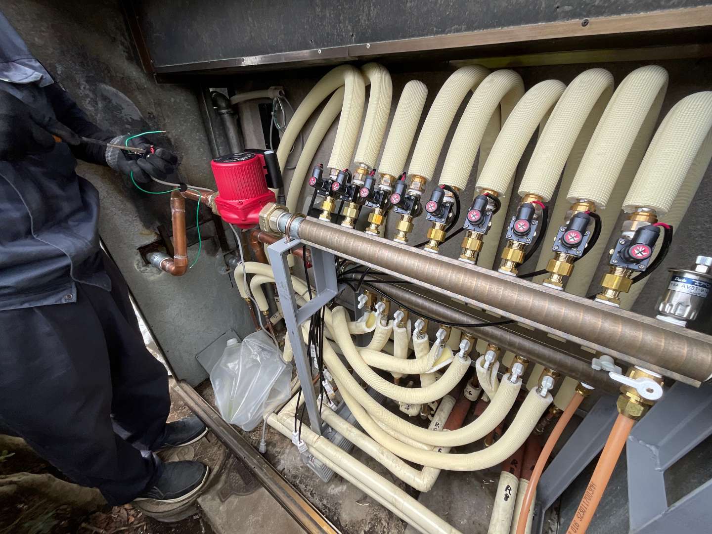 本日は、床暖房配管・ポンプ接続 不凍液交換作業です。