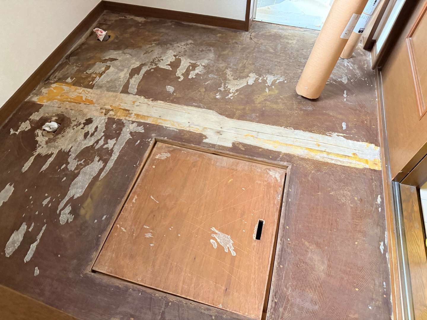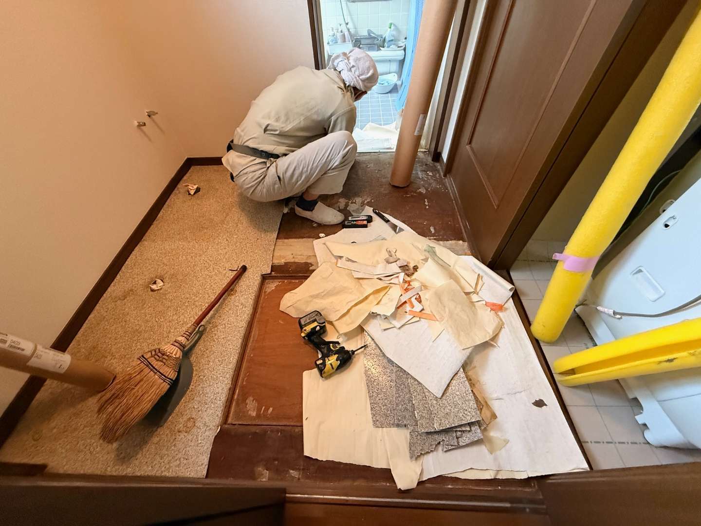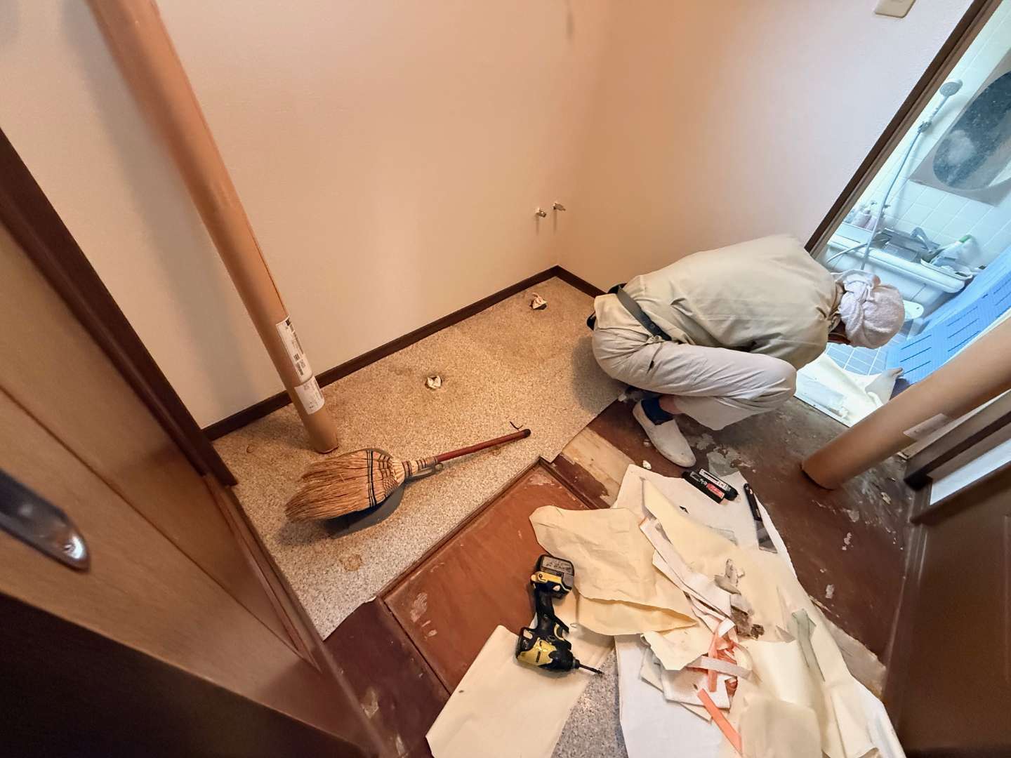 本日の作業は、洗面所・トイレ床CF貼り替え作業です。