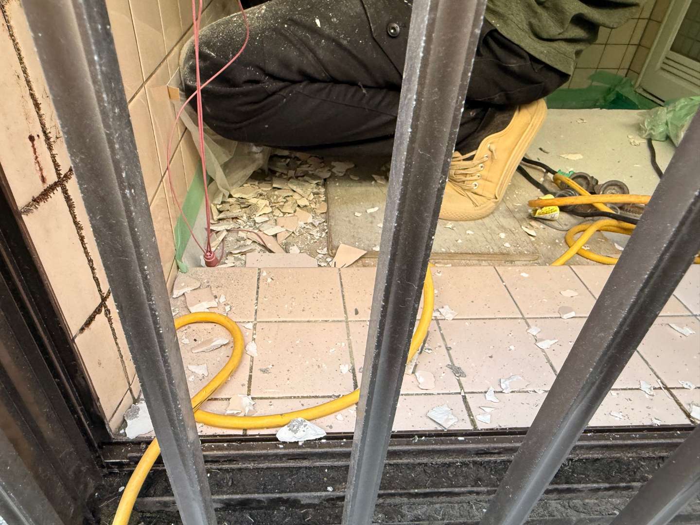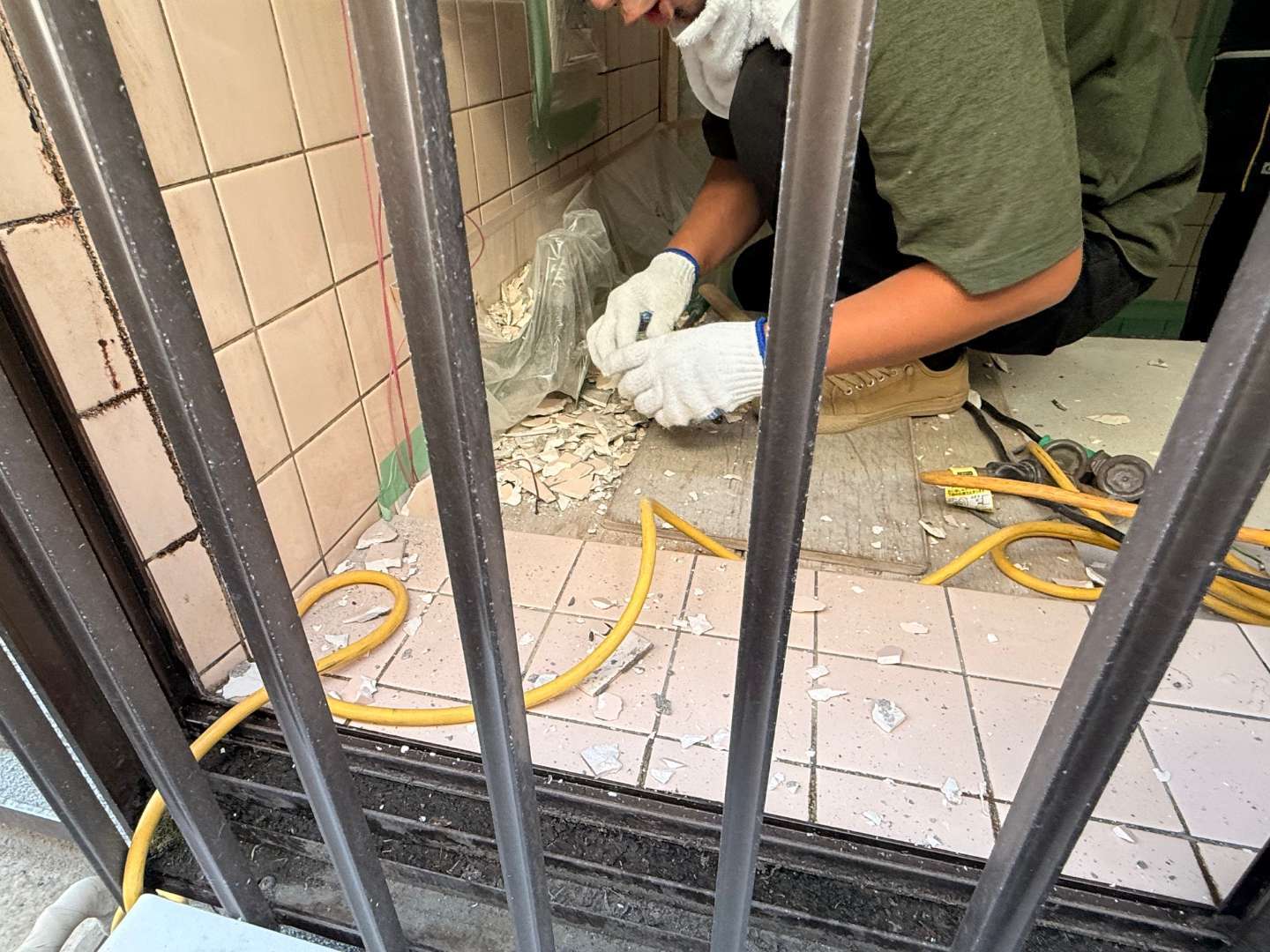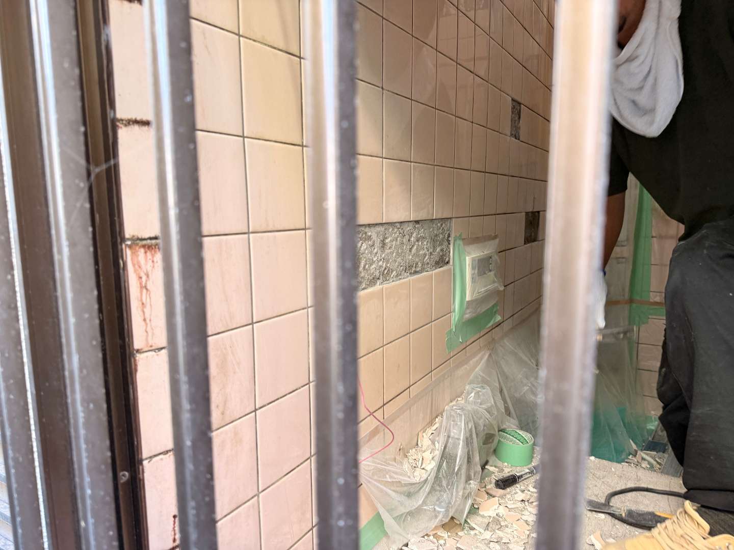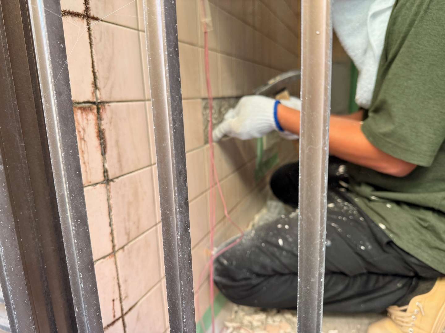 本日は、浴室壁タイル亀裂カ所貼り替え作業です。
