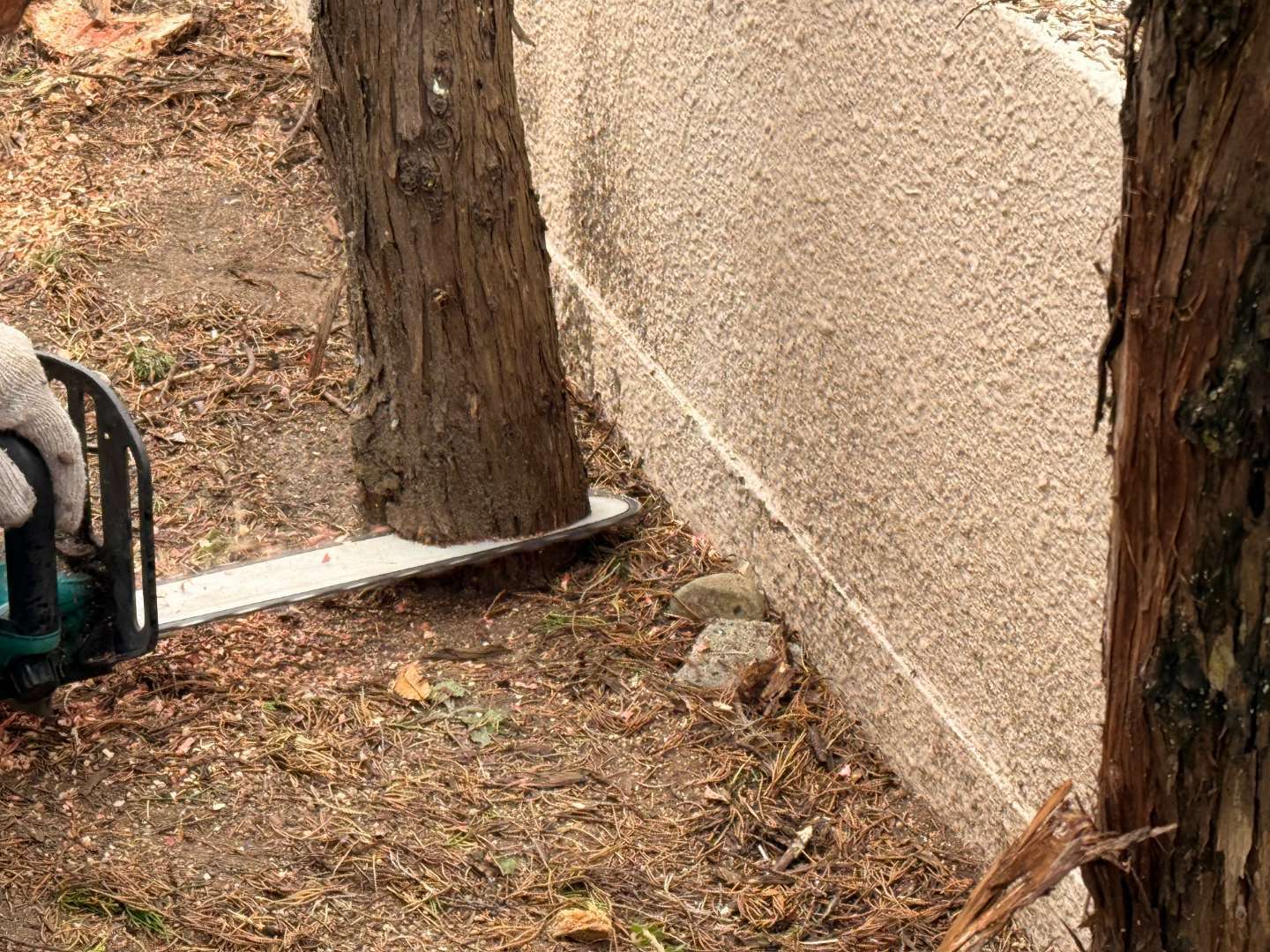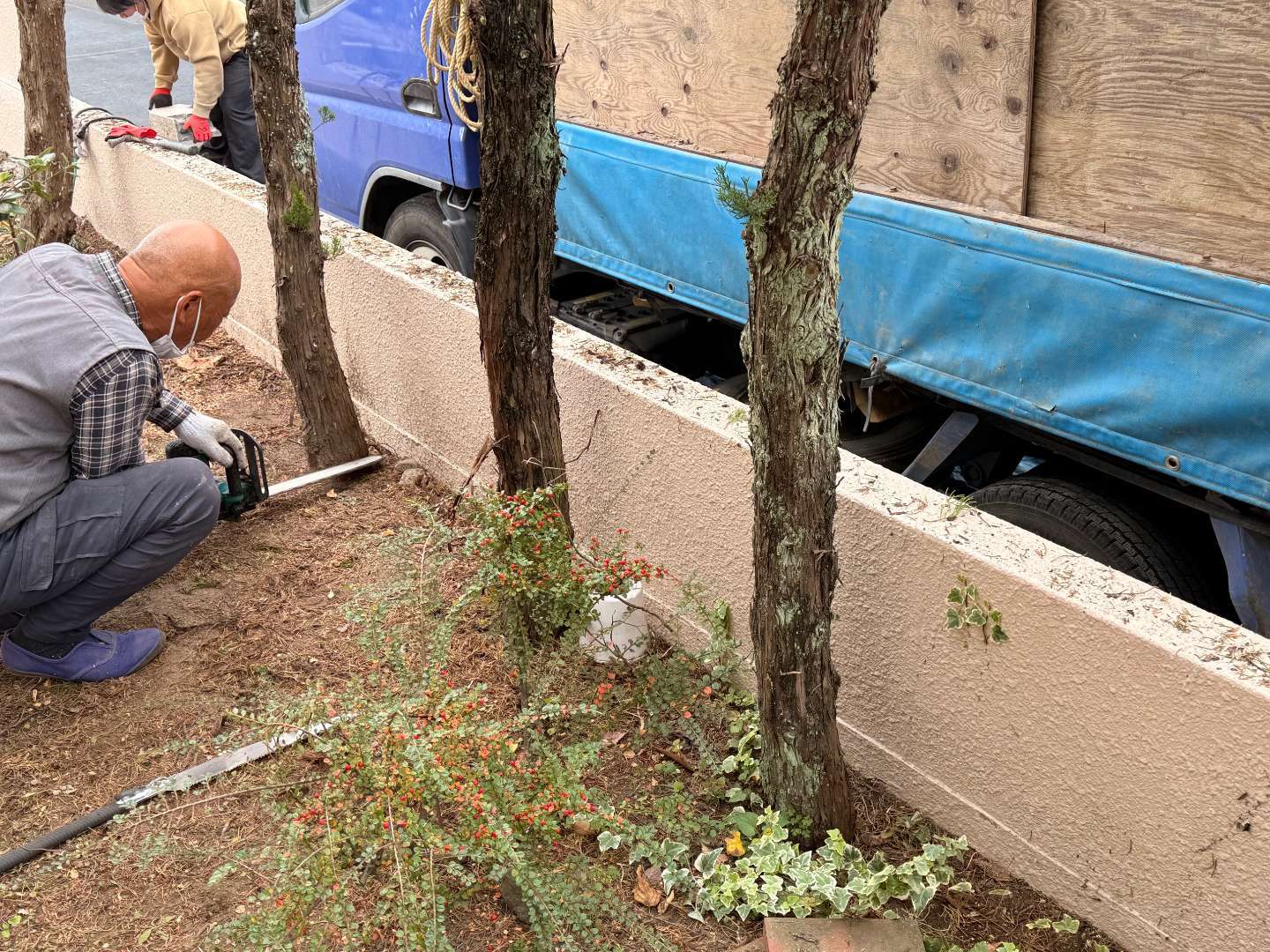 庭の樹木伐採作業
