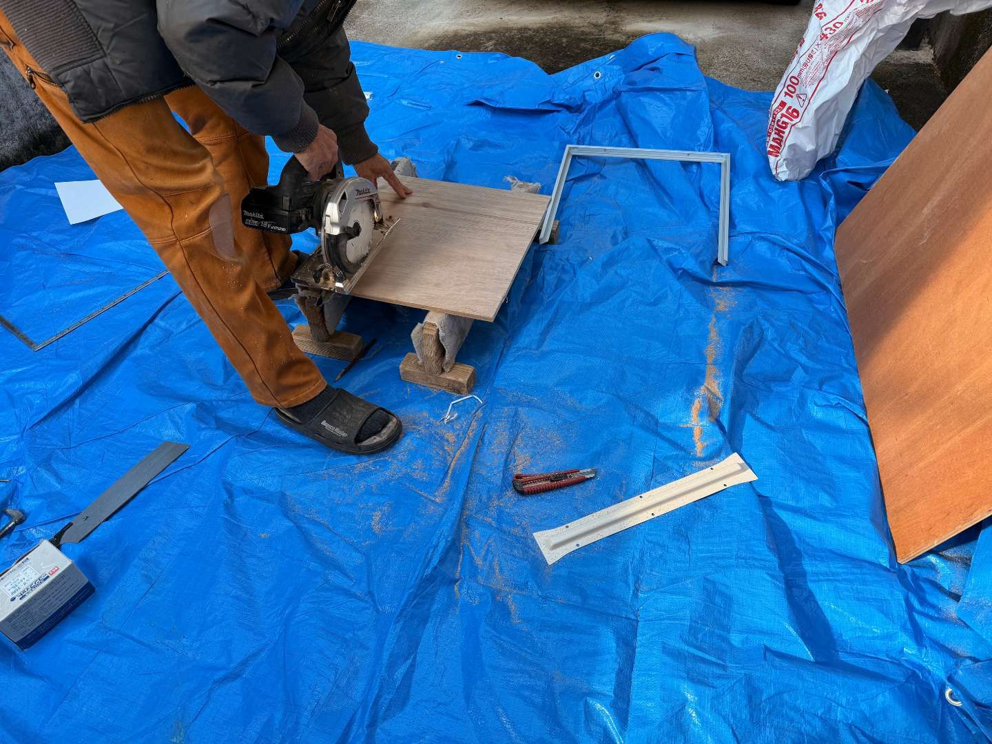 枠ビス止め作業