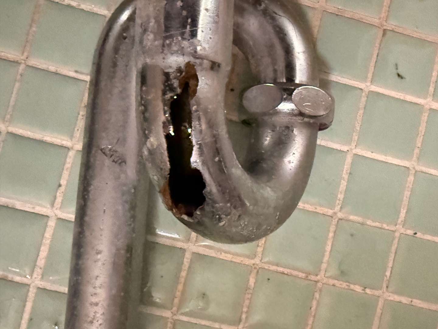 配管に穴が開いております。