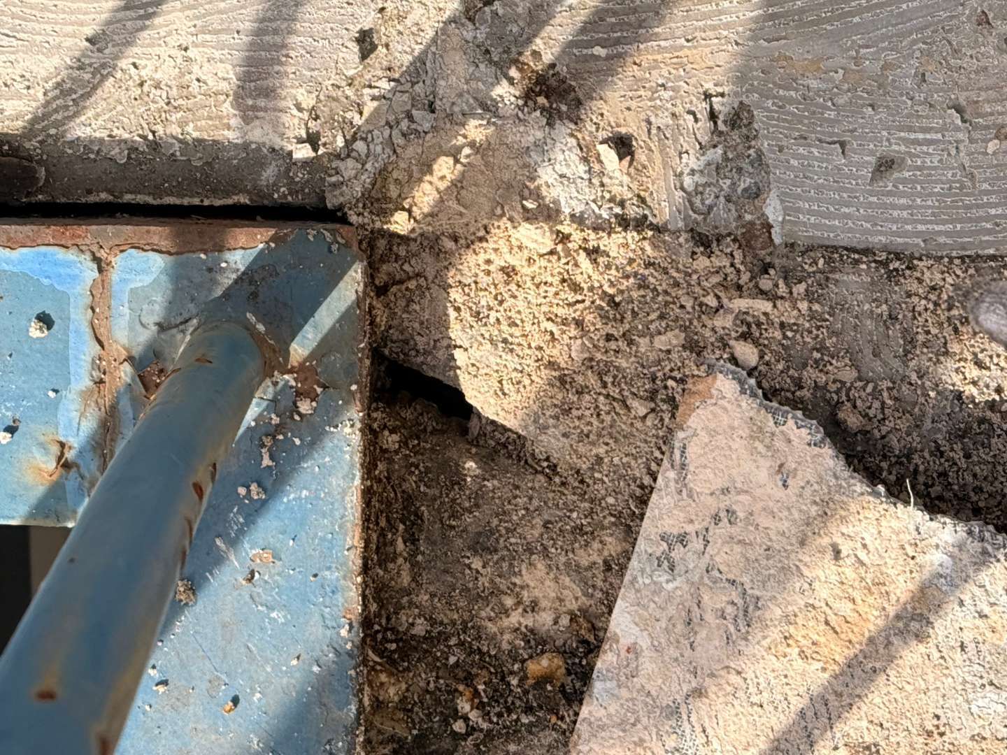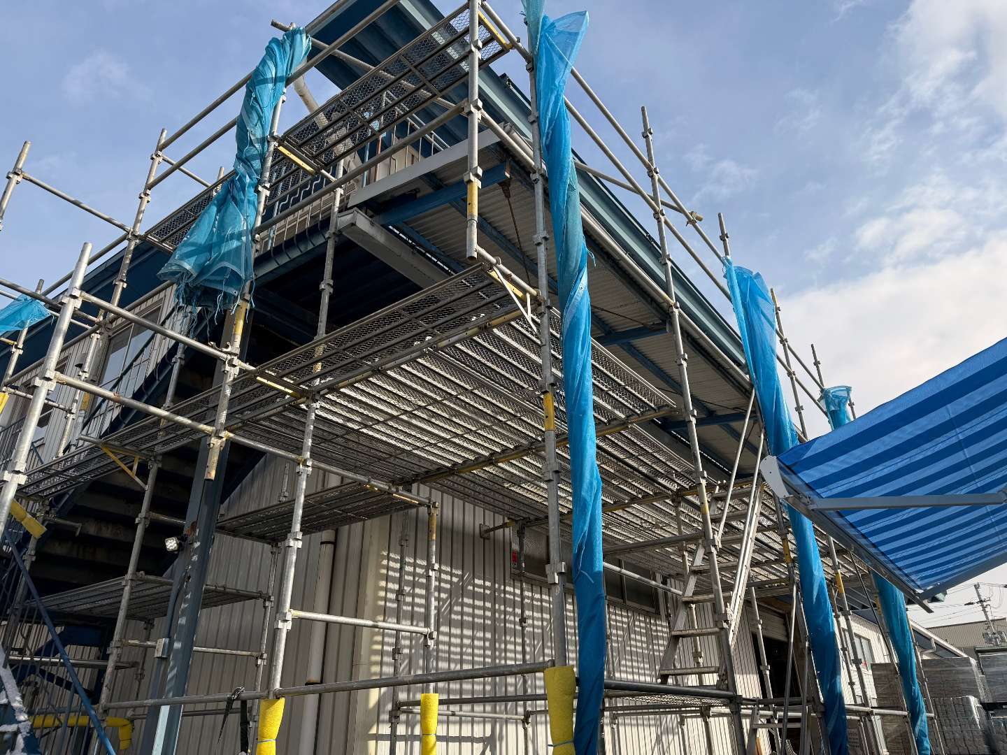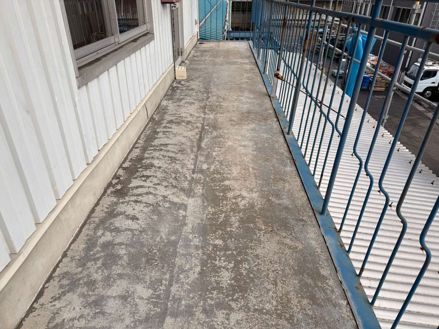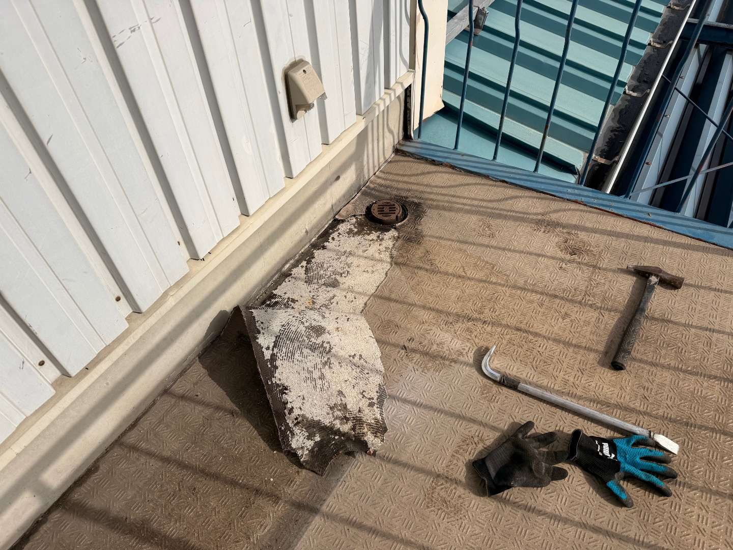 本日は、既存鉄骨階段 長尺シート撤去作業です。