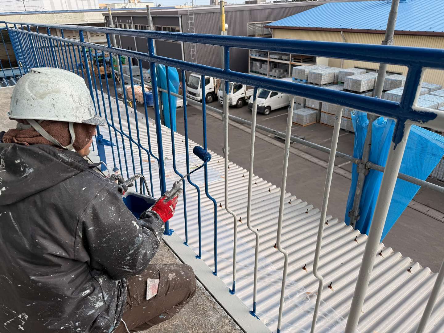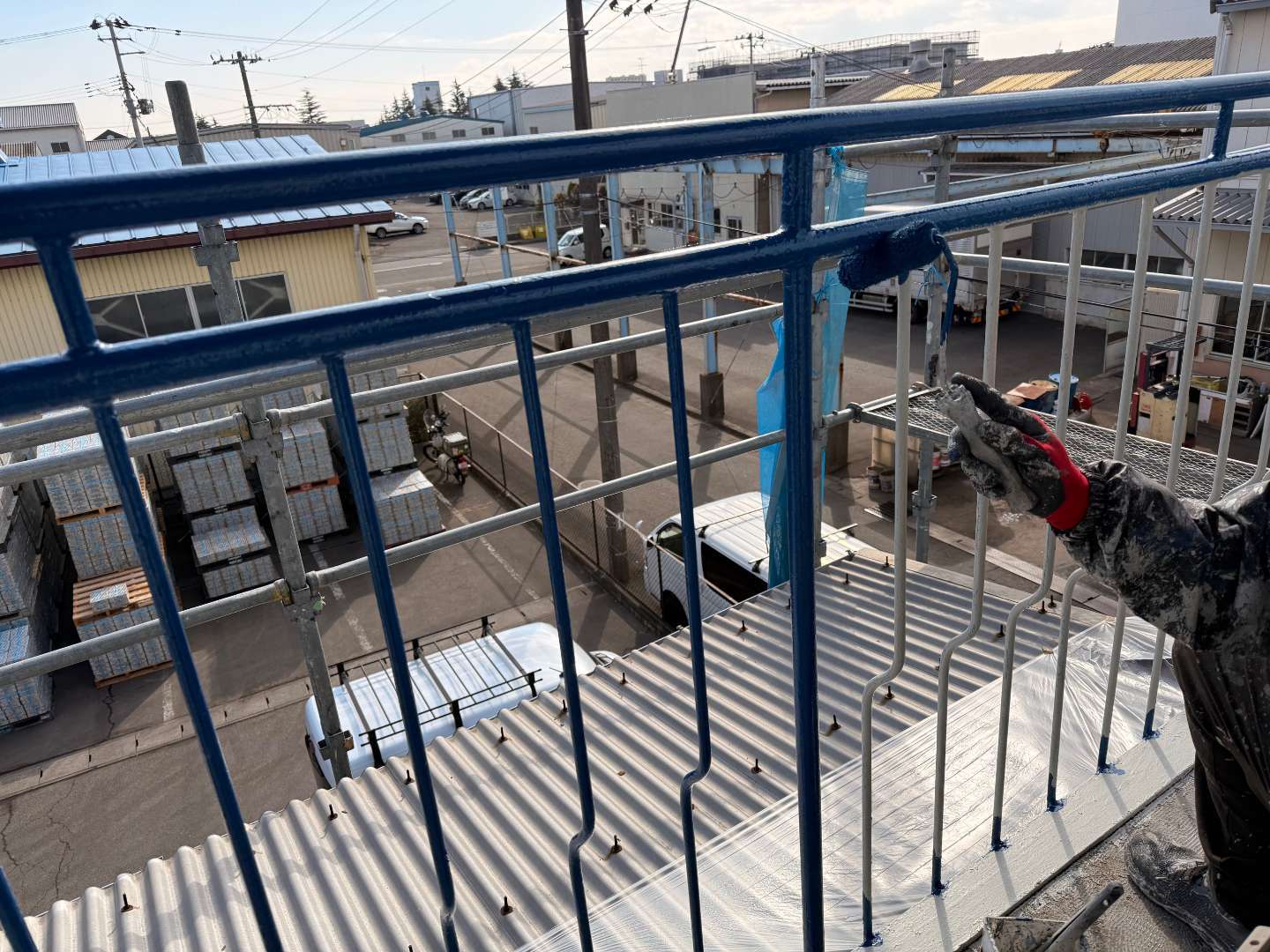 鉄骨手摺中塗り塗装