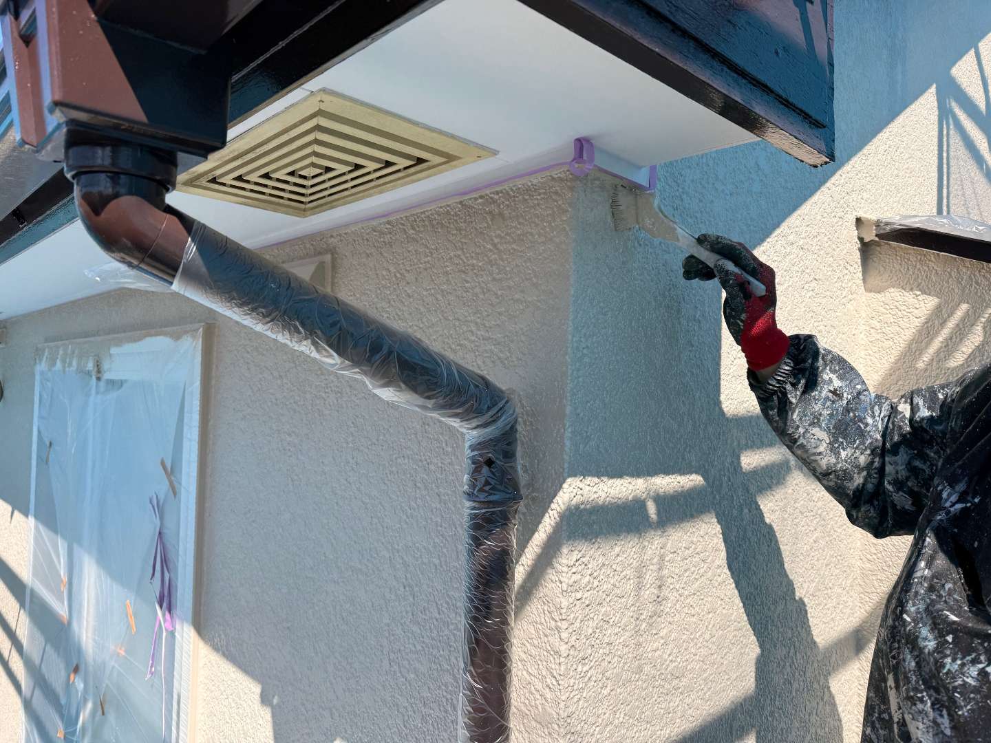 本日は、外壁仕上げ塗装作業です。