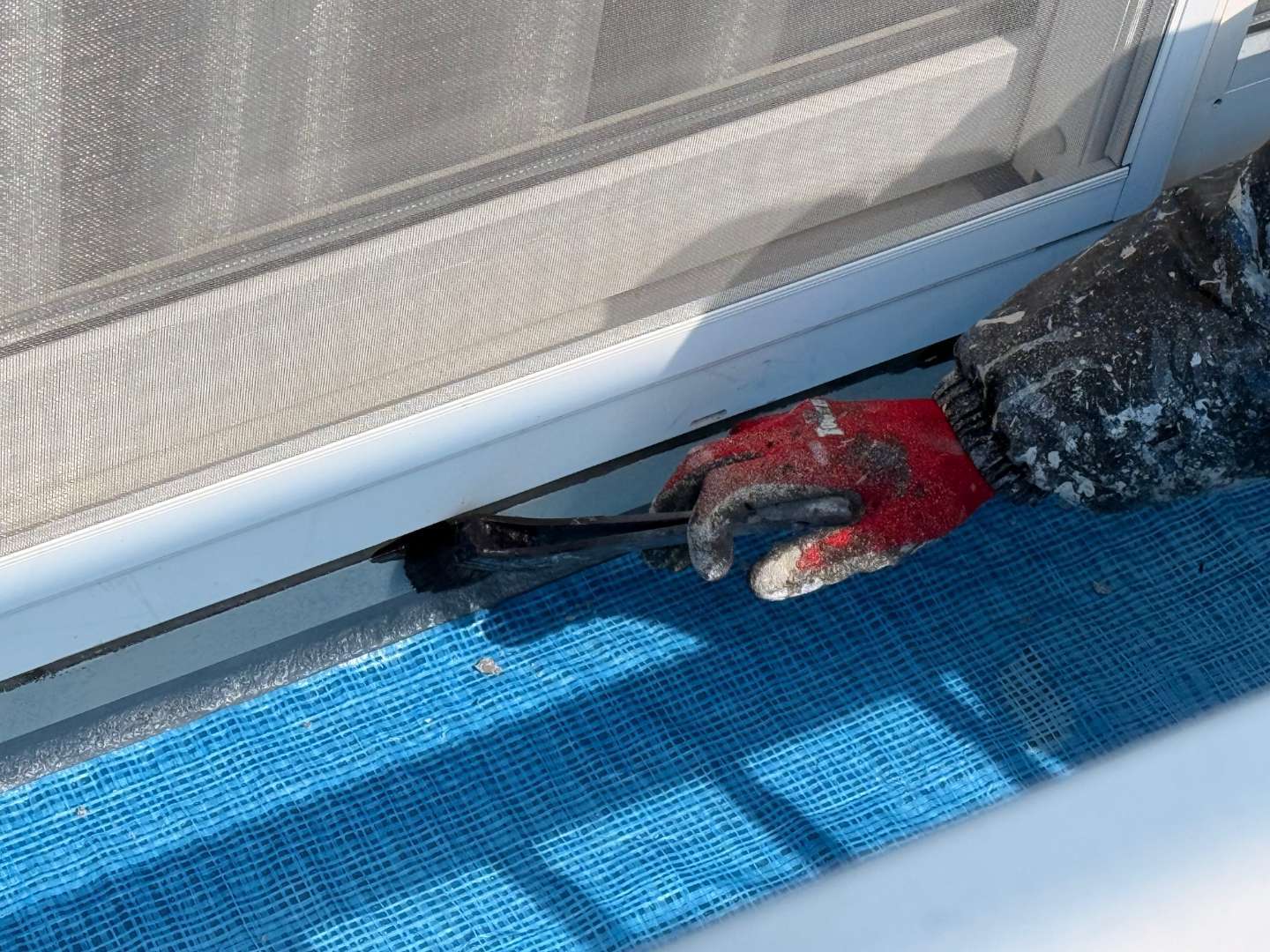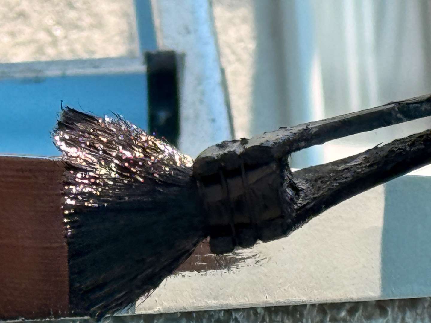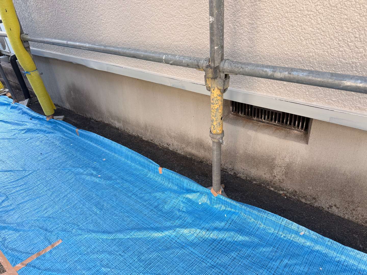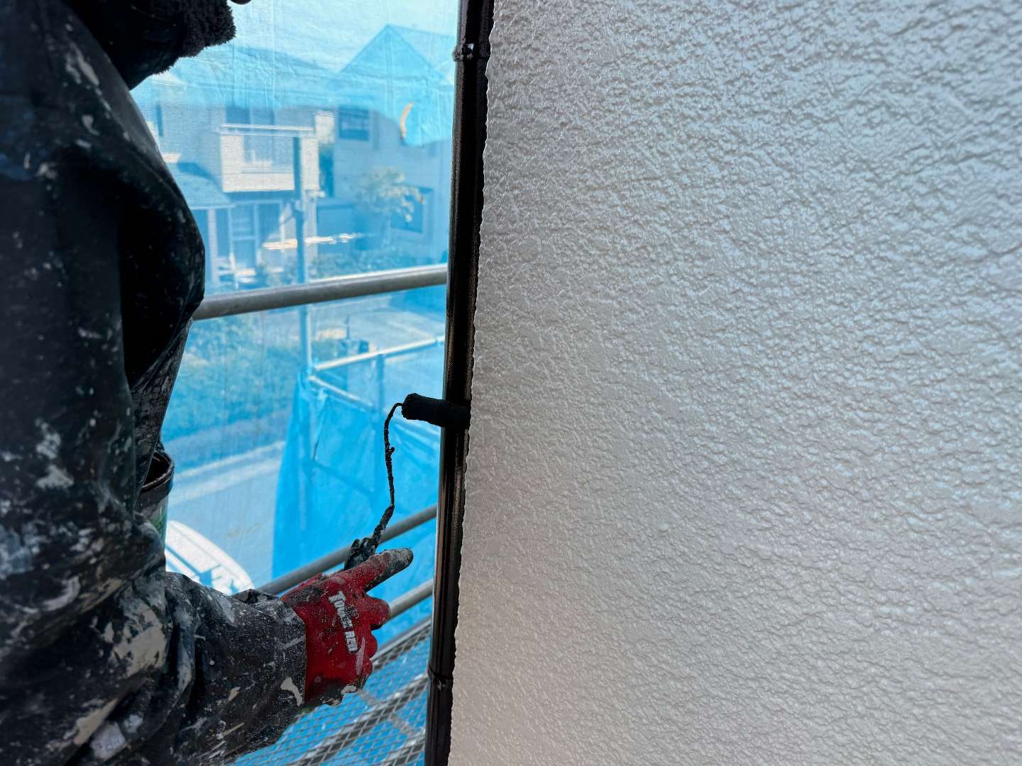 本日は、雨樋仕上げ塗装・バルコニー笠木中塗り・水切り塗装作業