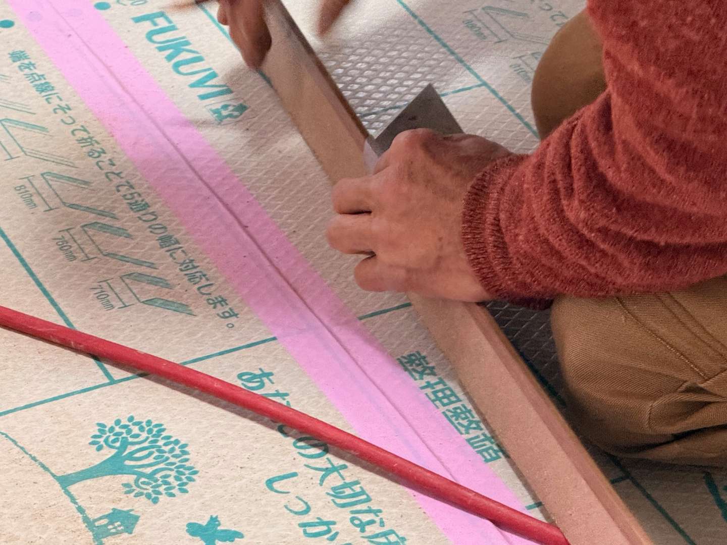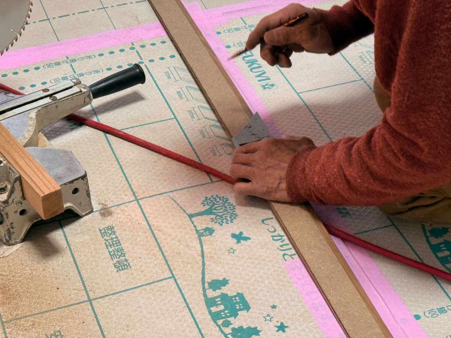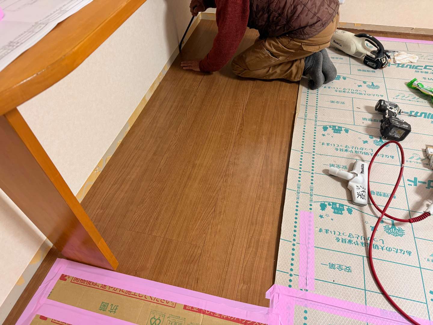 床フローリング貼り作業