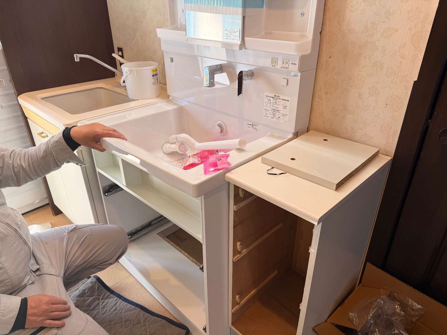 本日は、既存洗面台w750(TOTO製)からTOTOサクアシリーズw750に交換作業です。