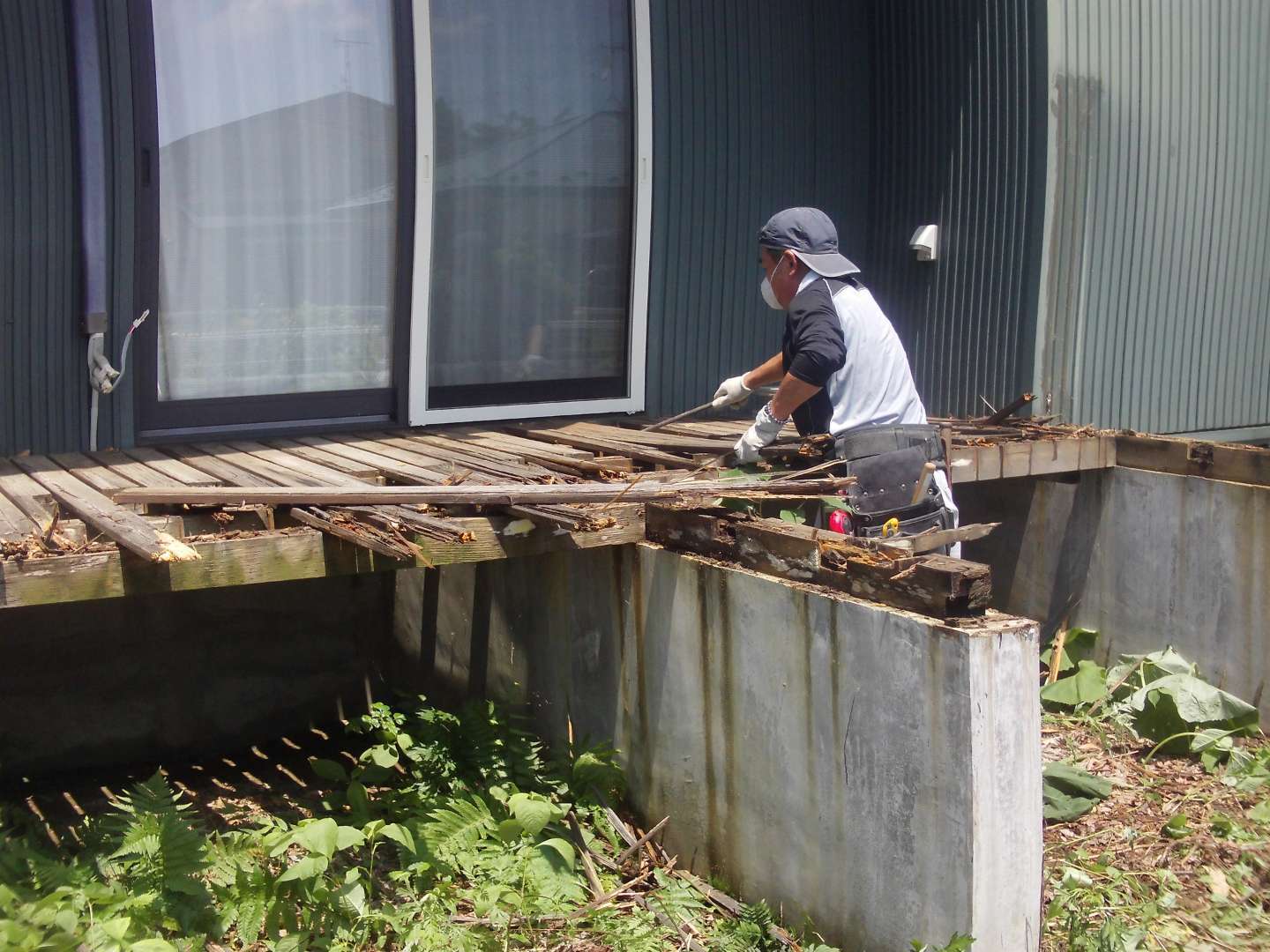 仙台市在中の御客様からの依頼で 蔵王町遠刈田温泉街の別荘宅 既存ウッドデッキ腐食