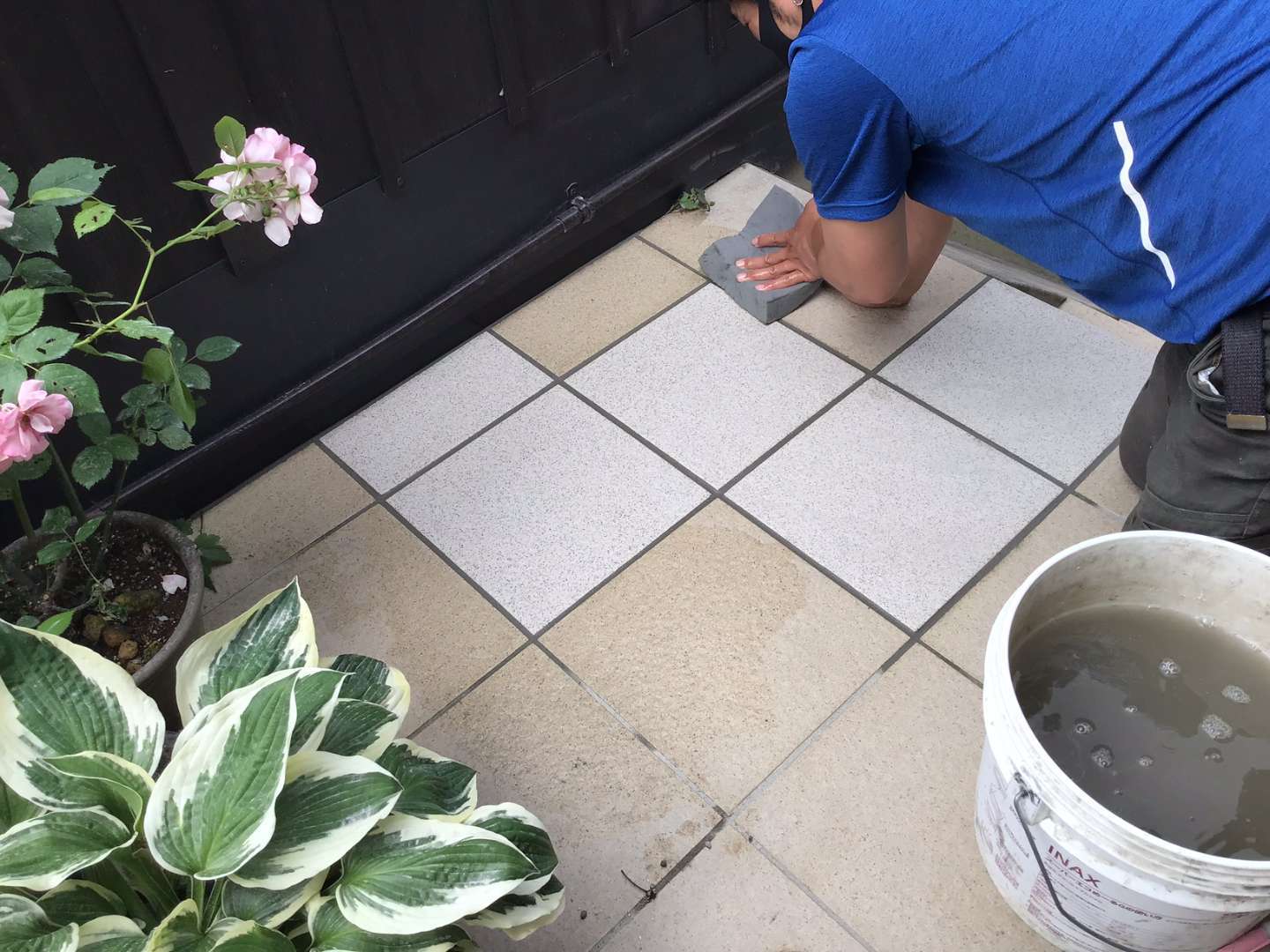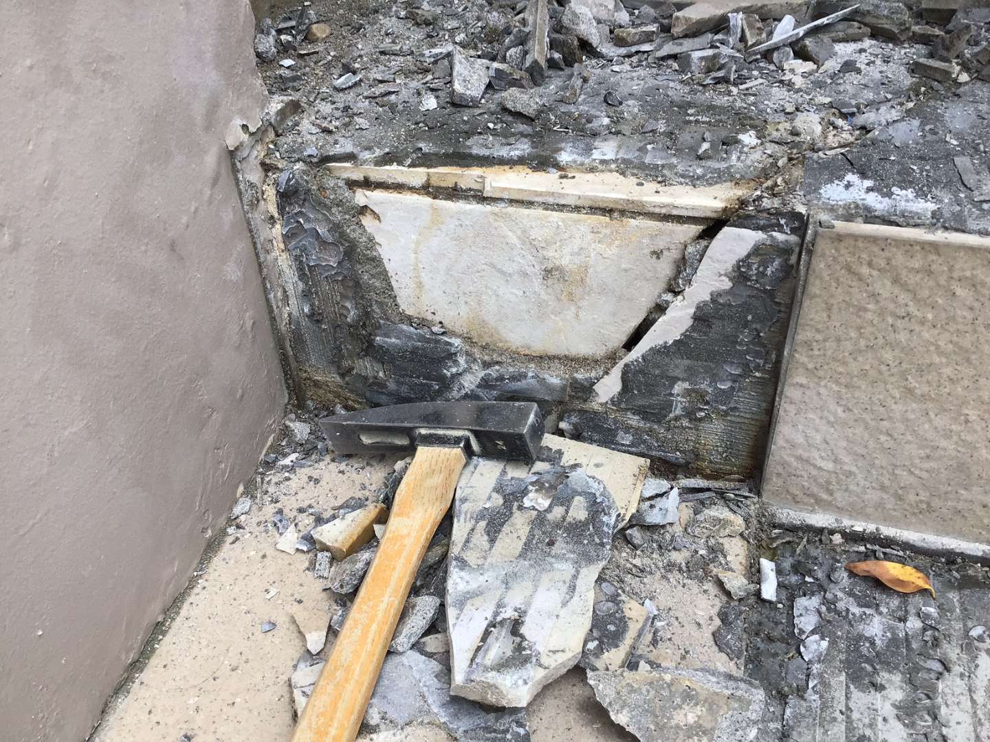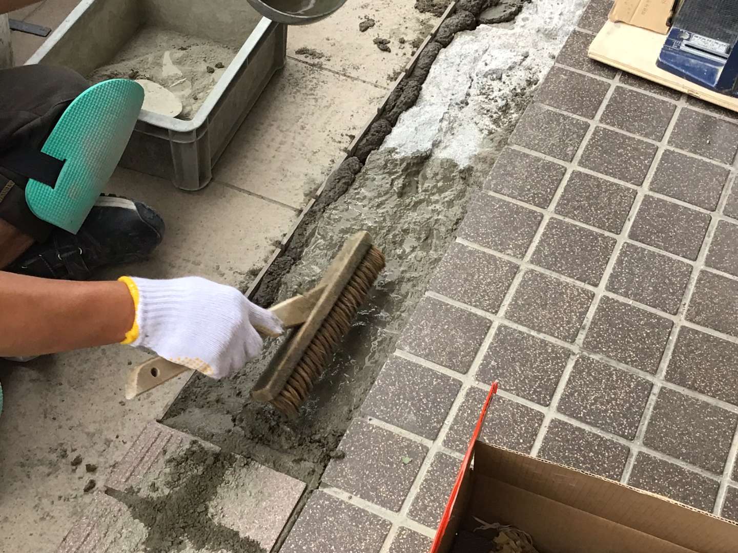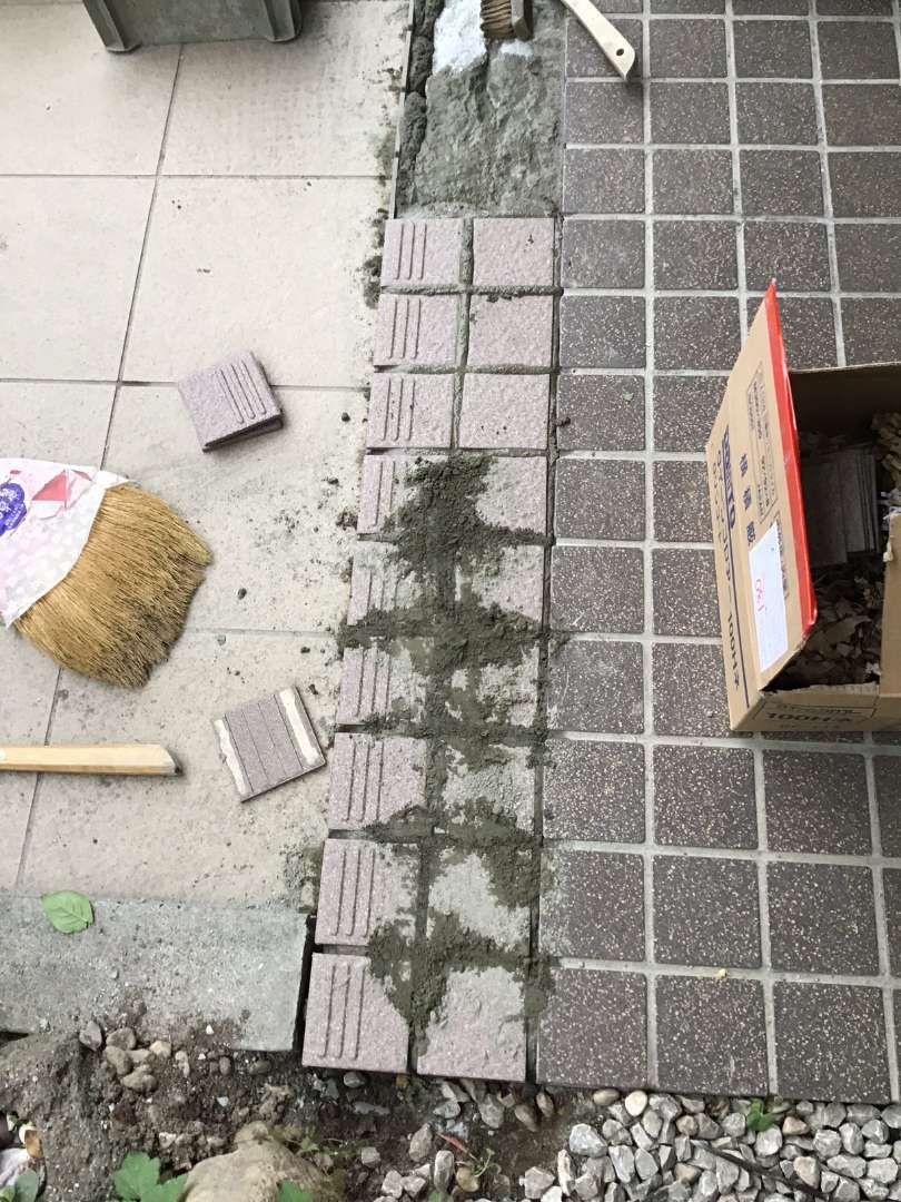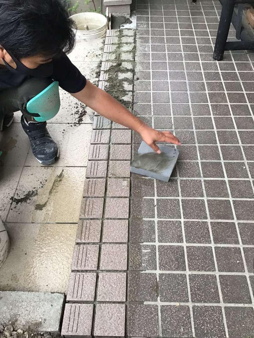 地震での被害で玄関ポーチタイル・階段タイルに亀裂箇所張替えです。