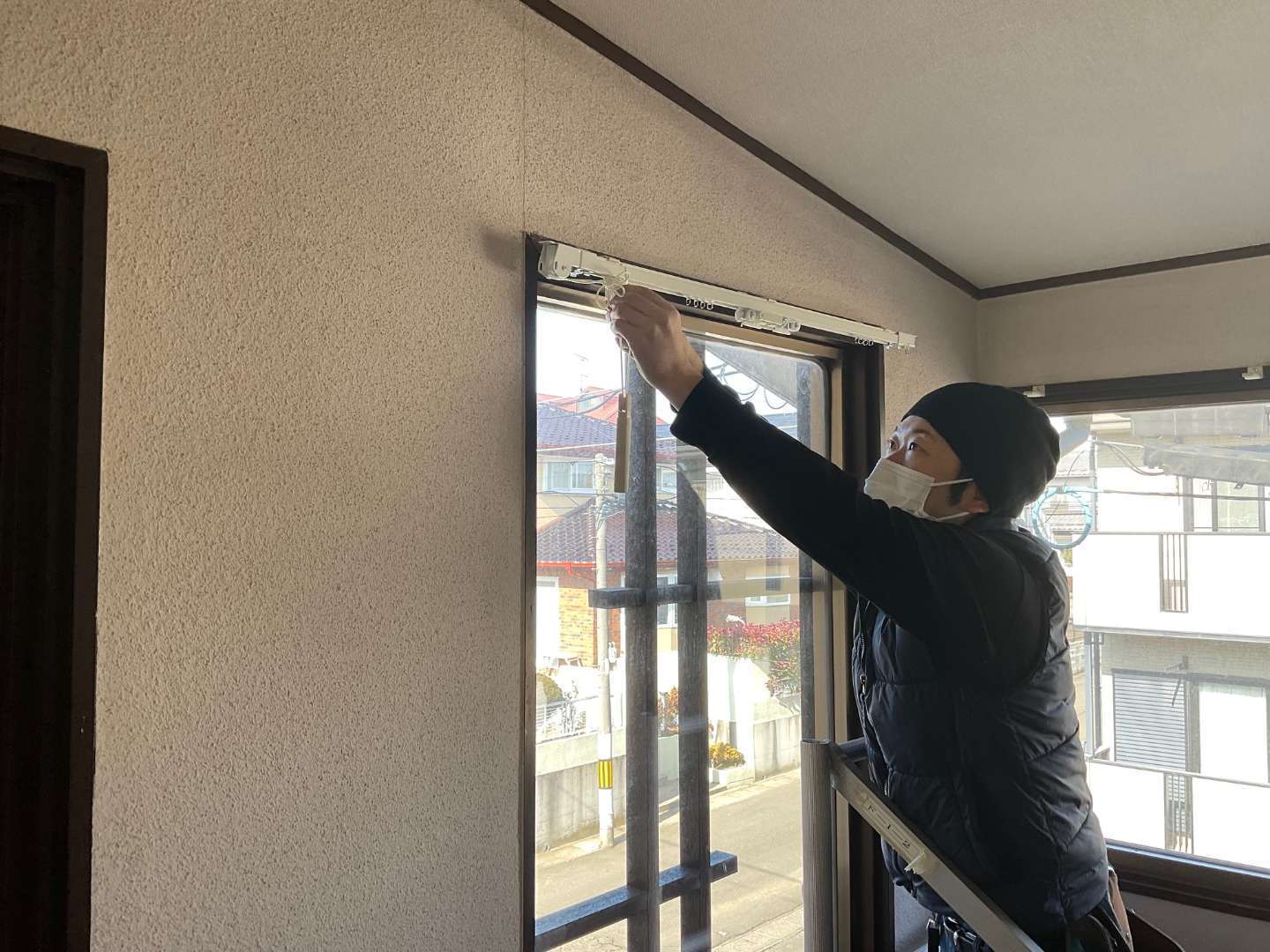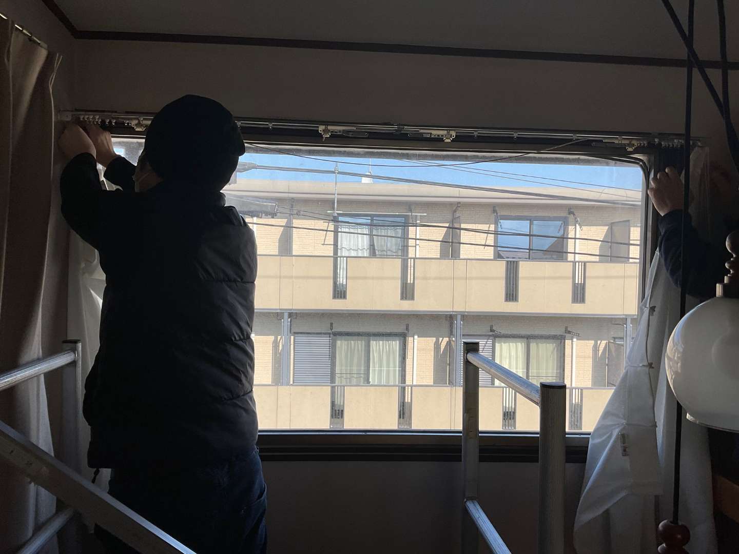 仮設足場・カーテンレール交換