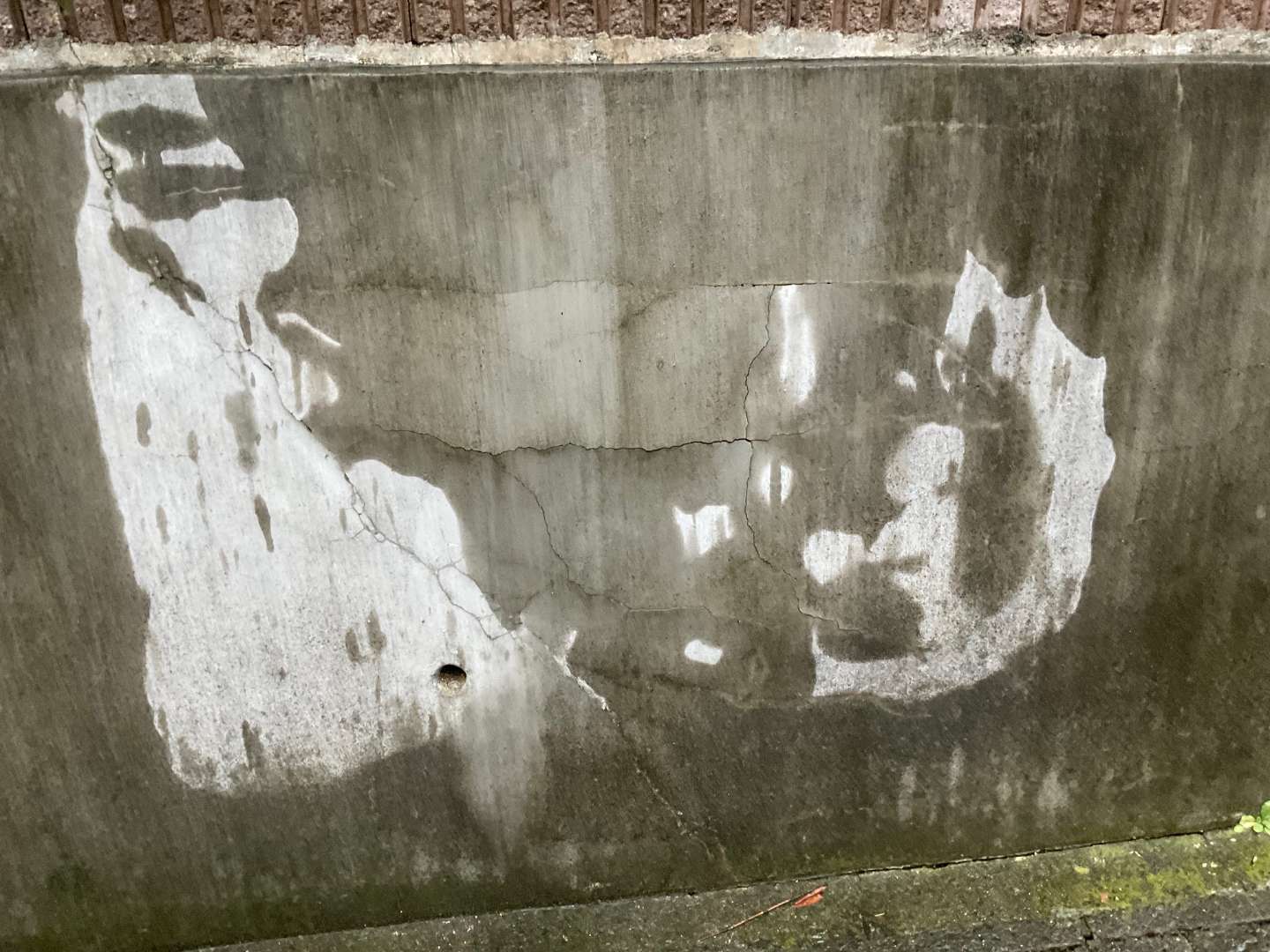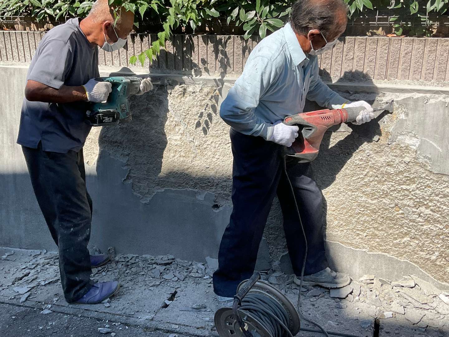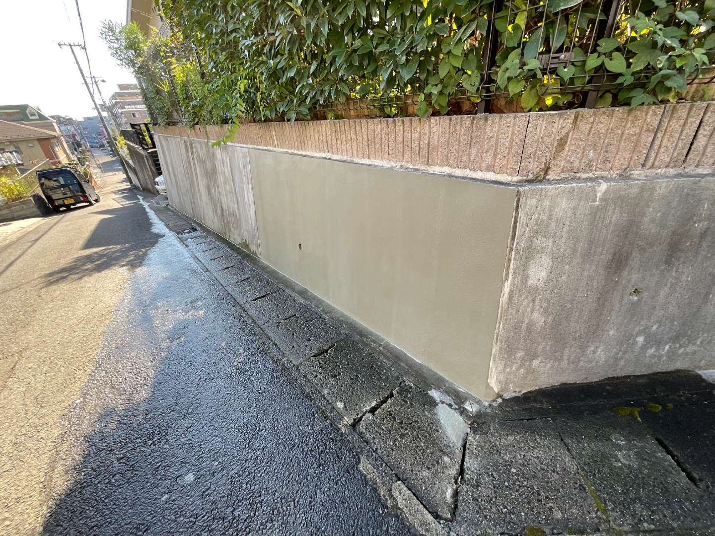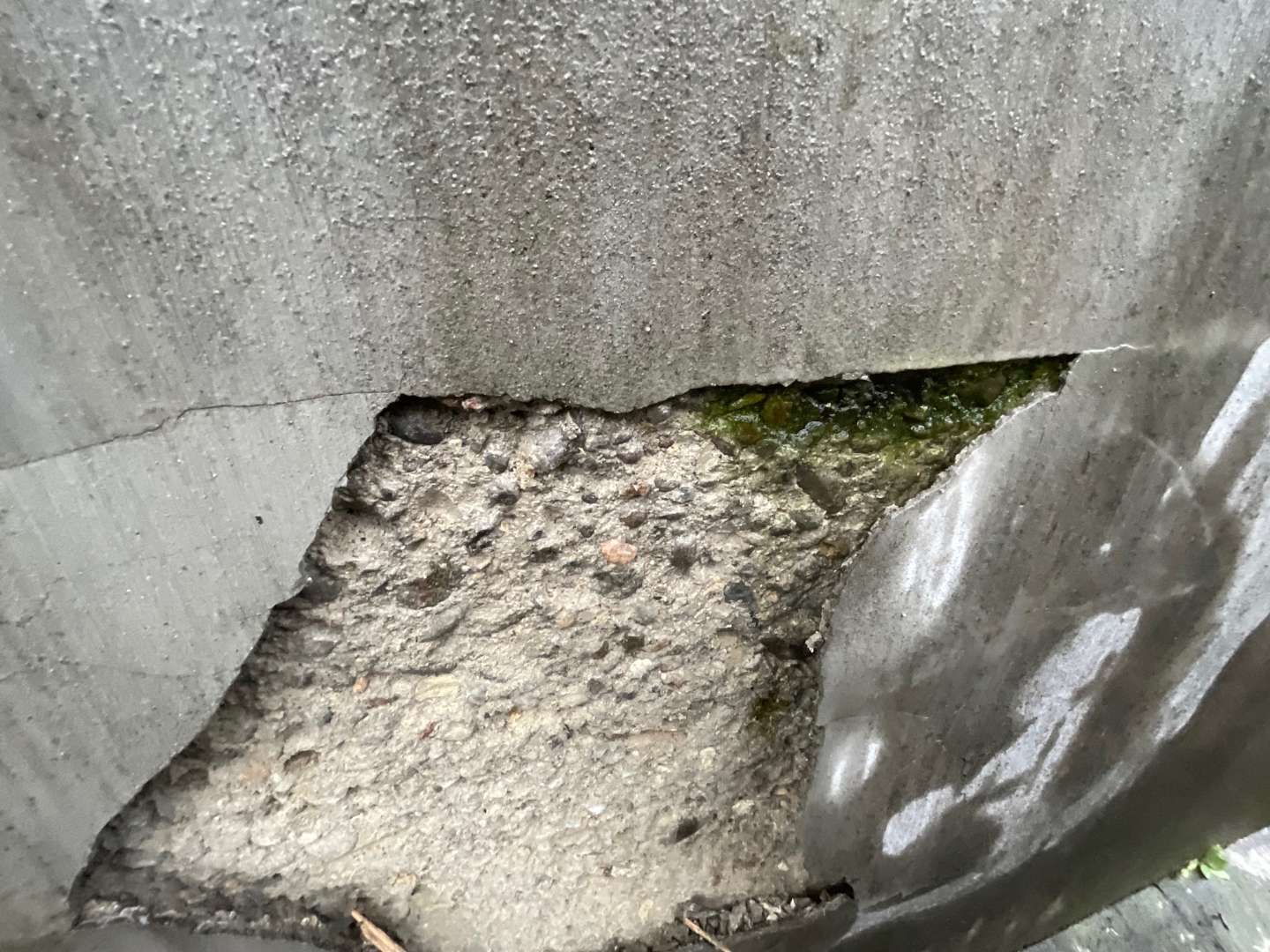 擁壁のモルタルが割れ剥がれてきており、コンクリートまでは壊れてないのを確認しました。