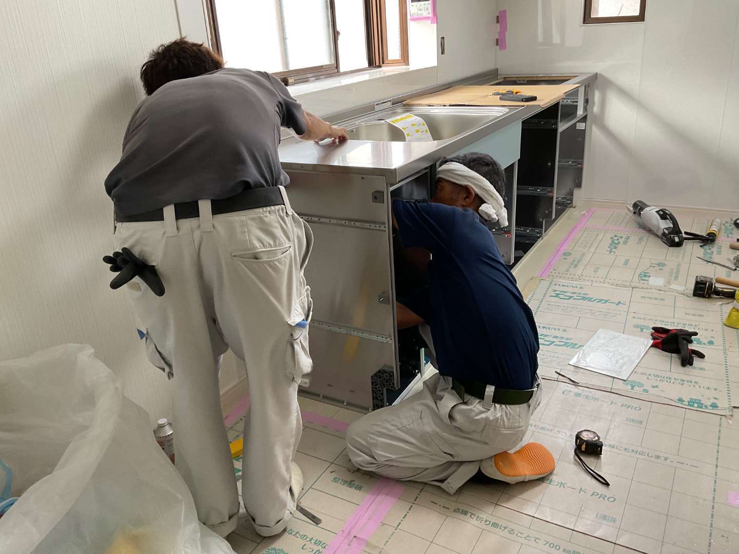 台所の水漏れで床材がダメになり、キッチンの交換しました。